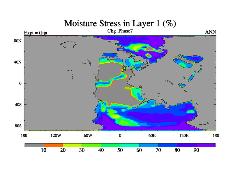 Changhsingian simulation. New Phys (CCN/desert/diff). New CO2 (2x Foster, et al.) Initialised from tfgsi (3419 years in).