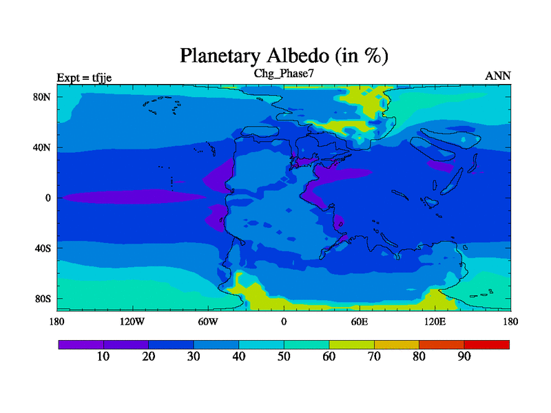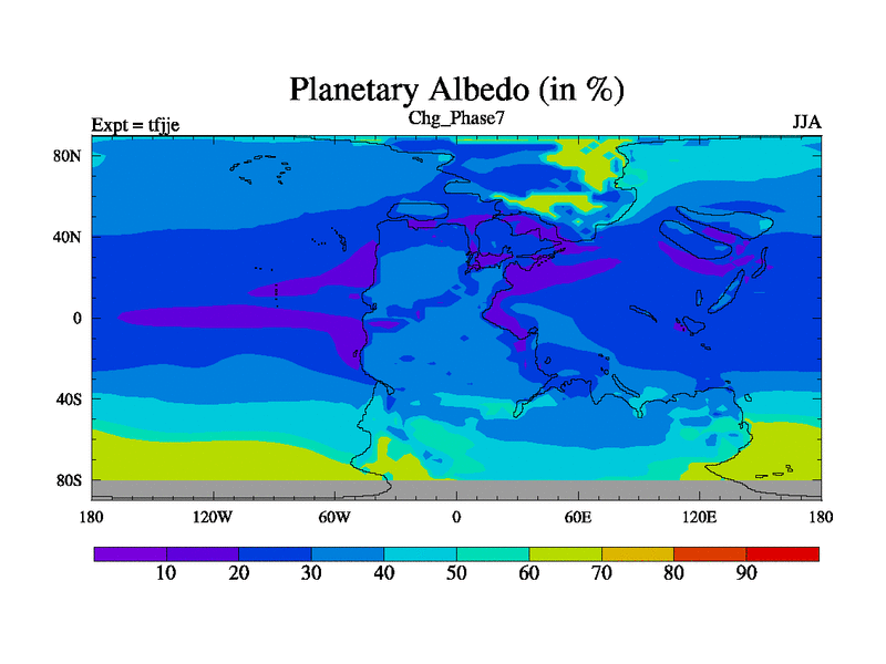 Changhsingian simulation. New Phys (CCN/desert/diff). New CO2 (2x Foster, et al.) Initialised from tfgsi (3419 years in). Background before PTB event.