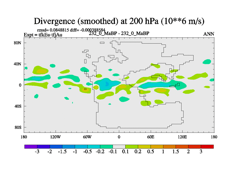 This is the 232.0 Ma simulation using the Scotese palaeogeographies and revised CCN etc. This version has islands and smoothing and desert albedo included. Started from end of tfjAu.