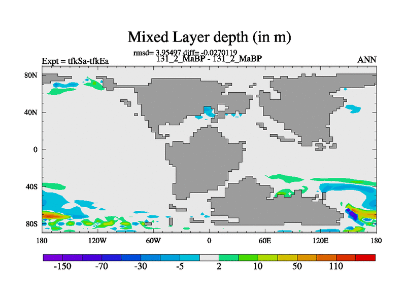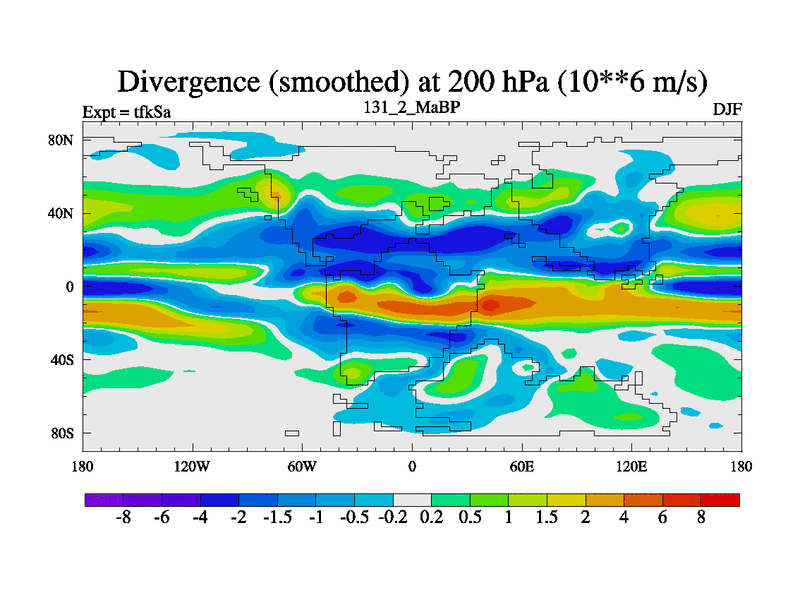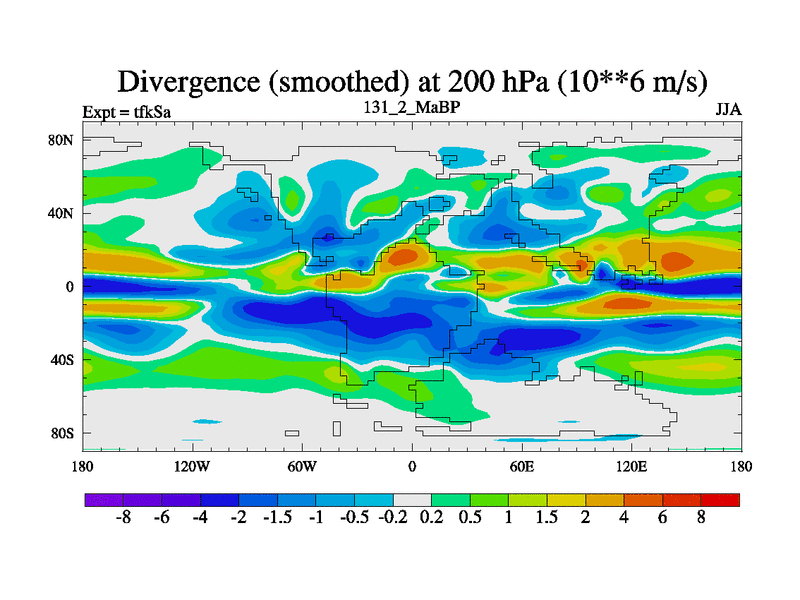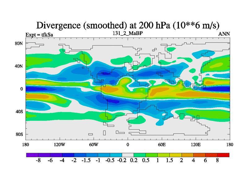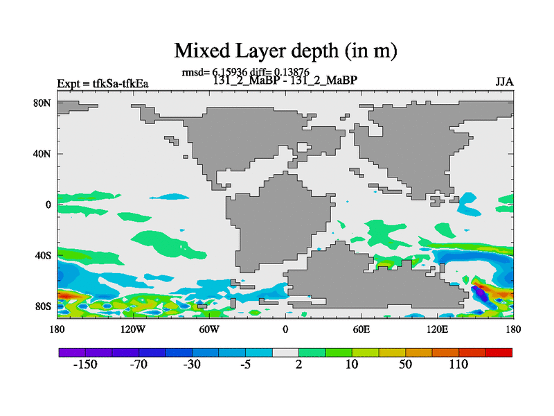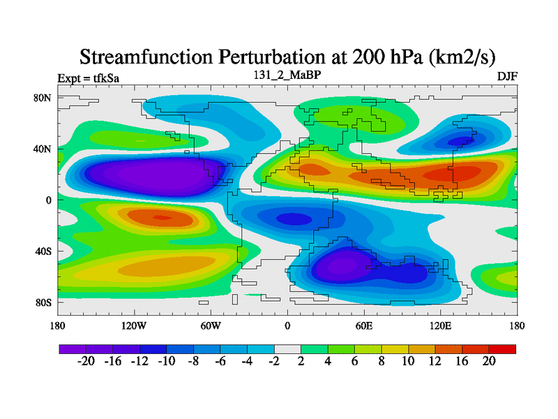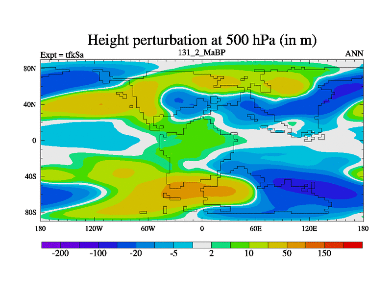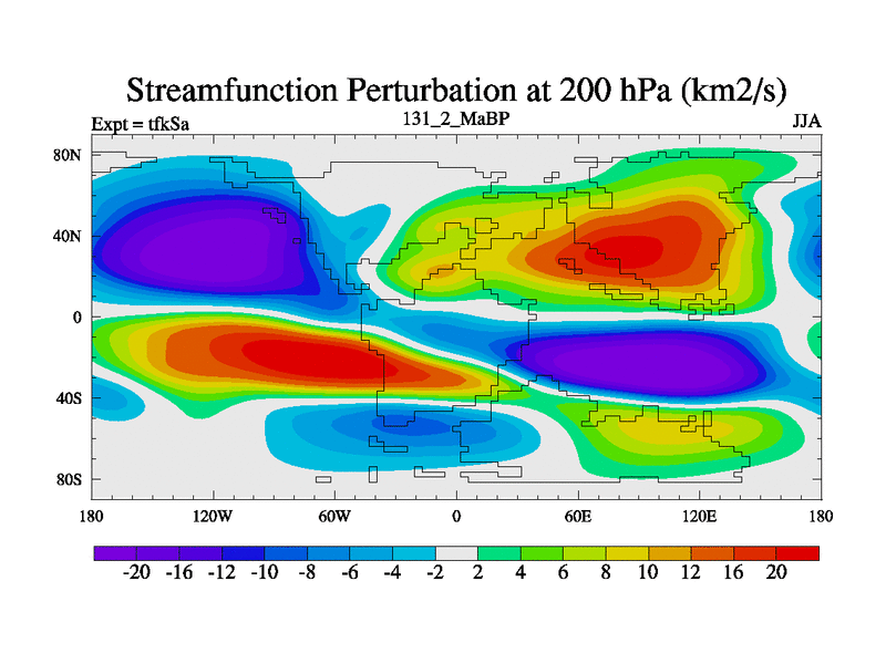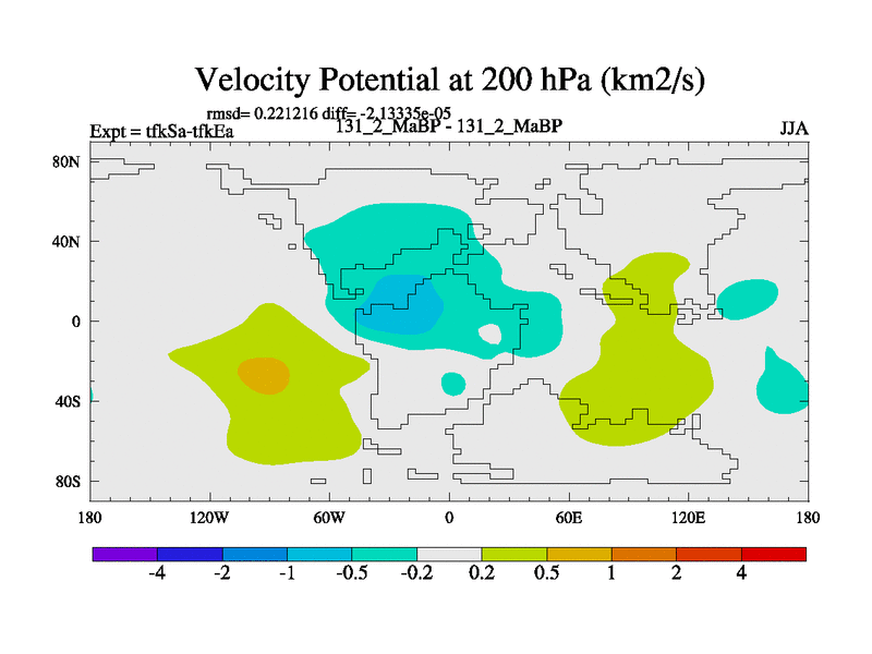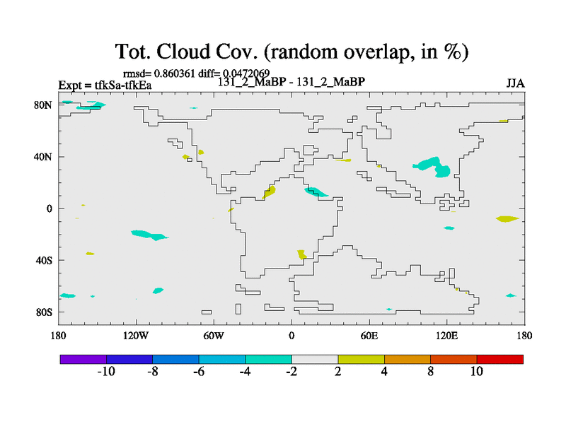 This is the 131.2 Ma simulation using the Scotese palaeogeographies and revised CCN etc. This version has islands and smoothing and desert albedo included. Tuned CO2 to give Scotese temperatures. Started from end of tfkEa.