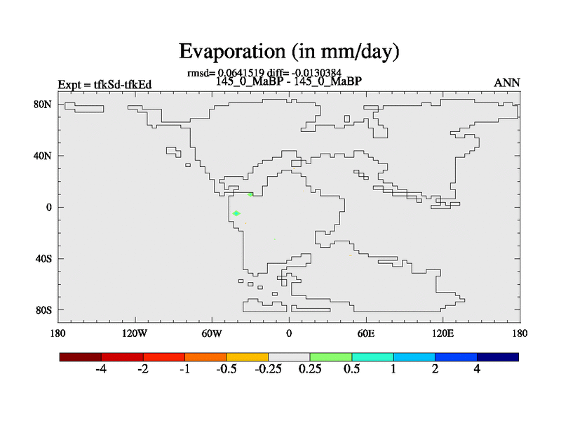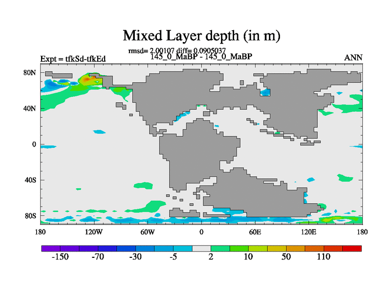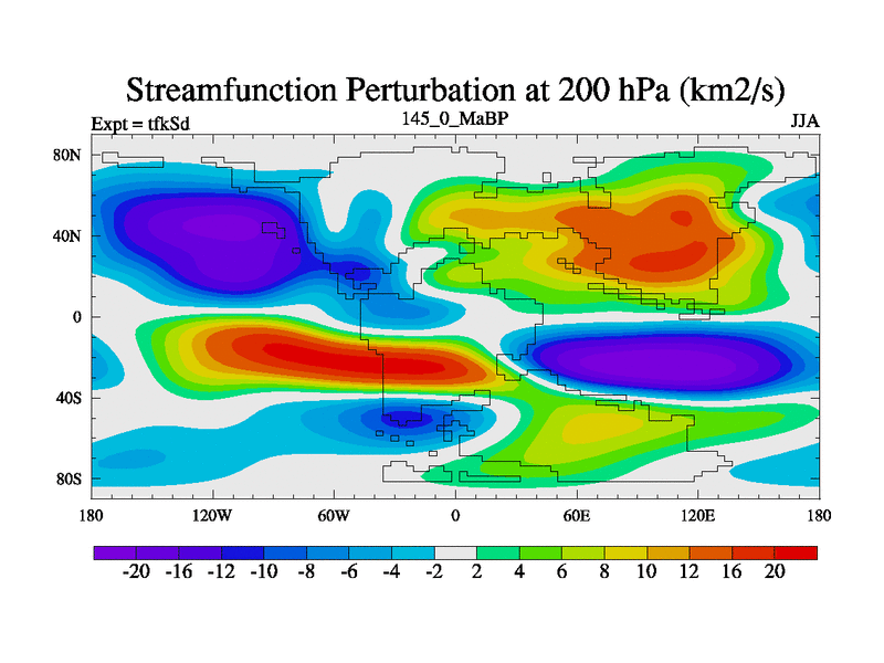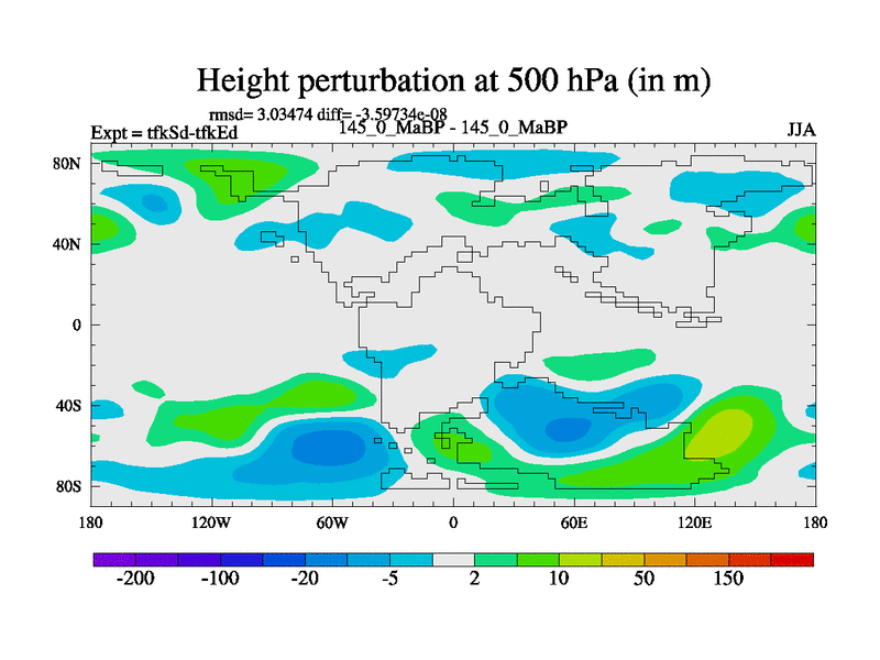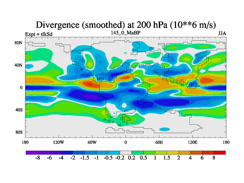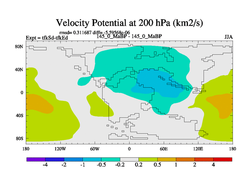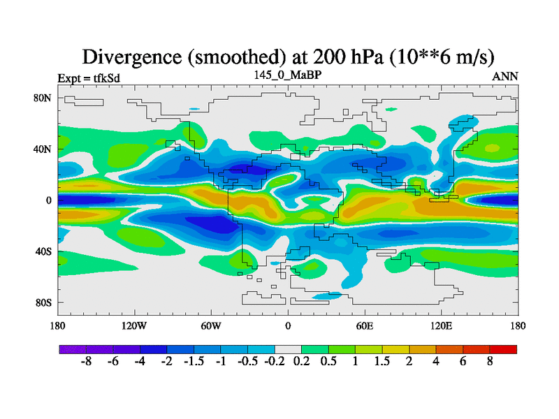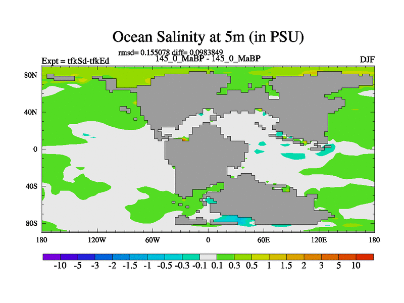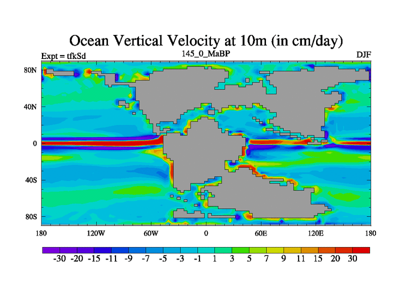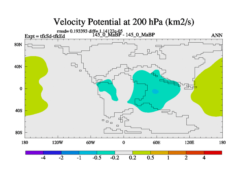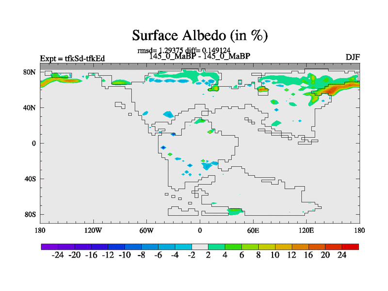 This is the 145.0 Ma simulation using the Scotese palaeogeographies and revised CCN etc. This version has islands and smoothing and desert albedo included. Tuned CO2 to give Scotese temperatures. Started from end of tfkEd.
