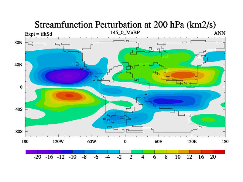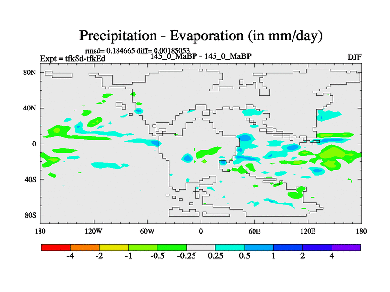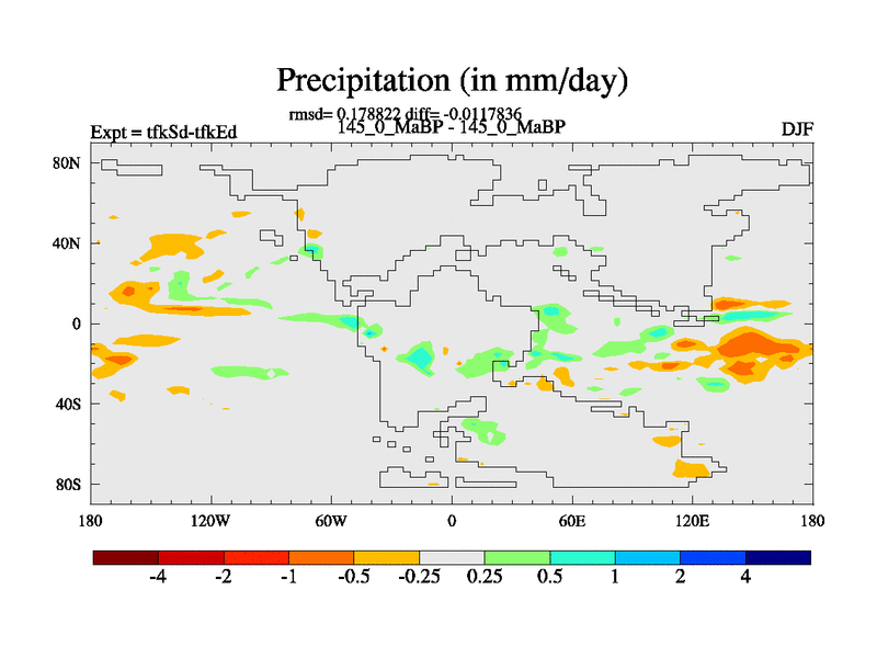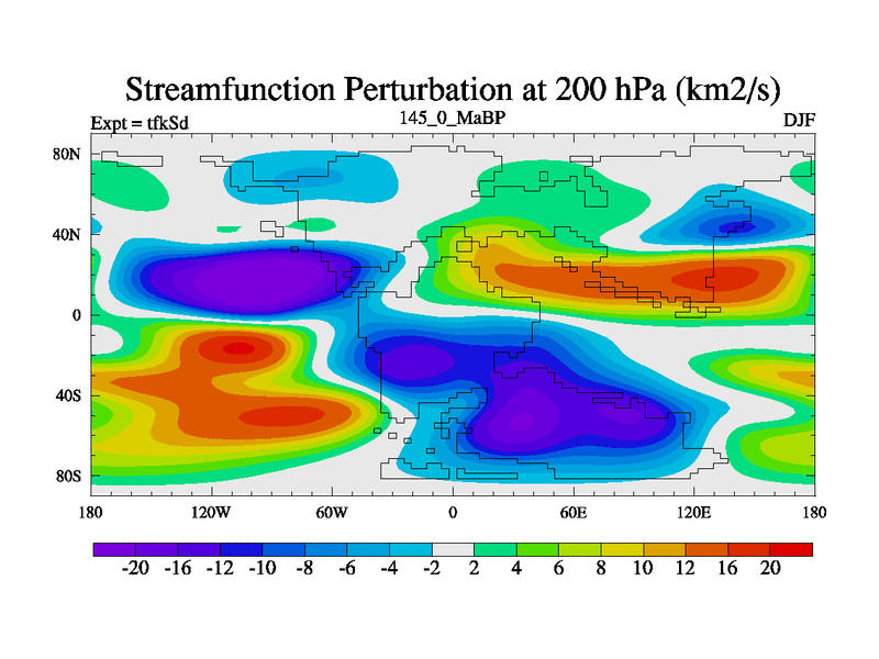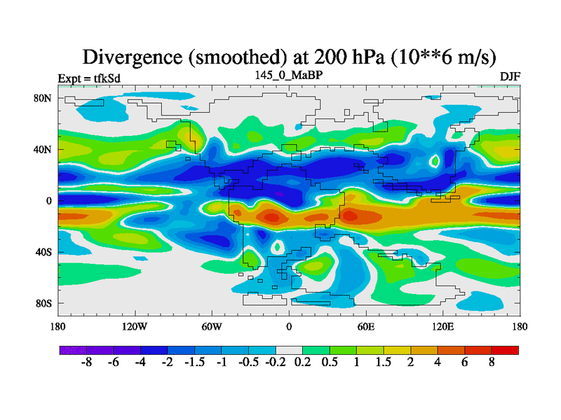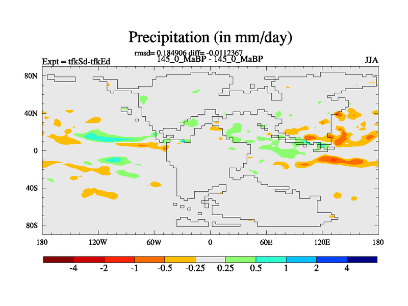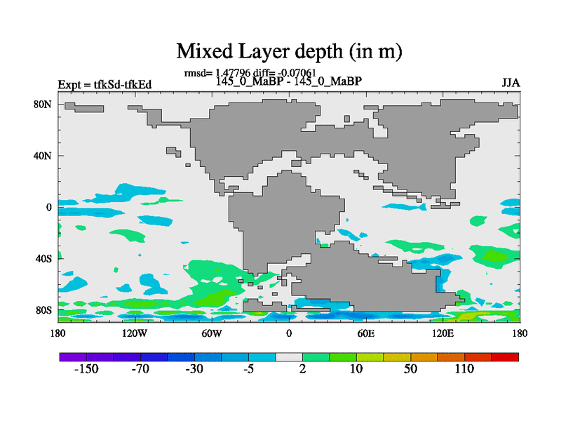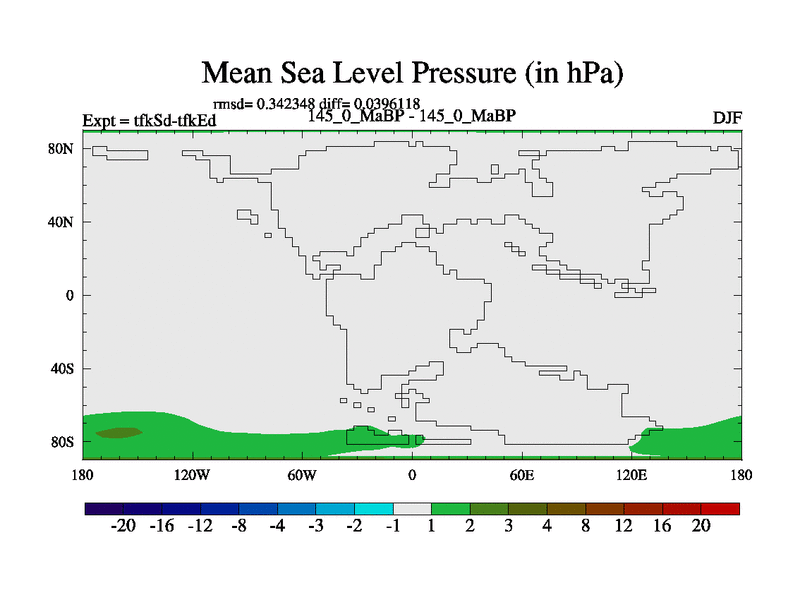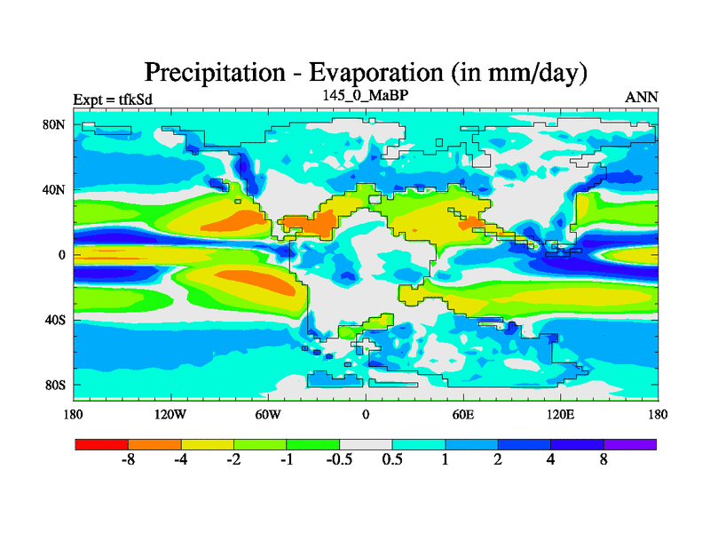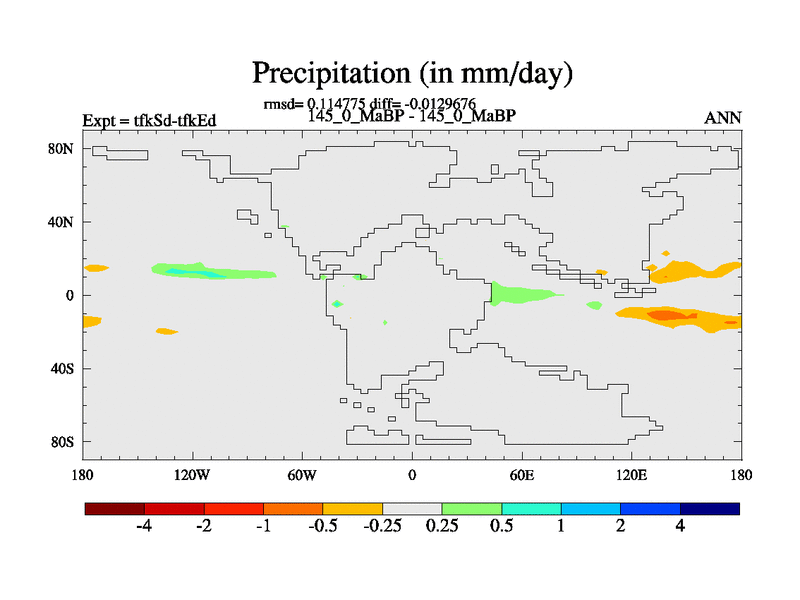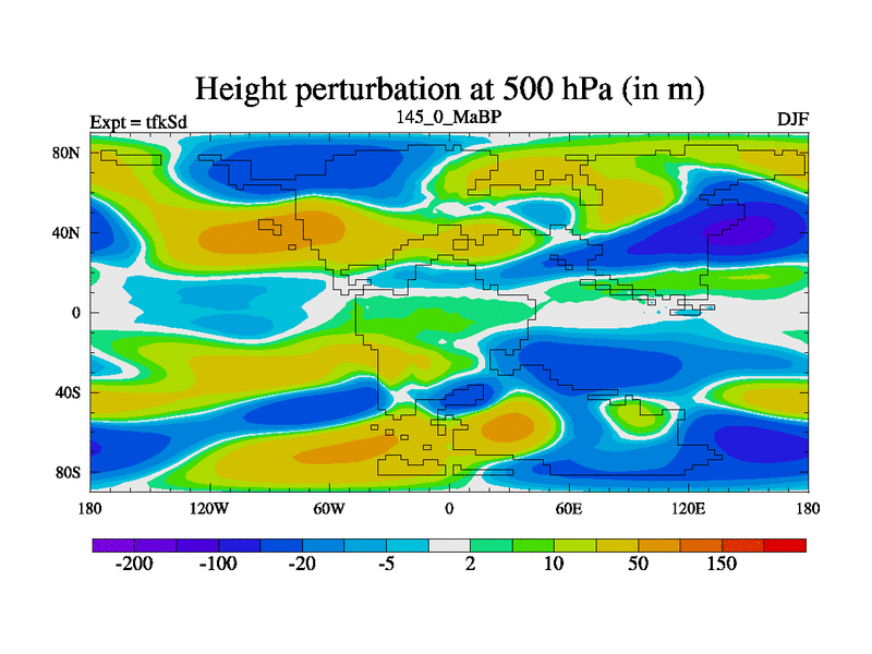 This is the 145.0 Ma simulation using the Scotese palaeogeographies and revised CCN etc. This version has islands and smoothing and desert albedo included. Tuned CO2 to give Scotese temperatures. Started from end of tfkEd.