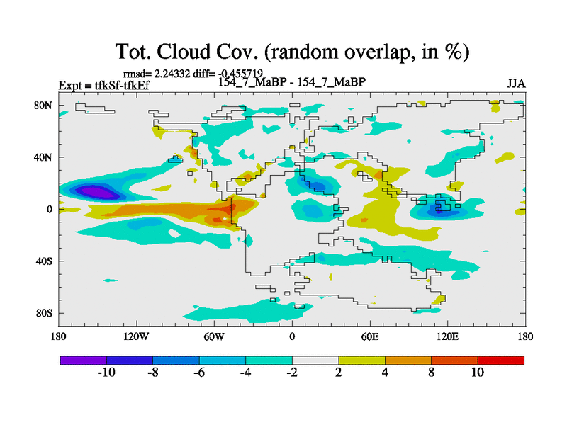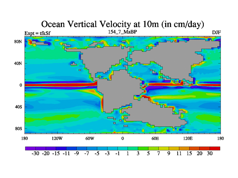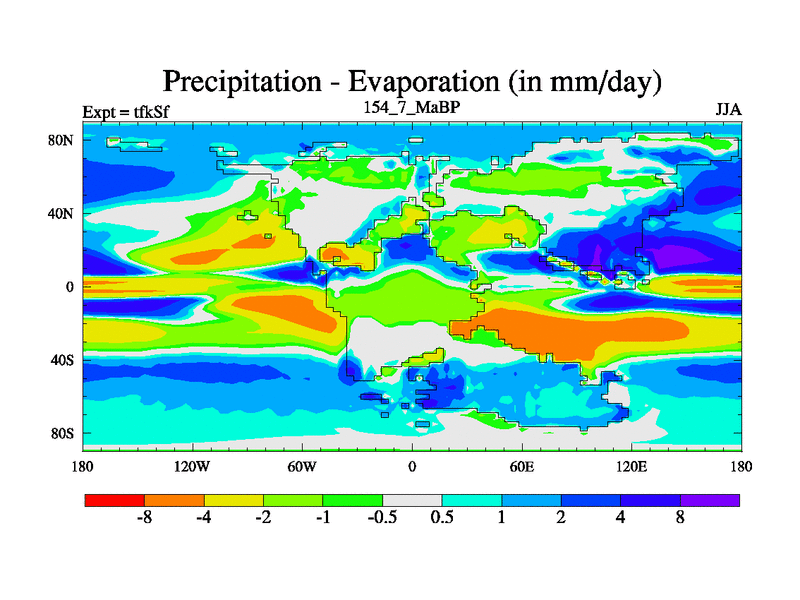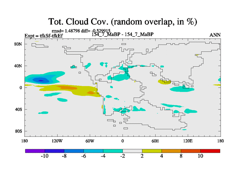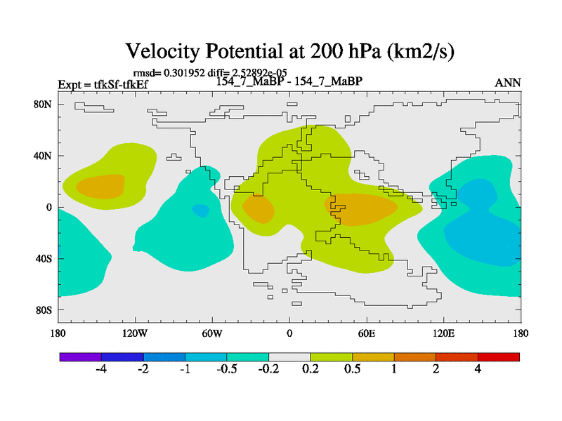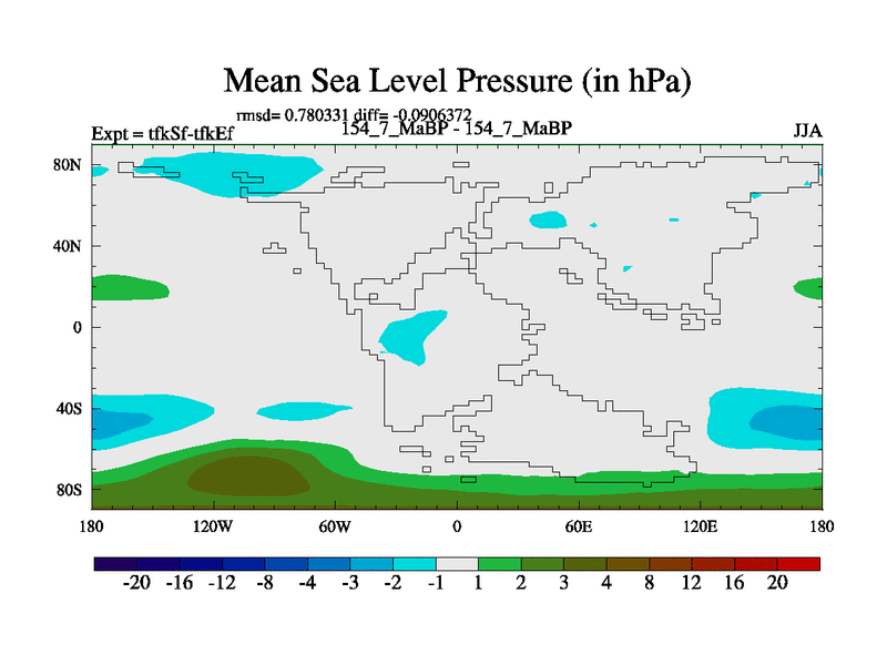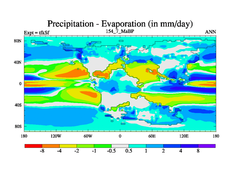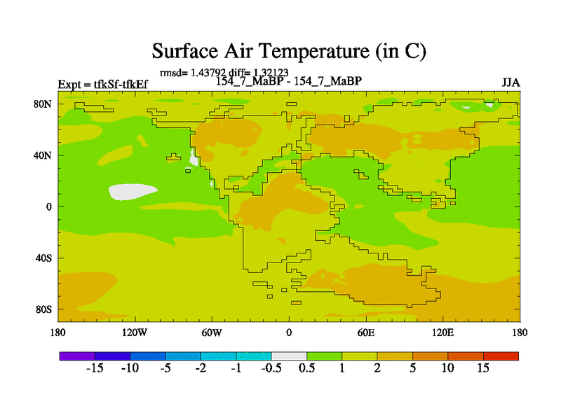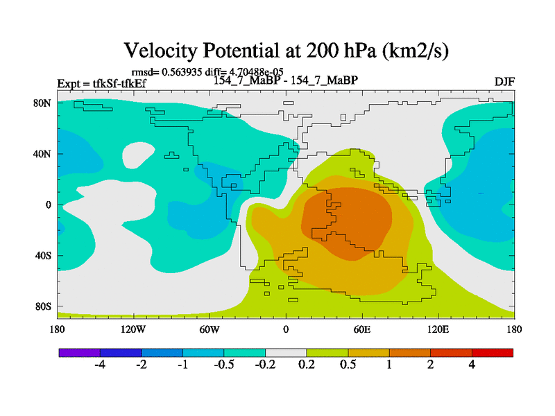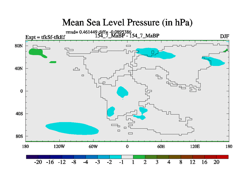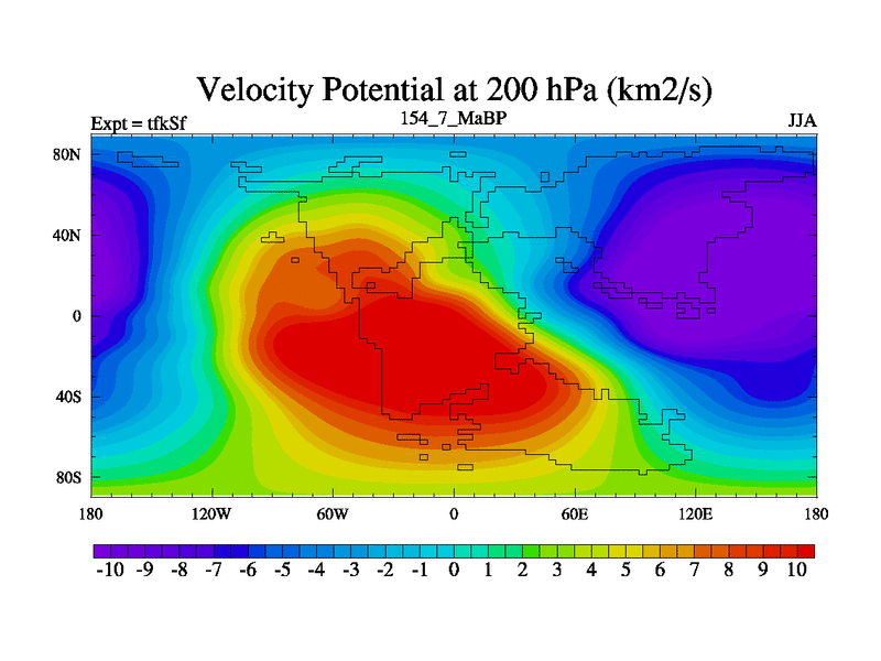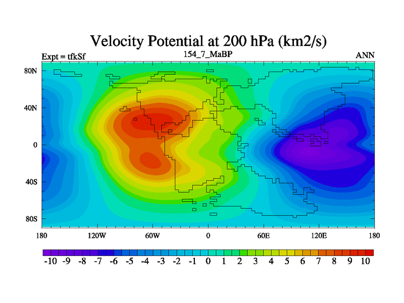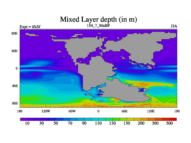 This is the 154.7 Ma simulation using the Scotese palaeogeographies and revised CCN etc. This version has islands and smoothing and desert albedo included. Tuned CO2 to give Scotese temperatures. Started from end of tfkEf.