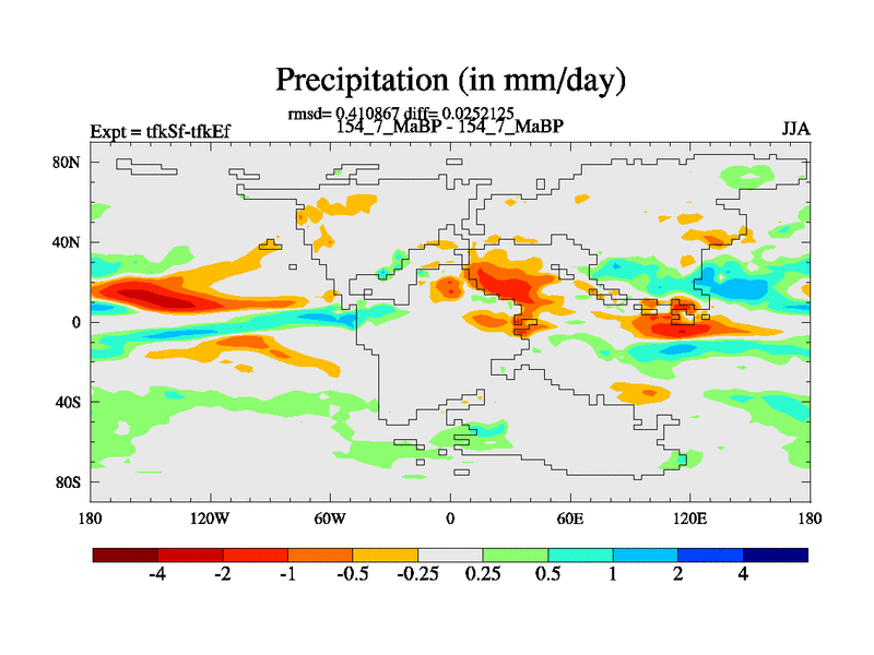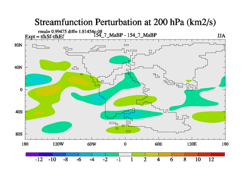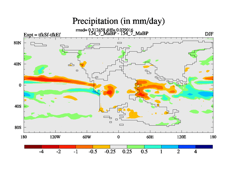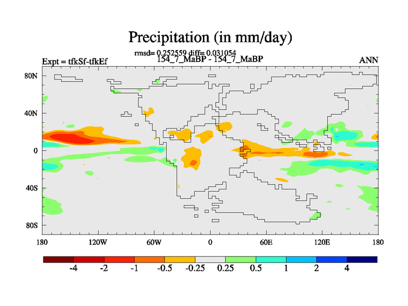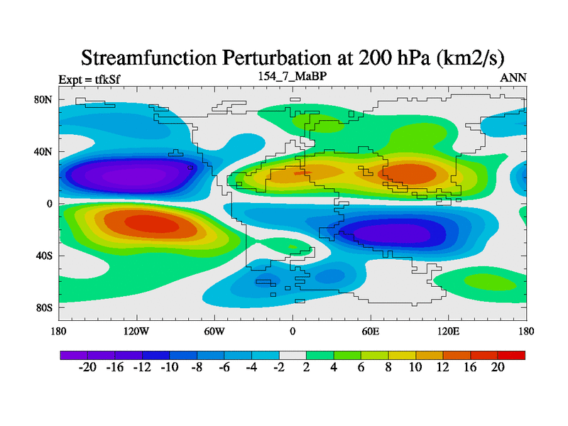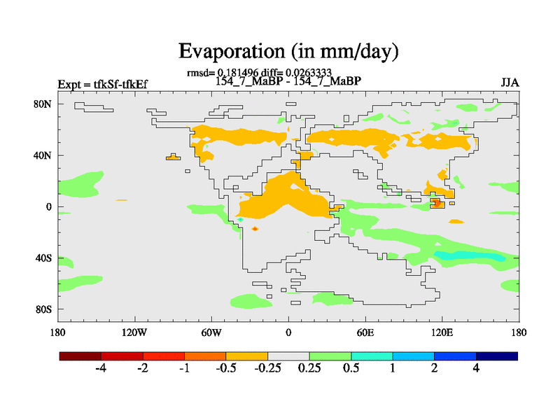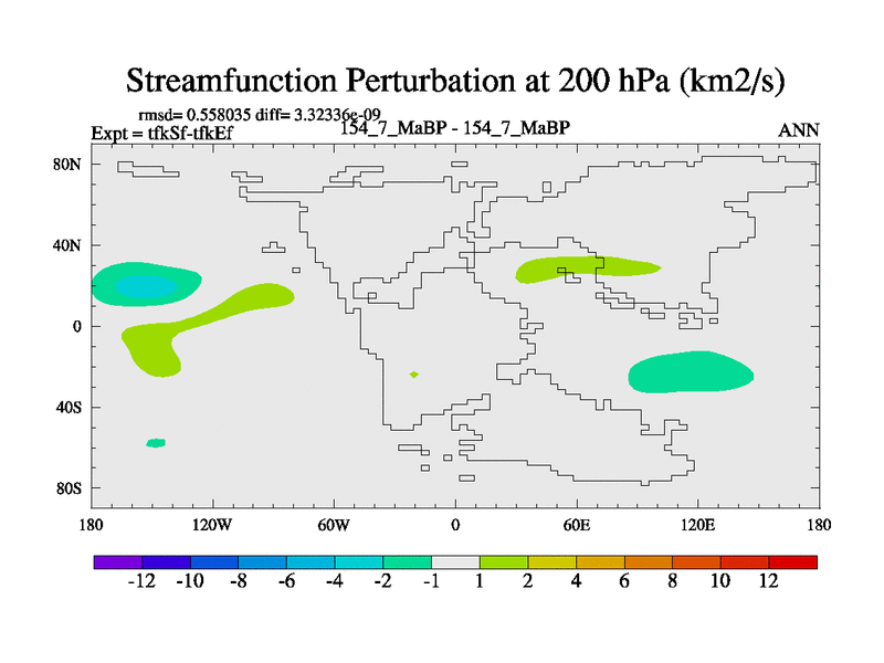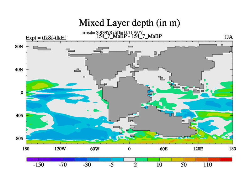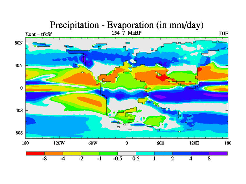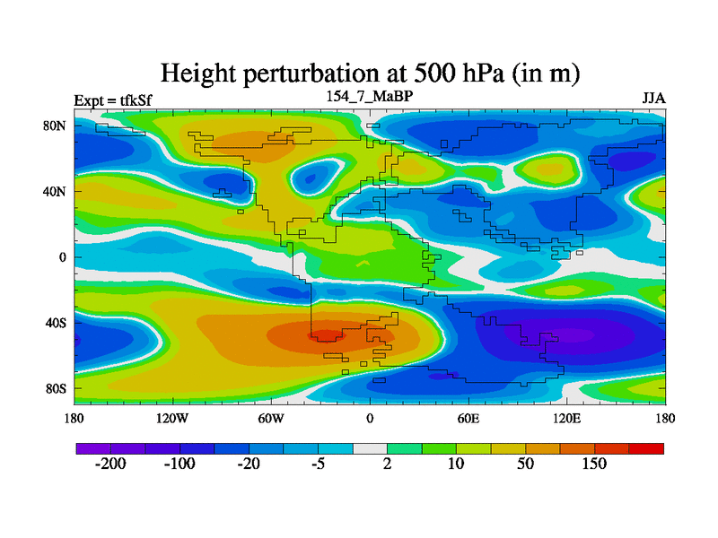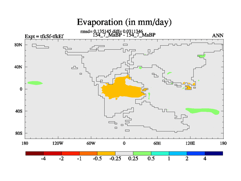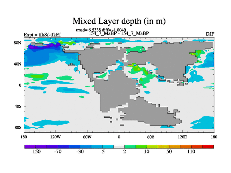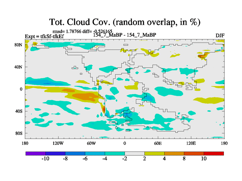 This is the 154.7 Ma simulation using the Scotese palaeogeographies and revised CCN etc. This version has islands and smoothing and desert albedo included. Tuned CO2 to give Scotese temperatures. Started from end of tfkEf.