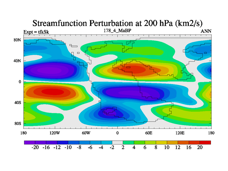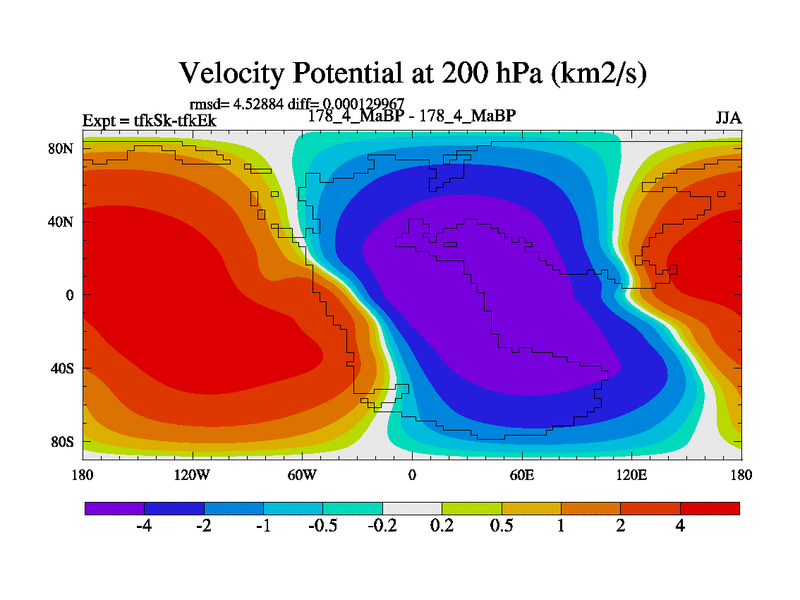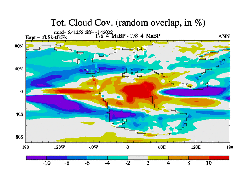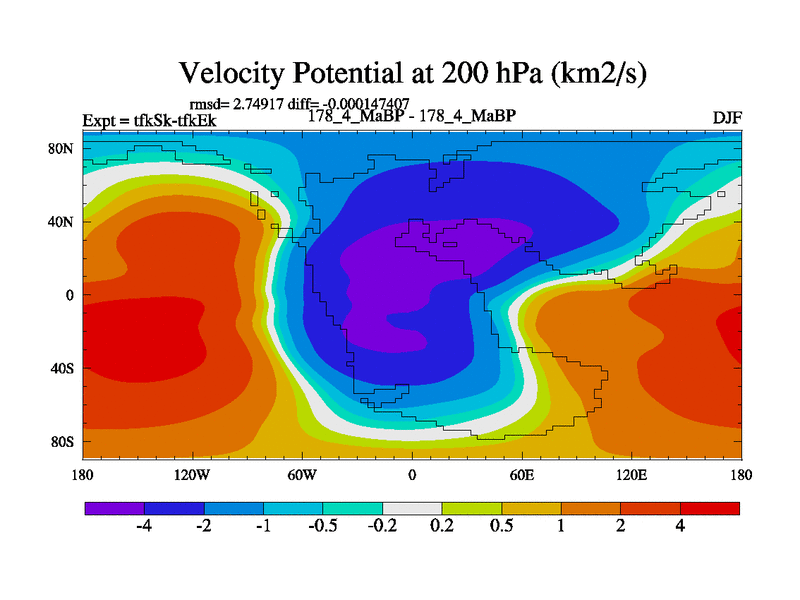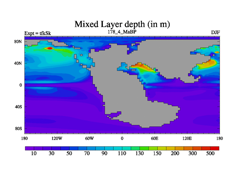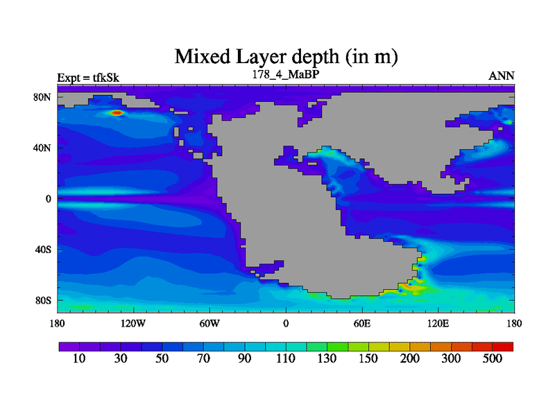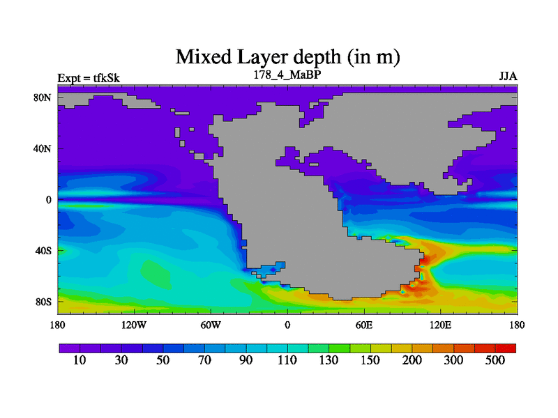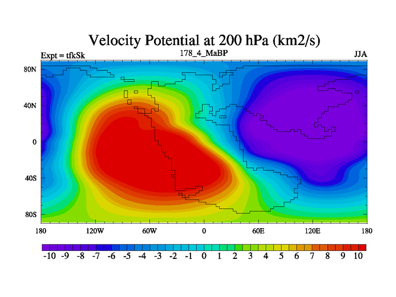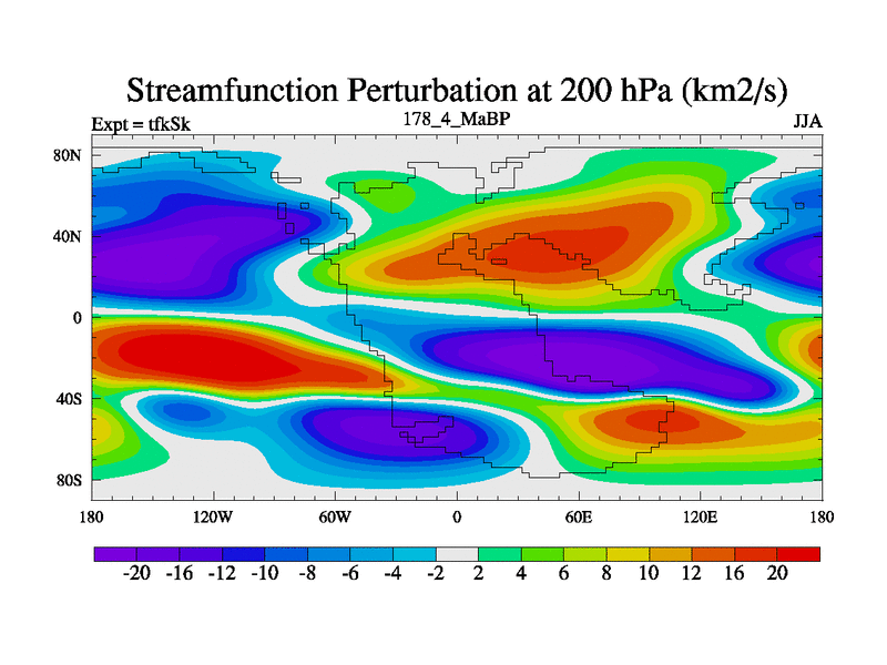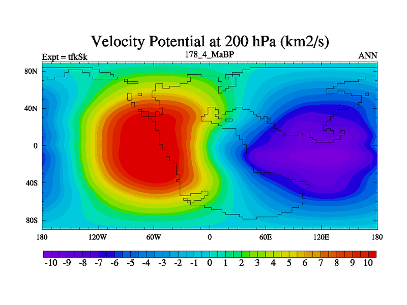 This is the 178.4 Ma simulation using the Scotese palaeogeographies and revised CCN etc. This version has islands and smoothing and desert albedo included. Tuned CO2 to give Scotese temperatures. Started from end of tfkEk.