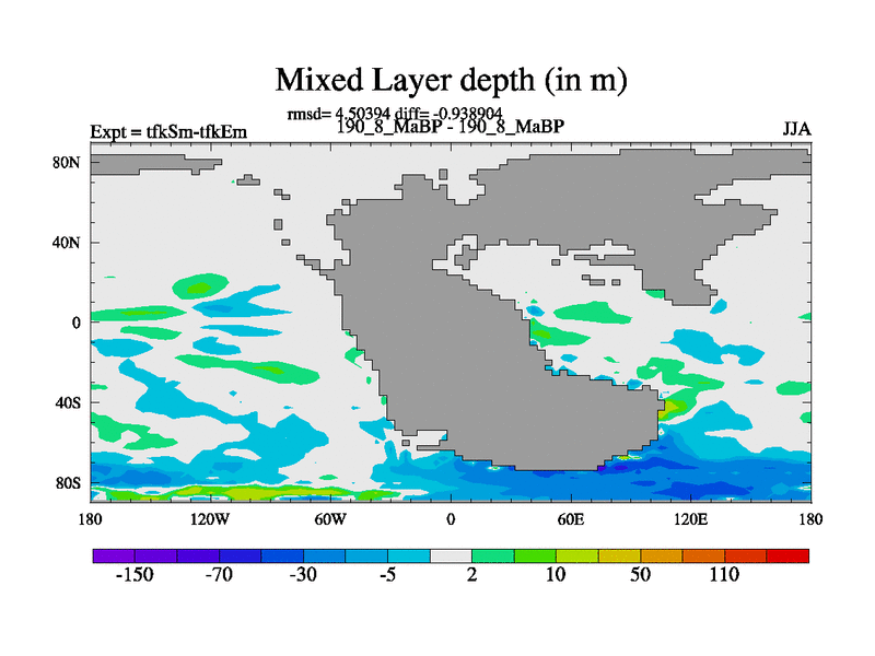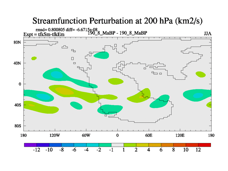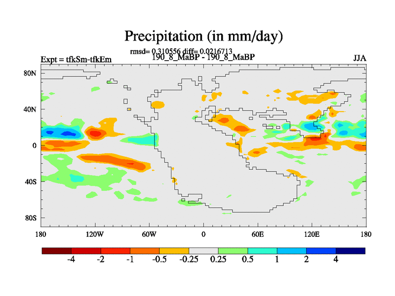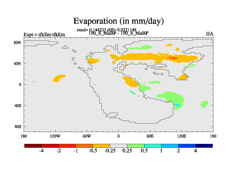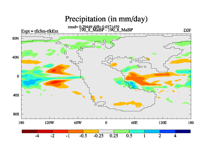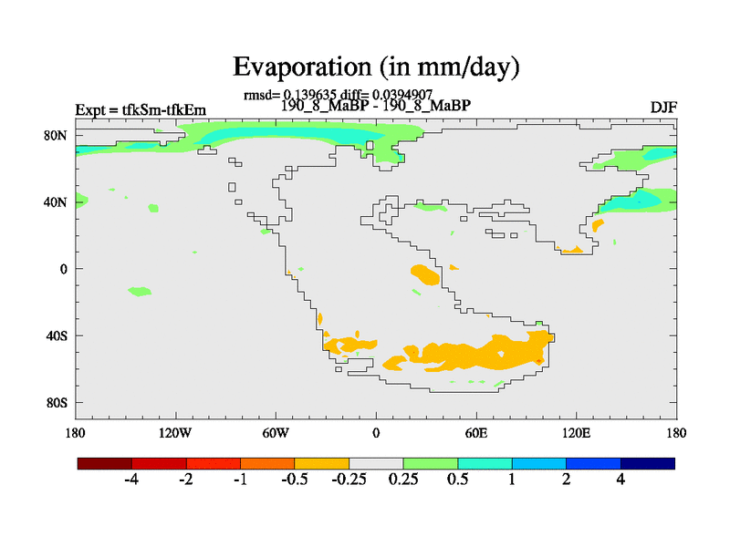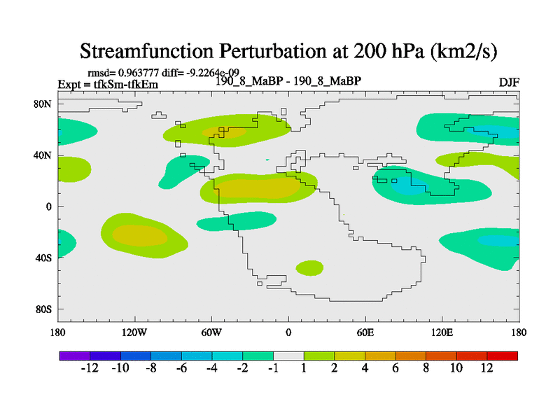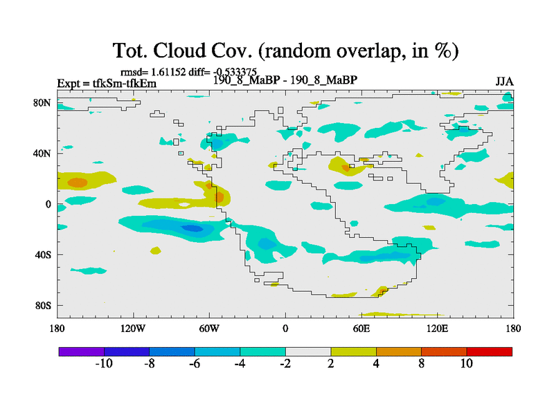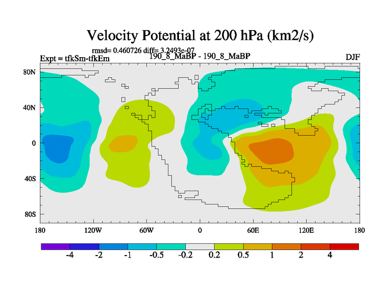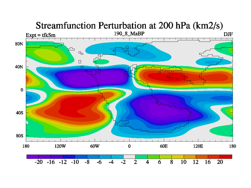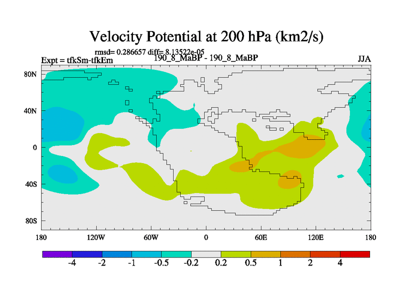 This is the 190.8 Ma simulation using the Scotese palaeogeographies and revised CCN etc. This version has islands and smoothing and desert albedo included. Tuned CO2 to give Scotese temperatures. Started from end of tfkEm.