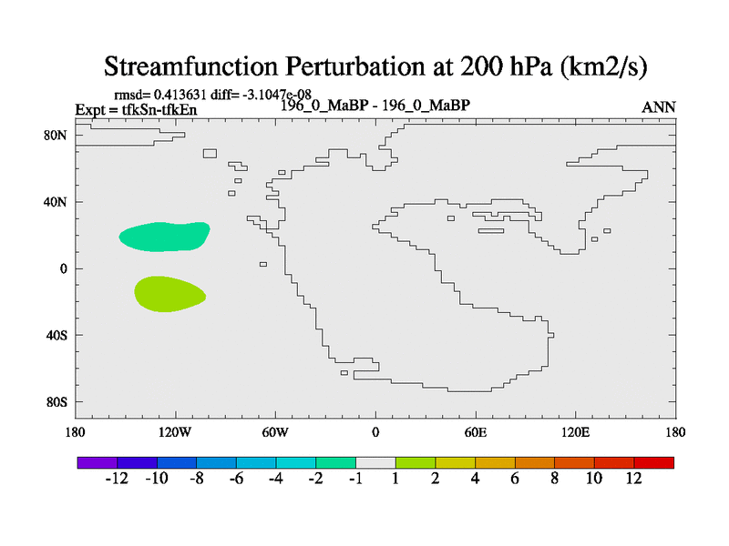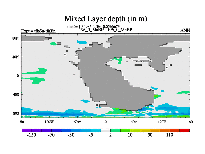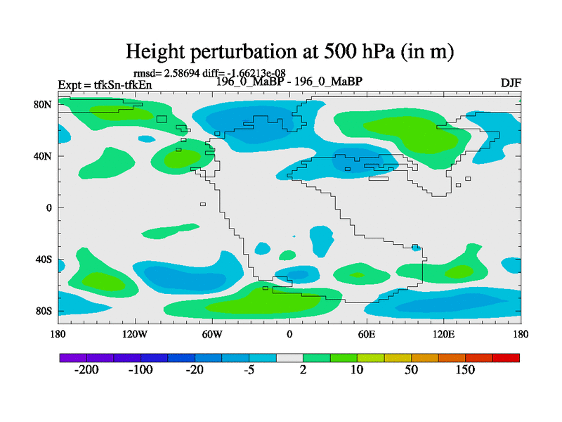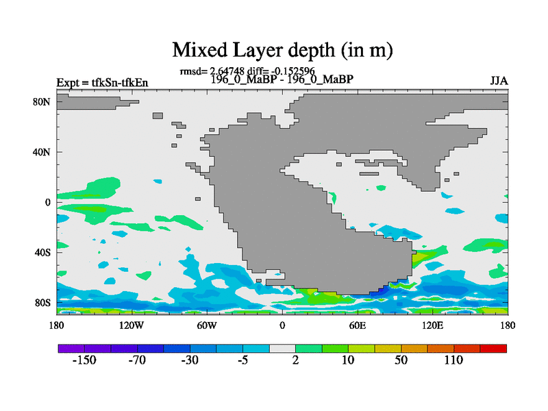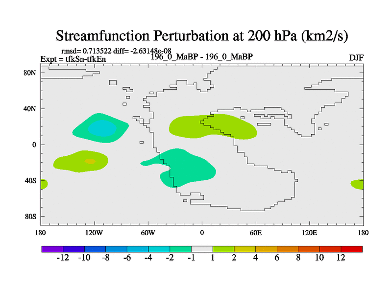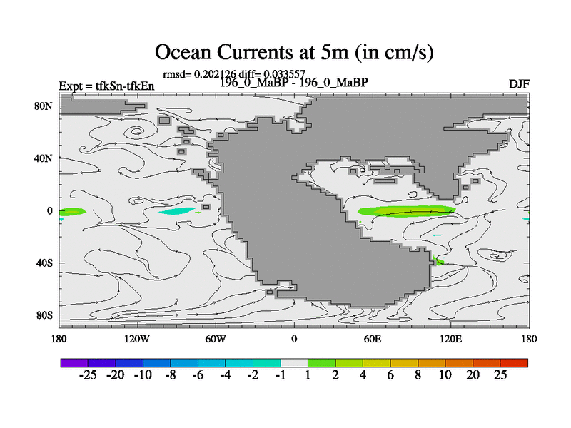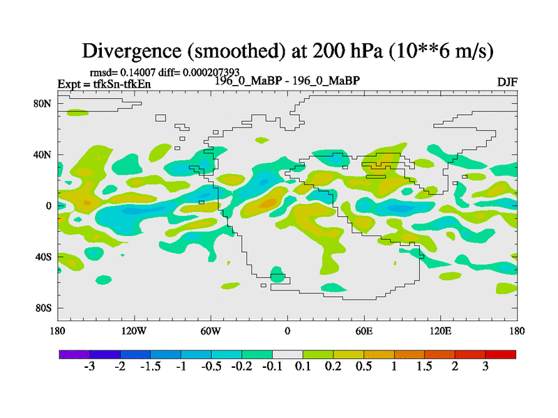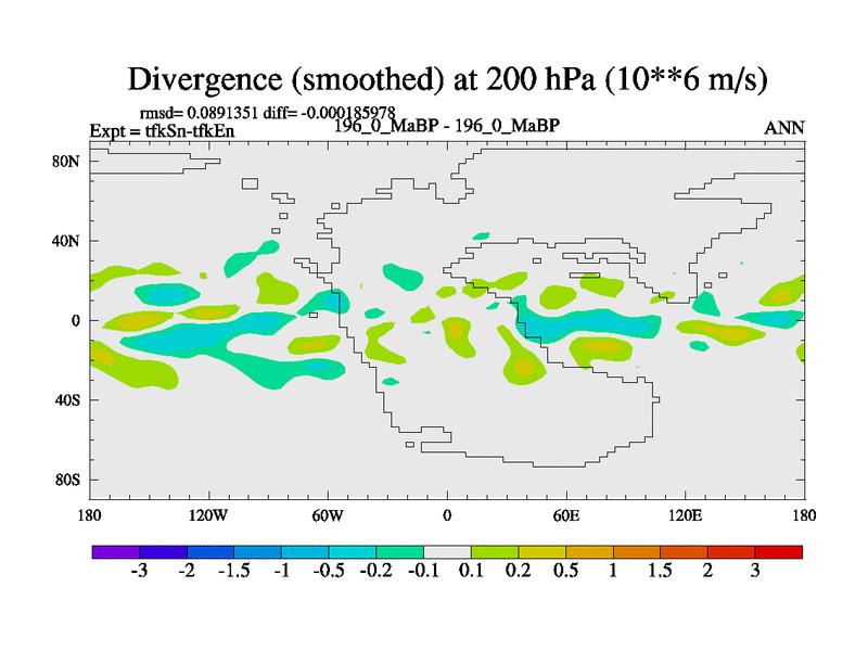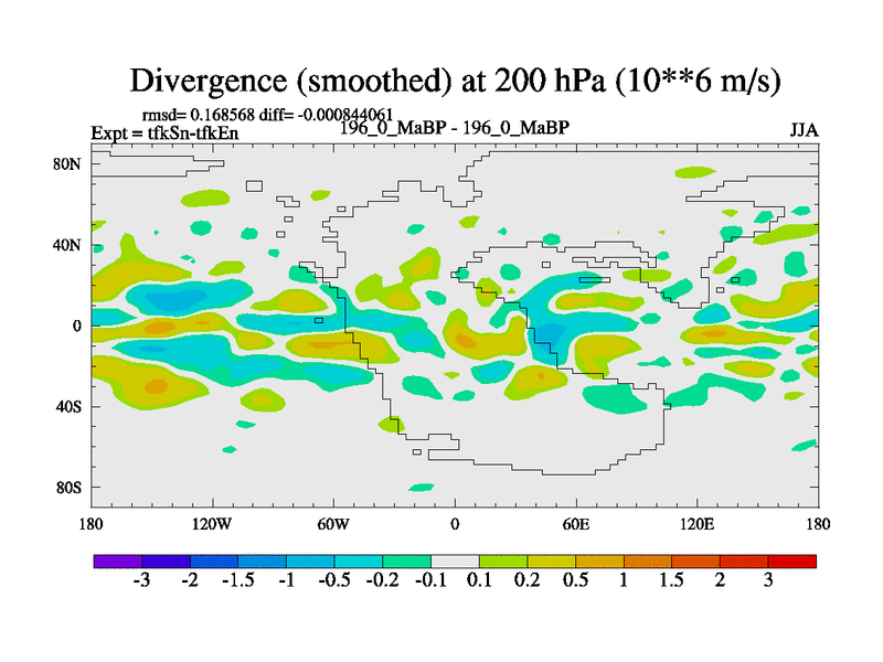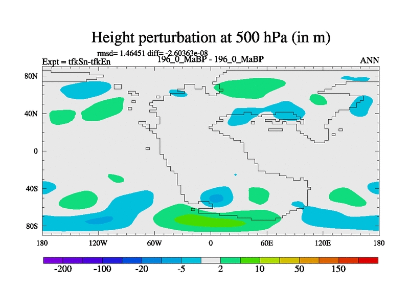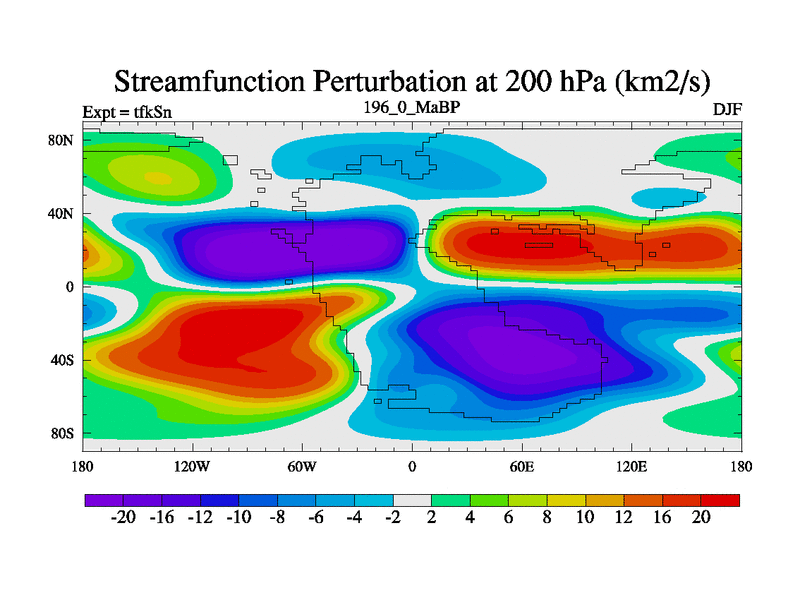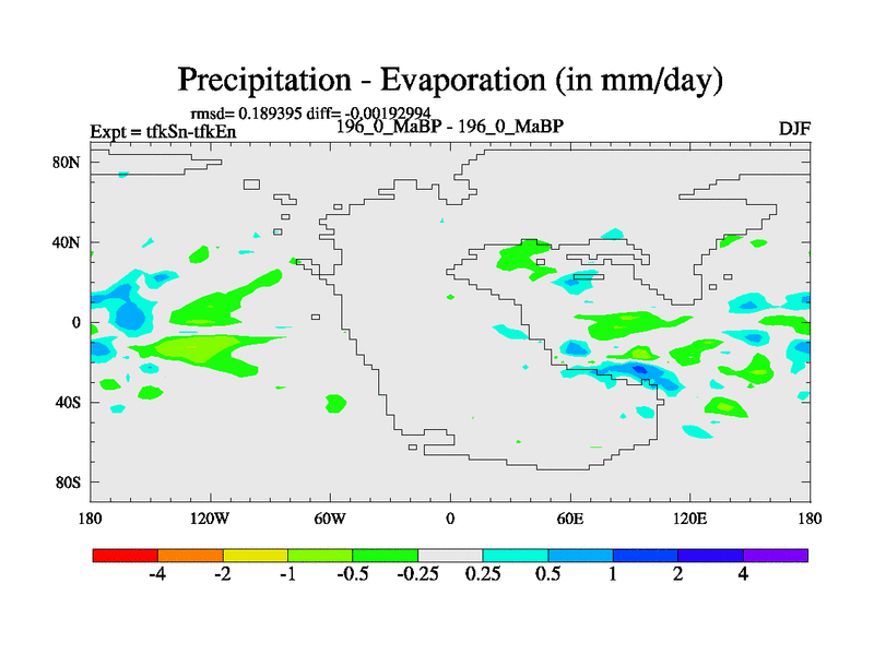 This is the 196.0 Ma simulation using the Scotese palaeogeographies and revised CCN etc. This version has islands and smoothing and desert albedo included. Tuned CO2 to give Scotese temperatures. Started from end of tfkEn.