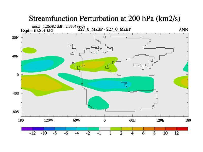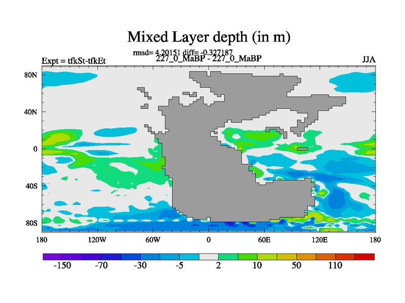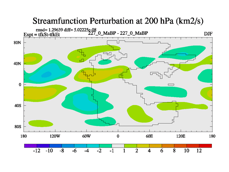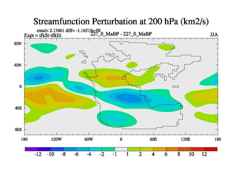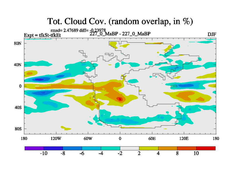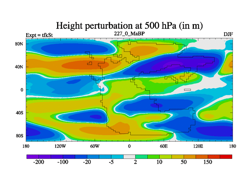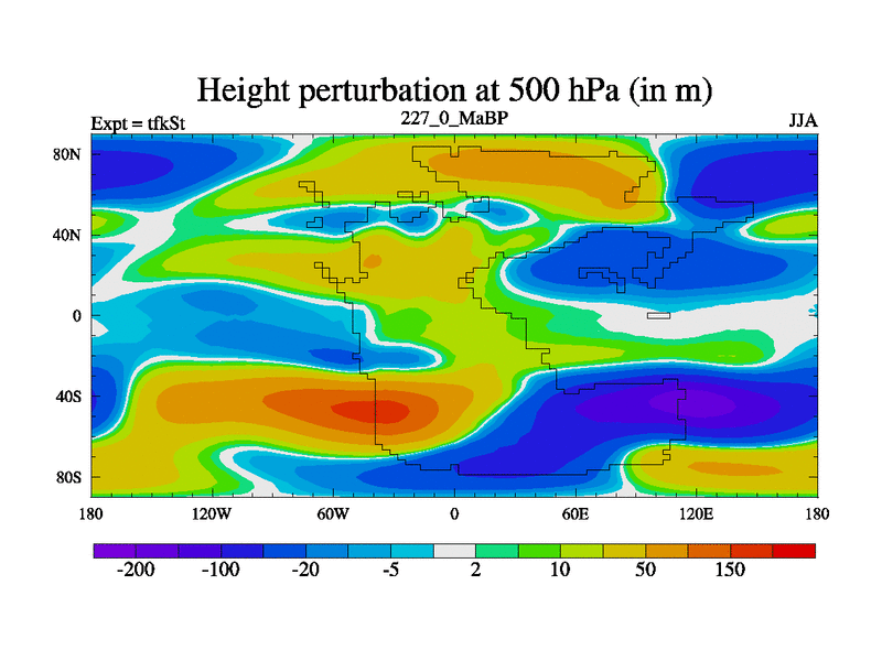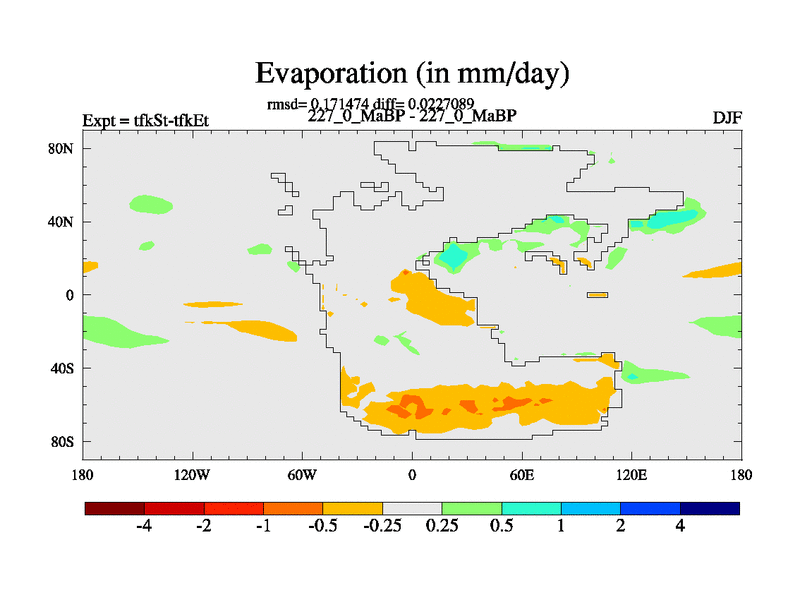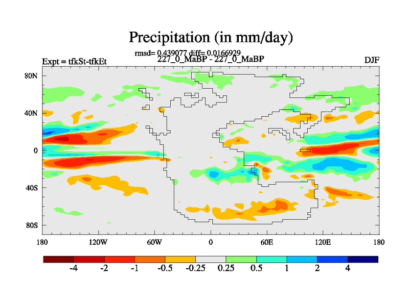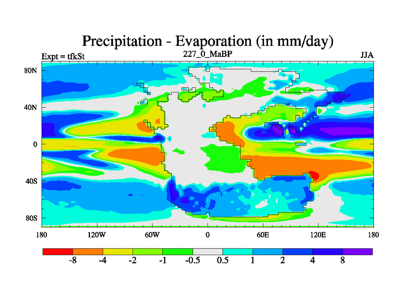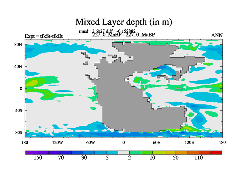 This is the 227.0 Ma simulation using the Scotese palaeogeographies and revised CCN etc. This version has islands and smoothing and desert albedo included. Tuned CO2 to give Scotese temperatures. Started from end of tfkEt.
