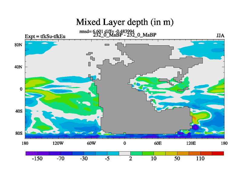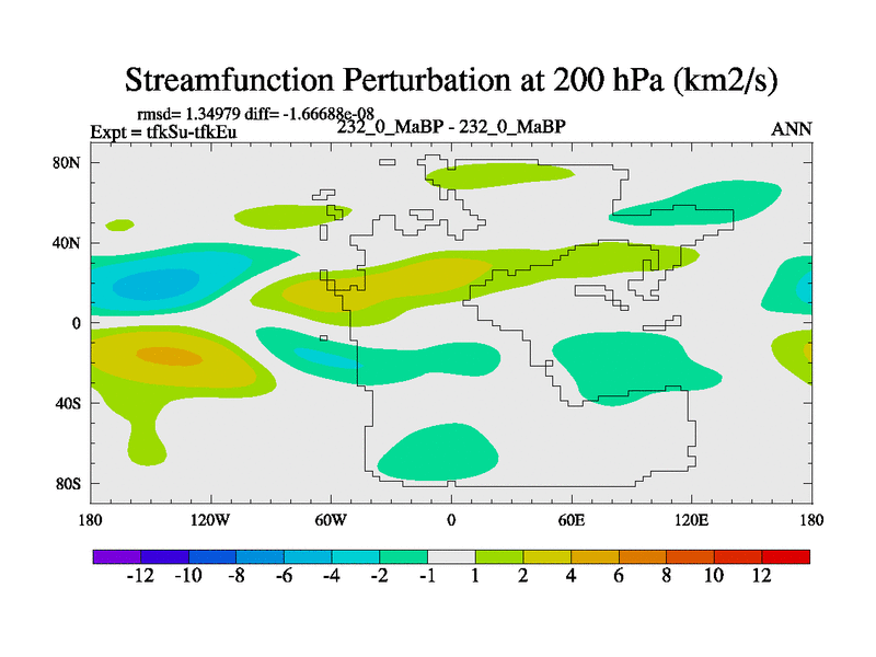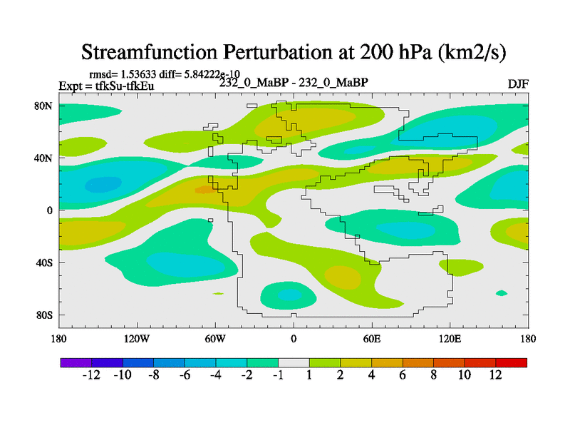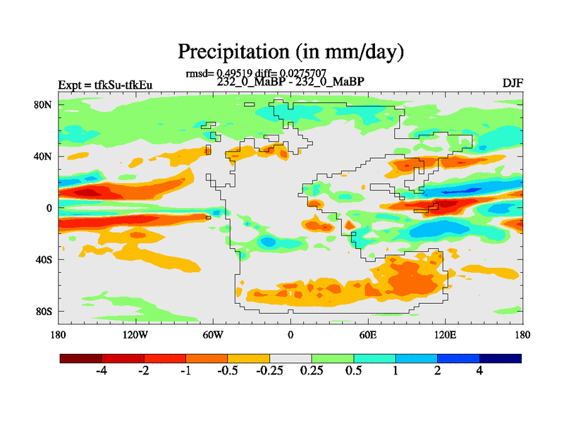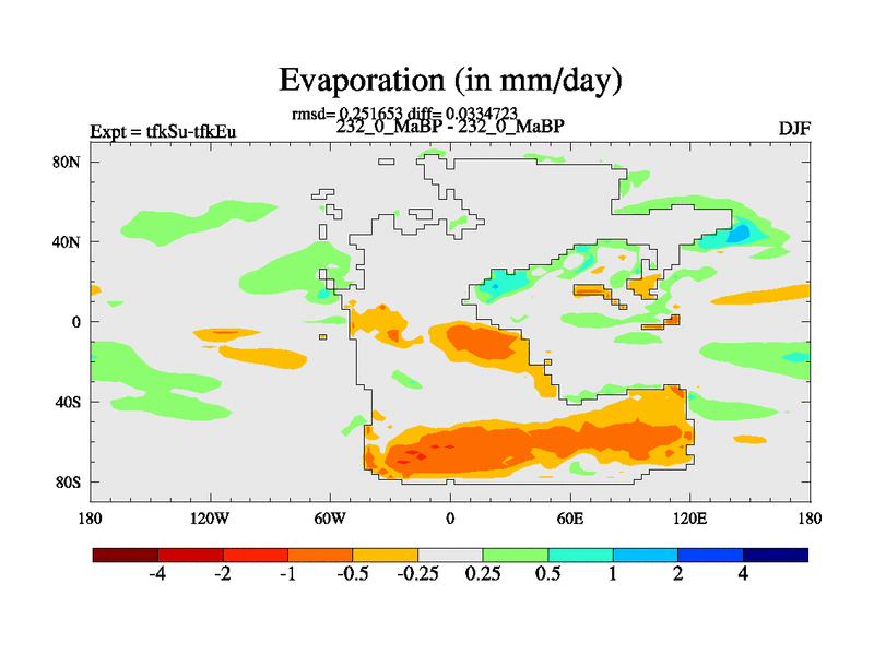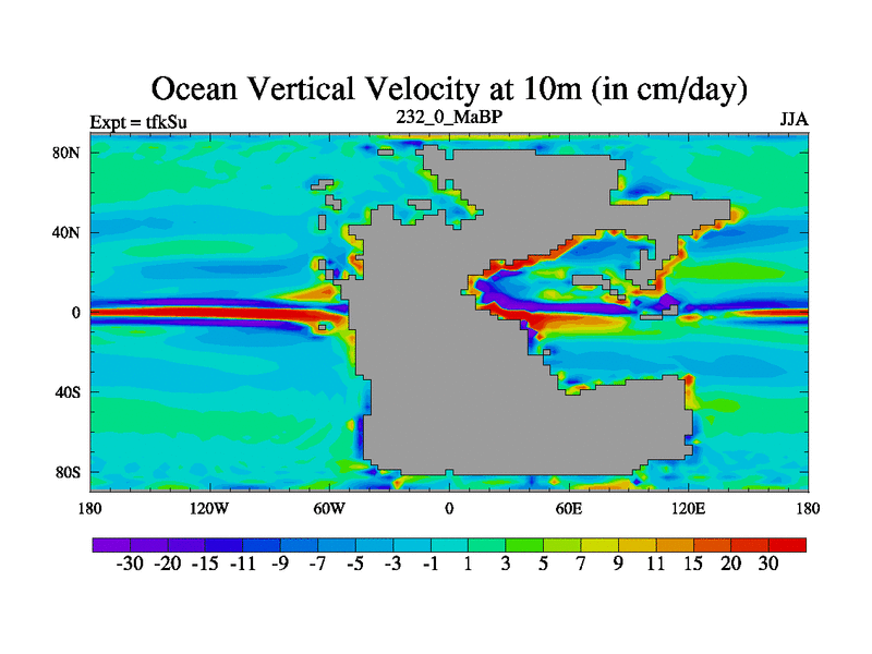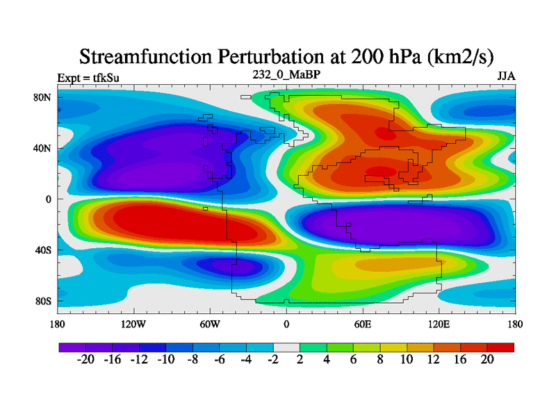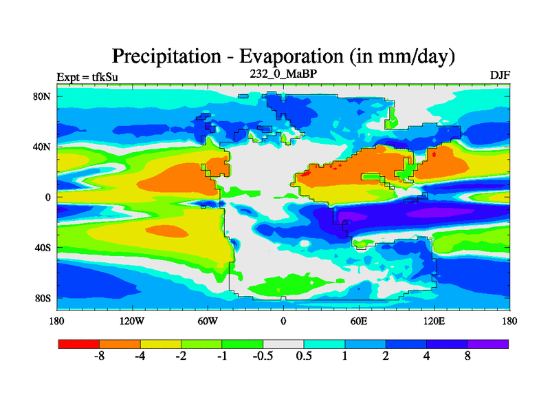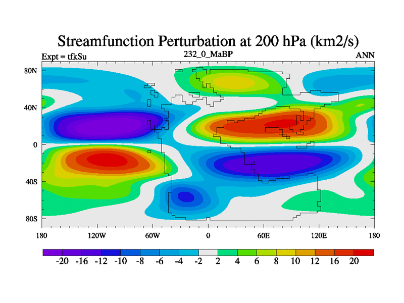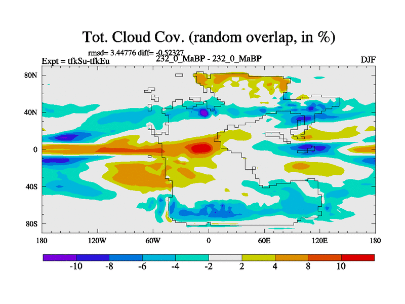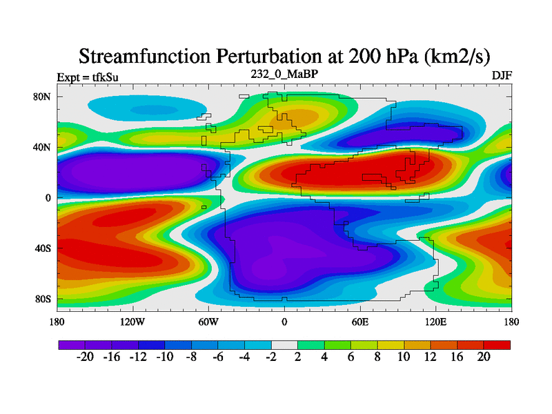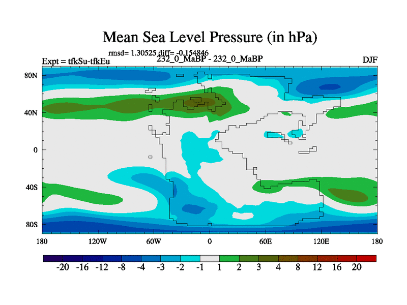 This is the 232.0 Ma simulation using the Scotese palaeogeographies and revised CCN etc. This version has islands and smoothing and desert albedo included. Tuned CO2 to give Scotese temperatures. Started from end of tfkEu.