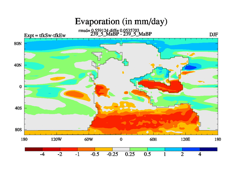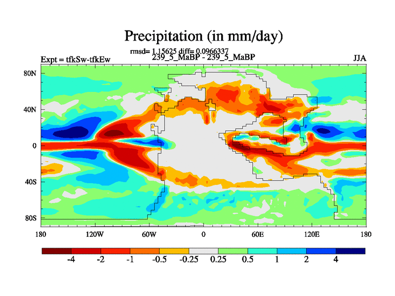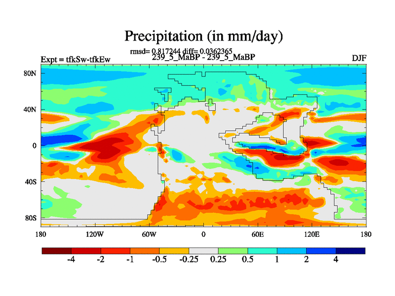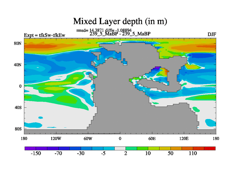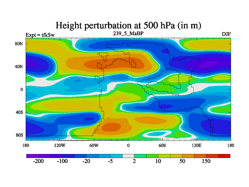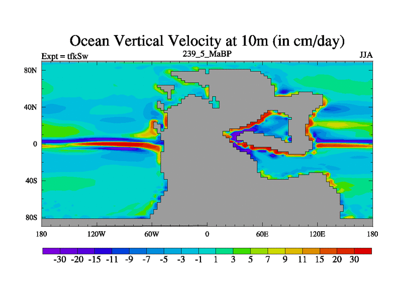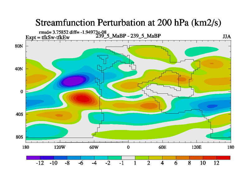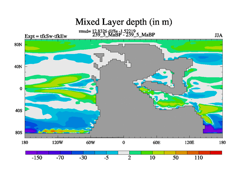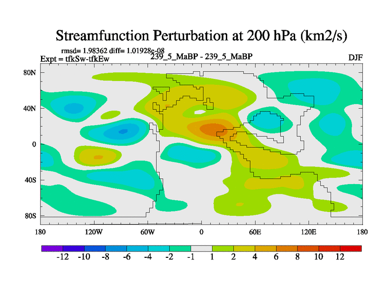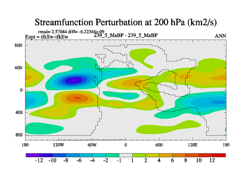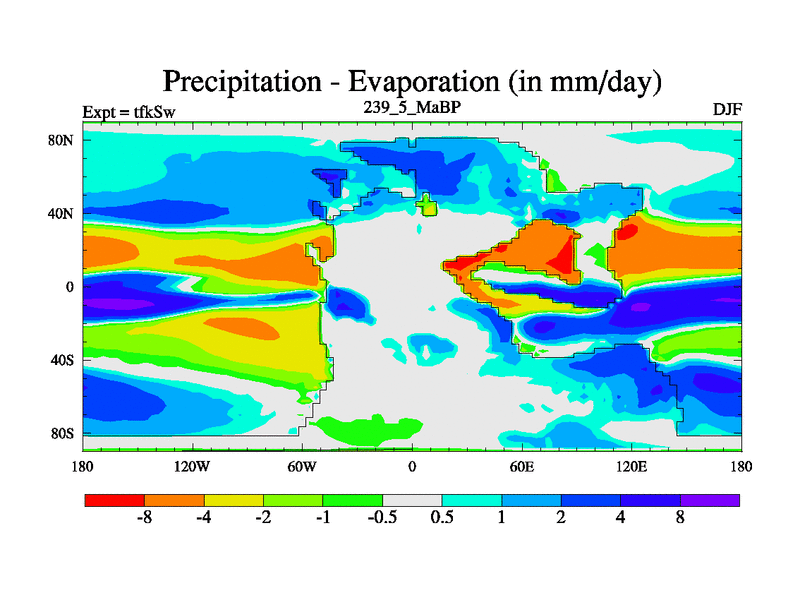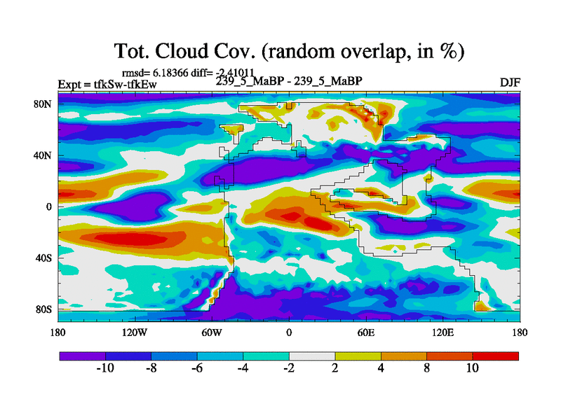 This is the 239.5 Ma simulation using the Scotese palaeogeographies and revised CCN etc. This version has islands and smoothing and desert albedo included. Tuned CO2 to give Scotese temperatures. Started from end of tfkEw.