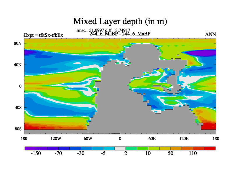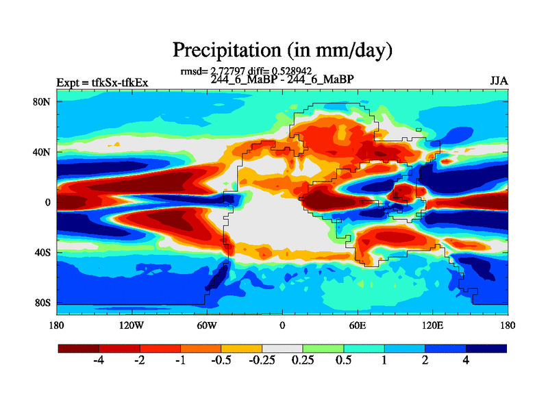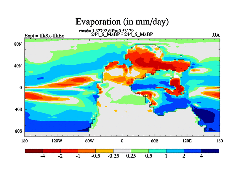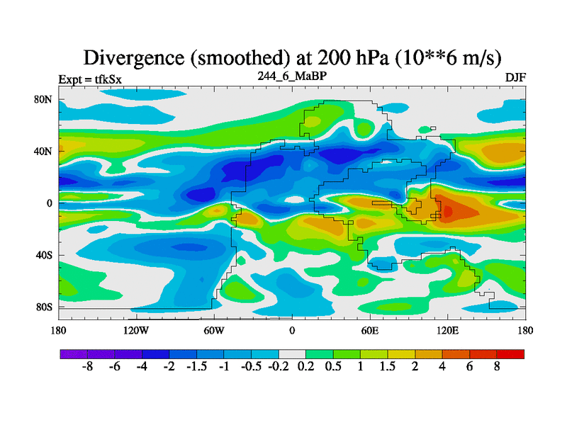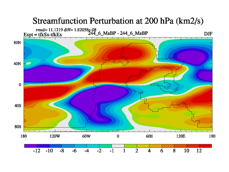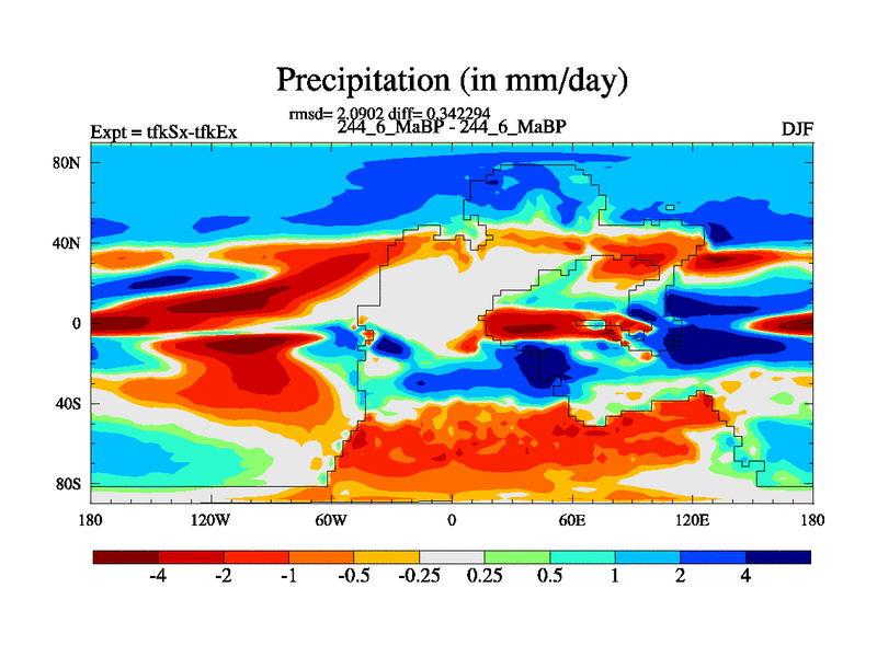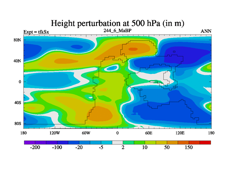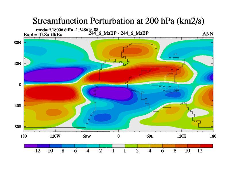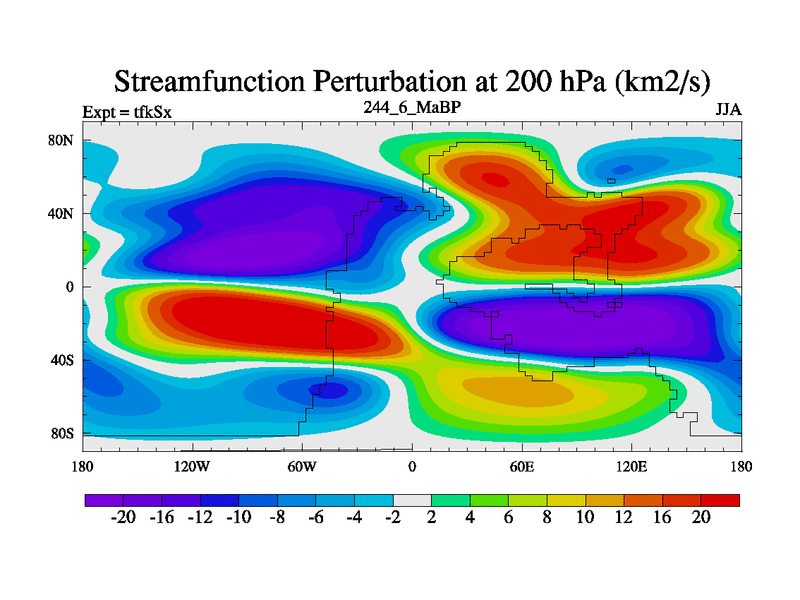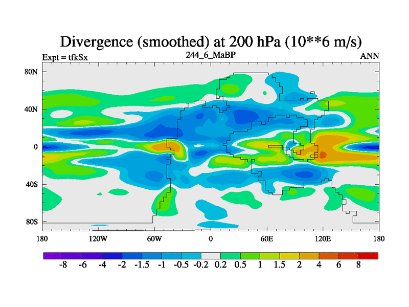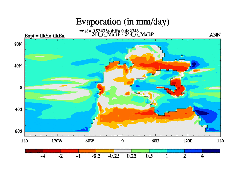 This is the 244.6 Ma simulation using the Scotese palaeogeographies and revised CCN etc. This version has islands and smoothing and desert albedo included. Tuned CO2 to give Scotese temperatures. Started from end of tfkEx.