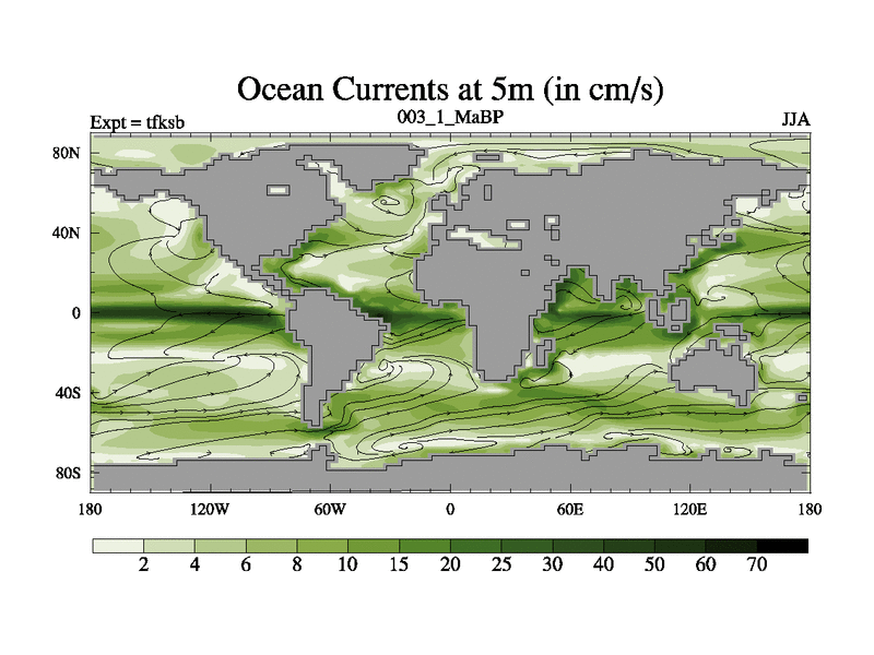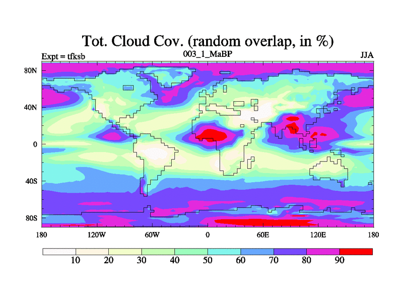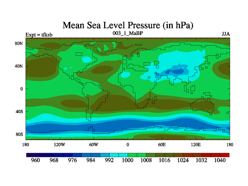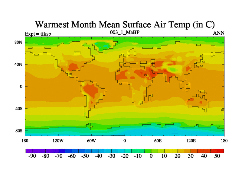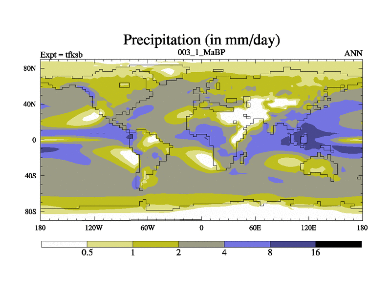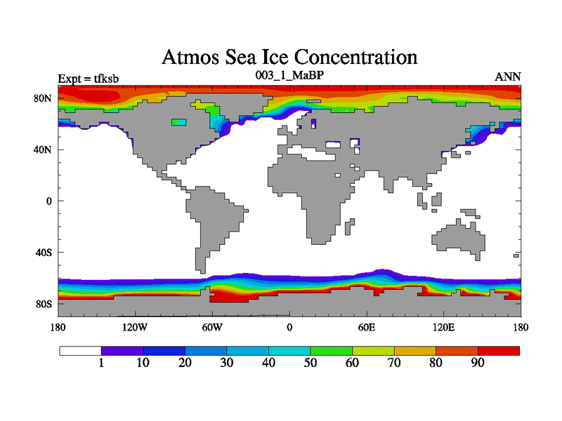 This is the 3.1 Ma simulation using the Scotese palaeogeographies and revised CCN etc. This version has islands and smoothing and desert albedo included. Tuned CO2 to give Scotese temperatures. Started from end of tfkeb.