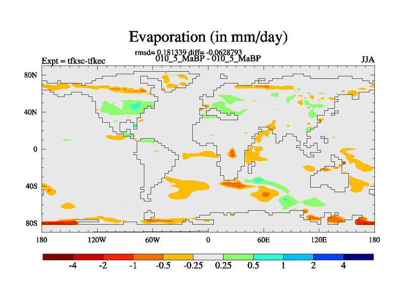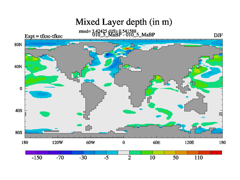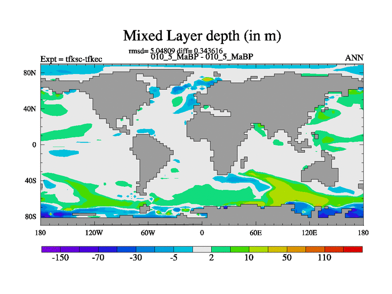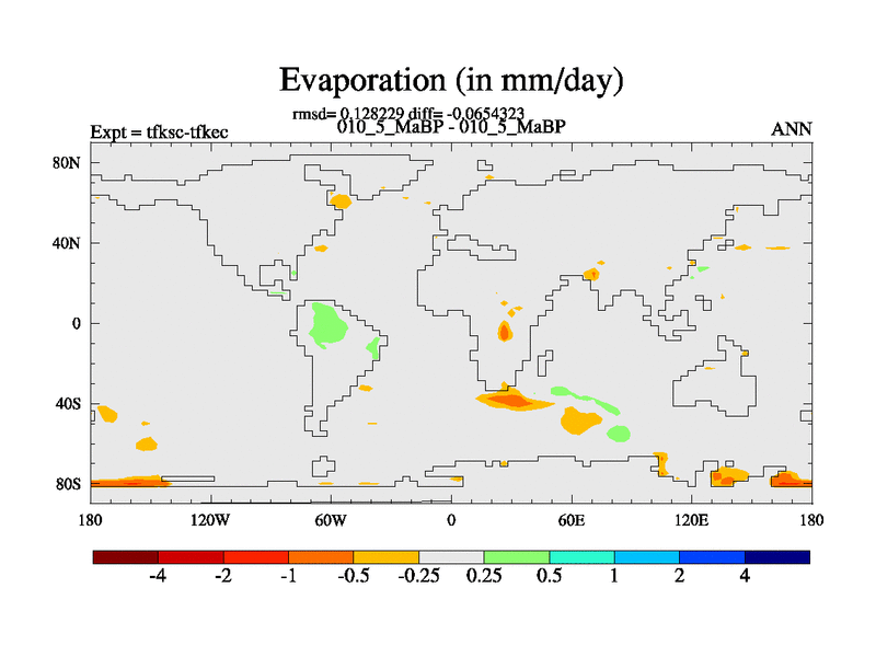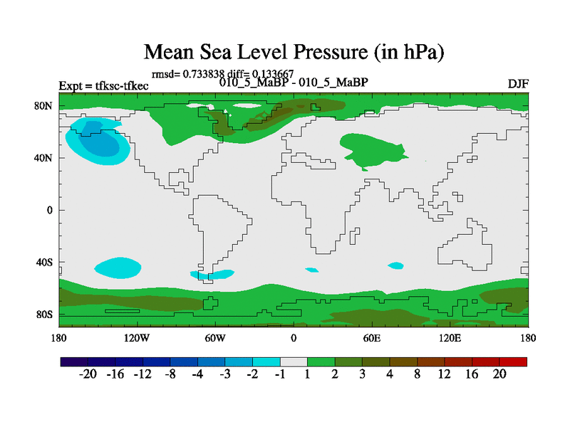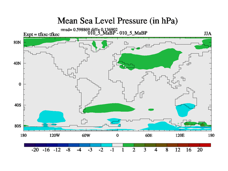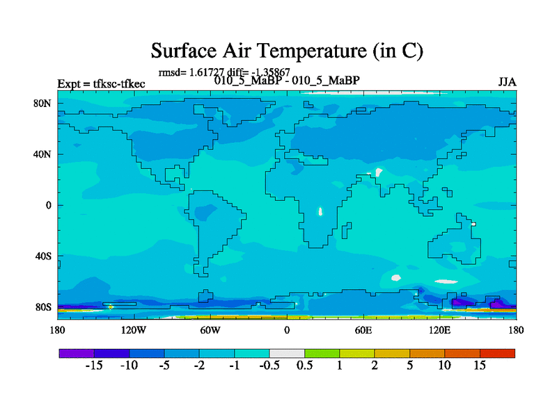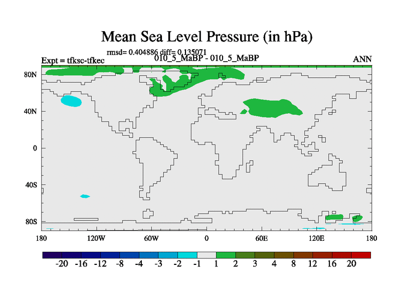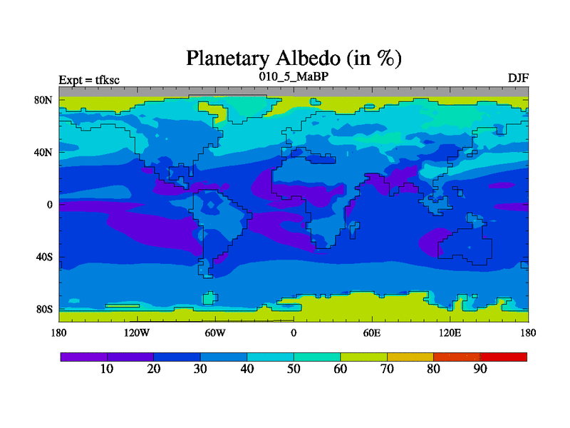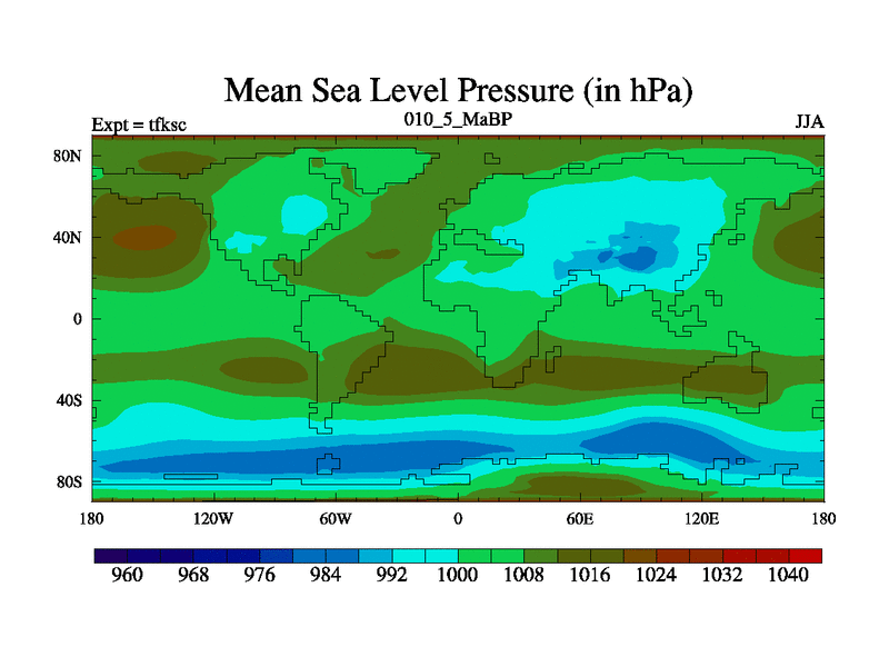 Scientifically as benchmark except using water age update, dark respiration, salinity conservation and revised ozone. Also using new orbital and solar update, and outputting leaf CO2. This version has islands included and atmospheric smoothing and desert albedo. Tuned CO2 to give Scotese temperatures. Started from end of tfkec.