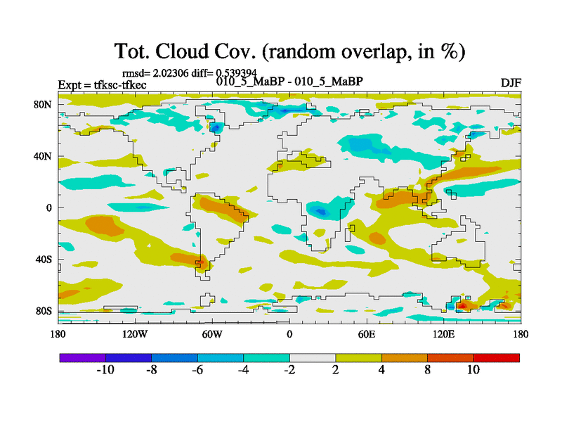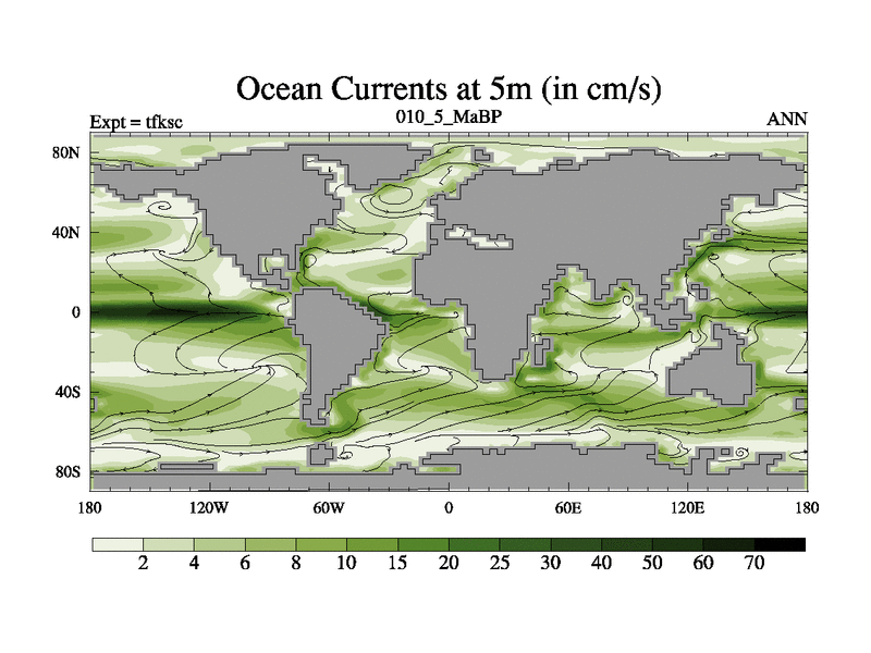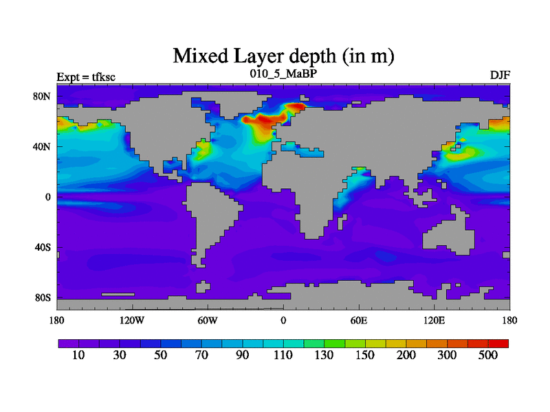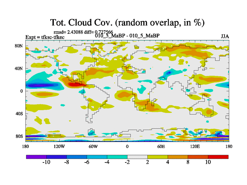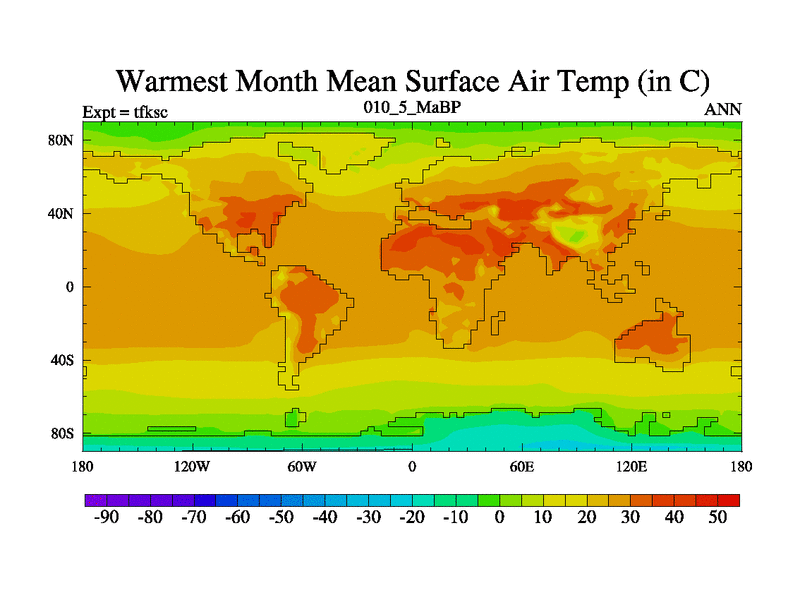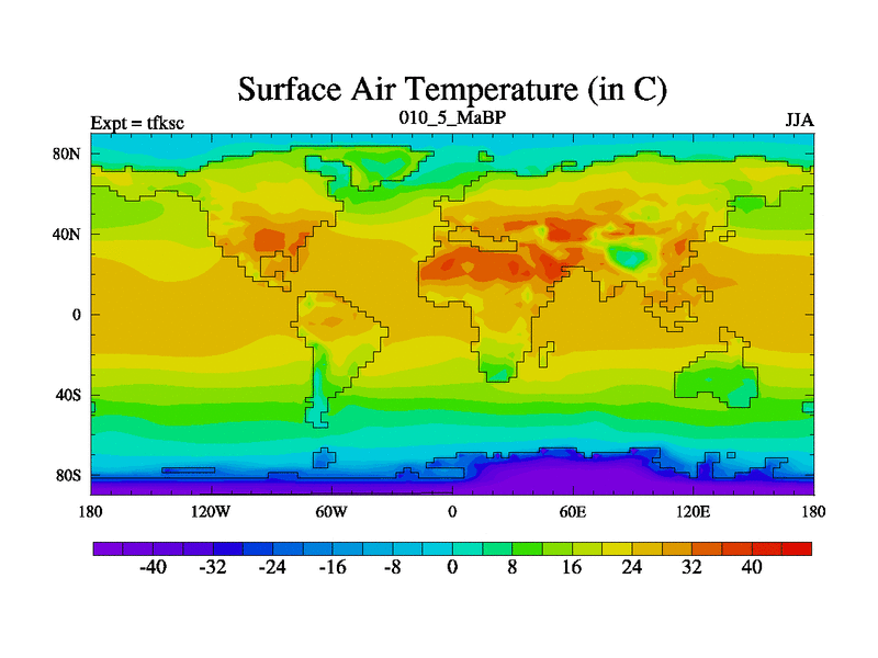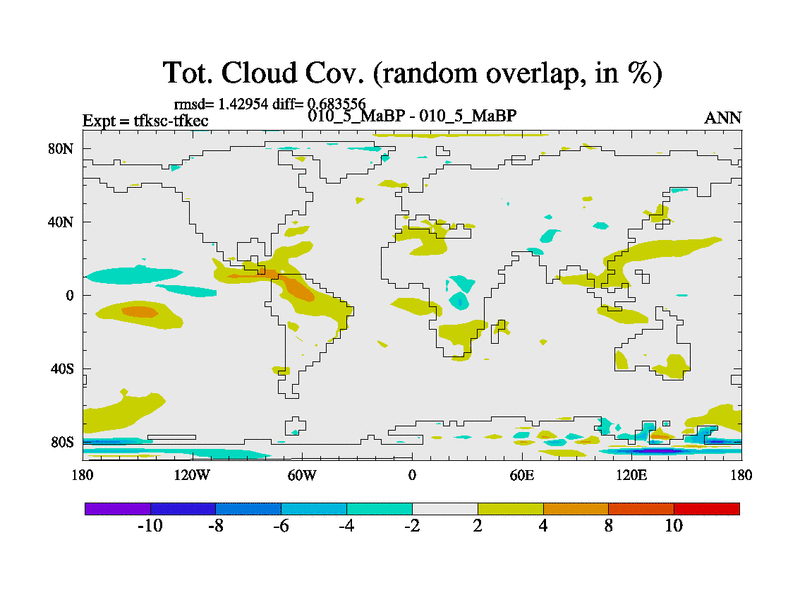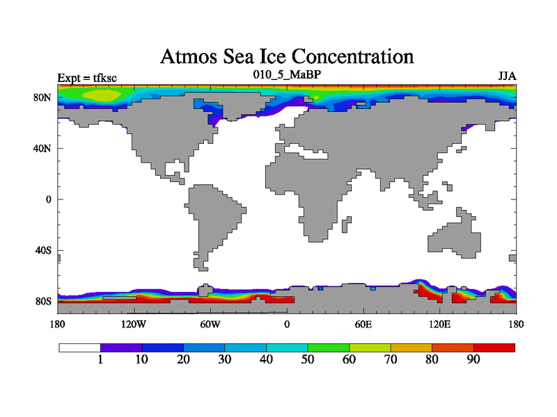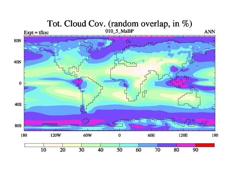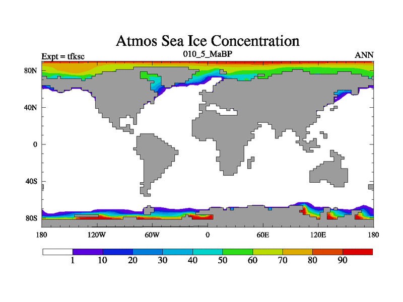 This is the 10.5 Ma simulation using the Scotese palaeogeographies and revised CCN etc. This version has islands and smoothing and desert albedo included. Tuned CO2 to give Scotese temperatures. Started from end of tfkec.
