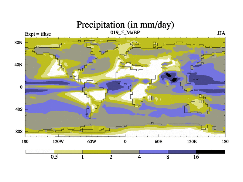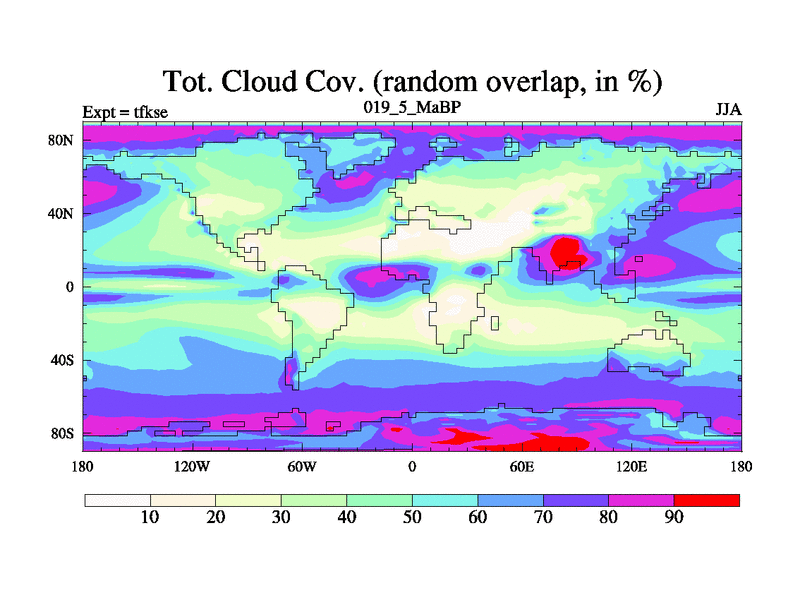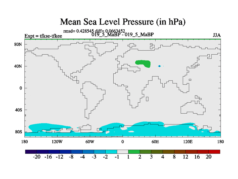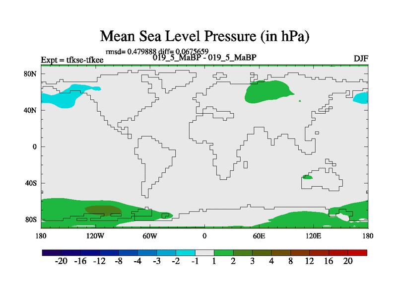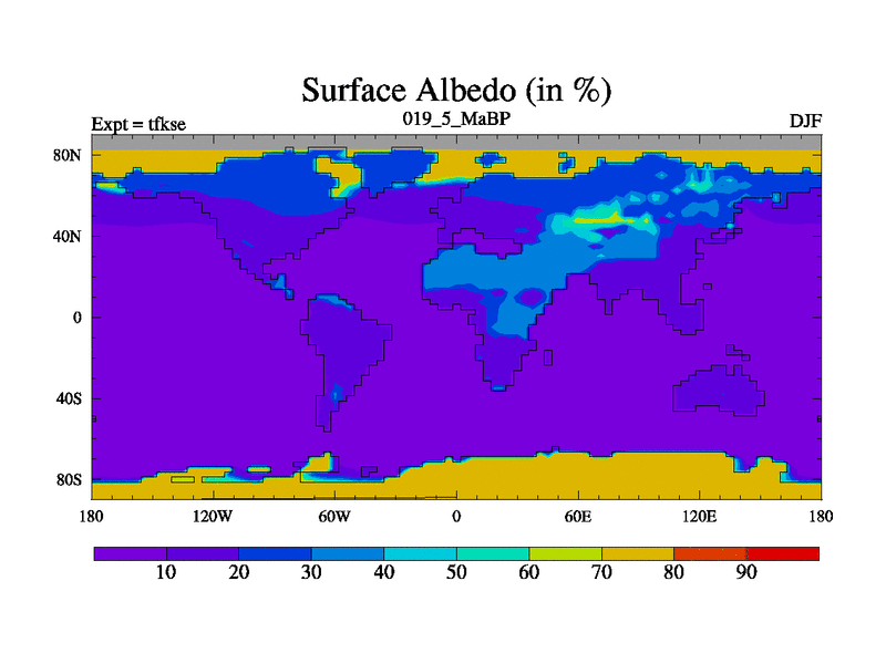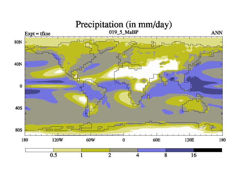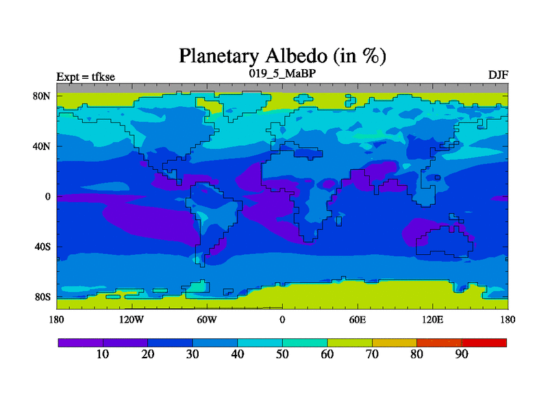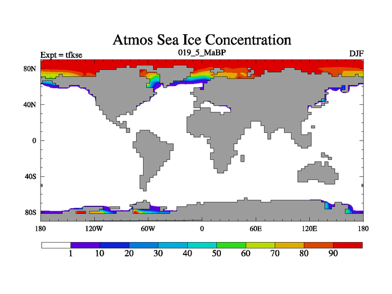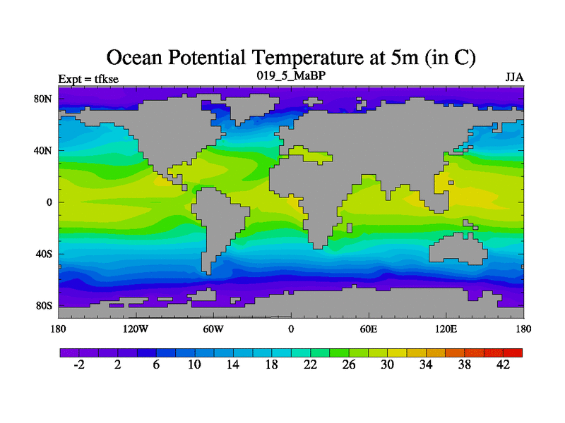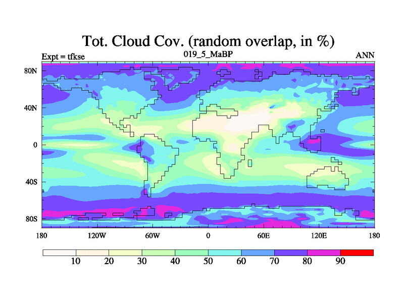 This is the 19.5 Ma simulation using the Scotese palaeogeographies and revised CCN etc. This version has islands and smoothing and desert albedo included. Tuned CO2 to give Scotese temperatures. Started from end of tfkee.