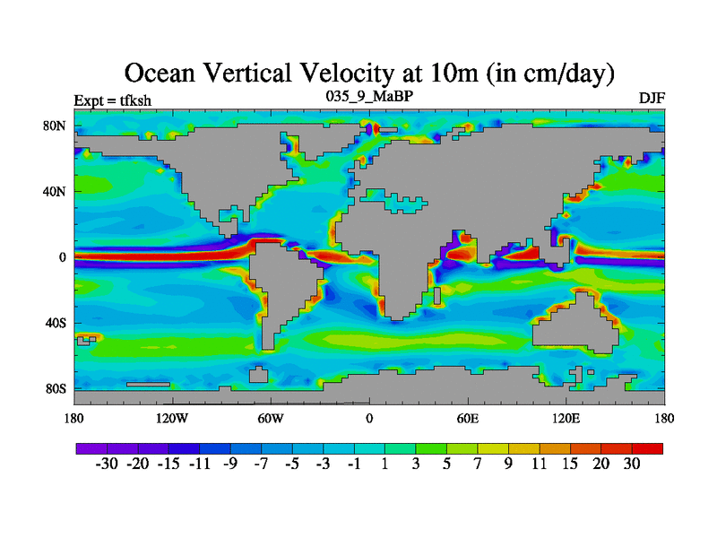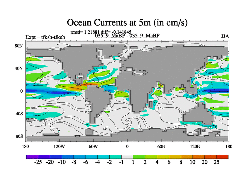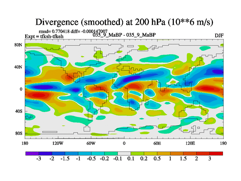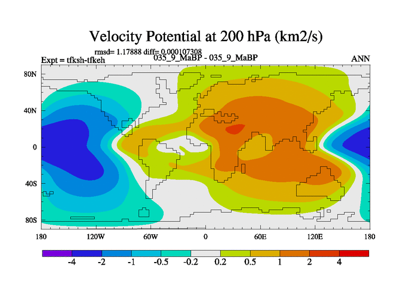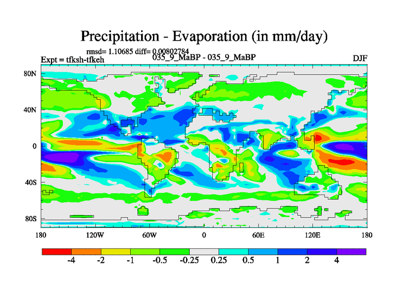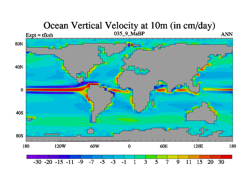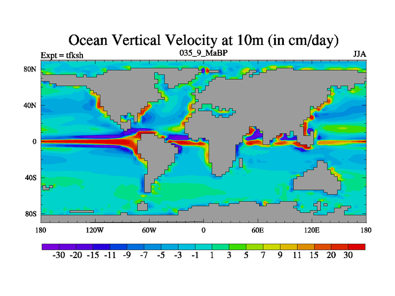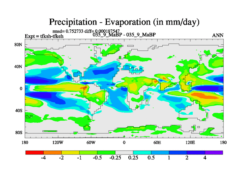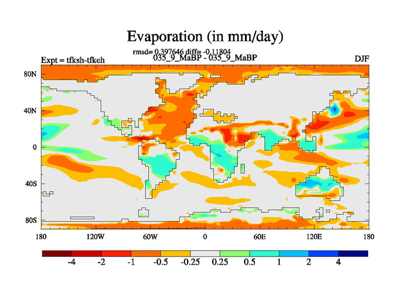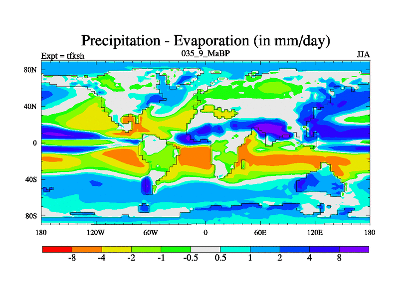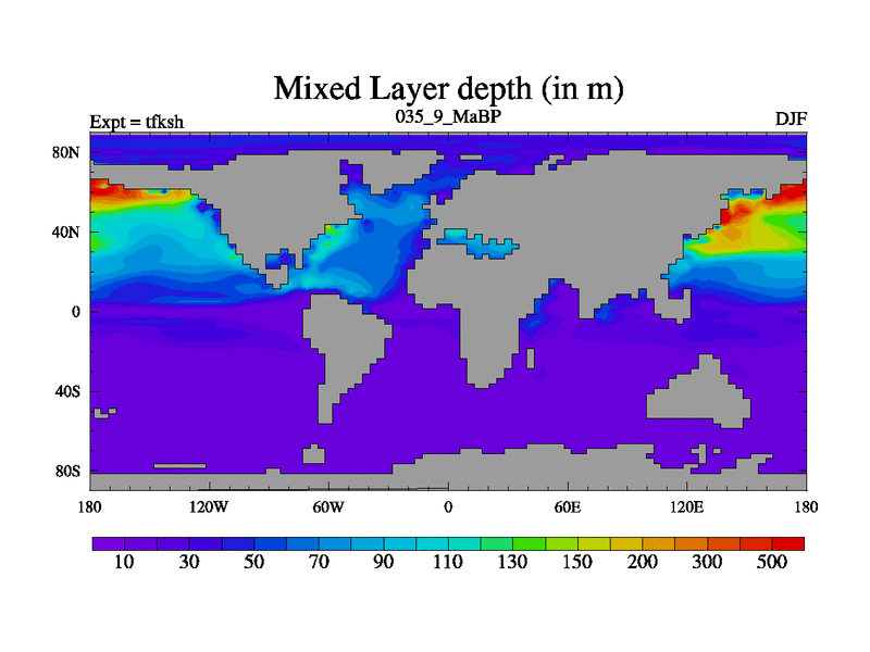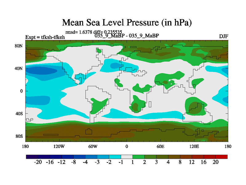 This is the 35.9 Ma simulation using the Scotese palaeogeographies and revised CCN etc. This version has islands and smoothing and desert albedo included. Tuned CO2 to give Scotese temperatures. Started from end of tfkeh.