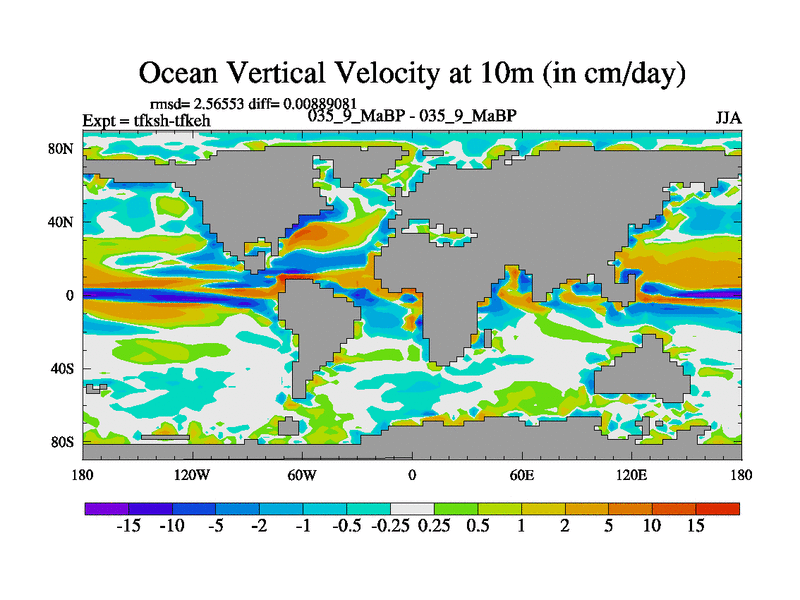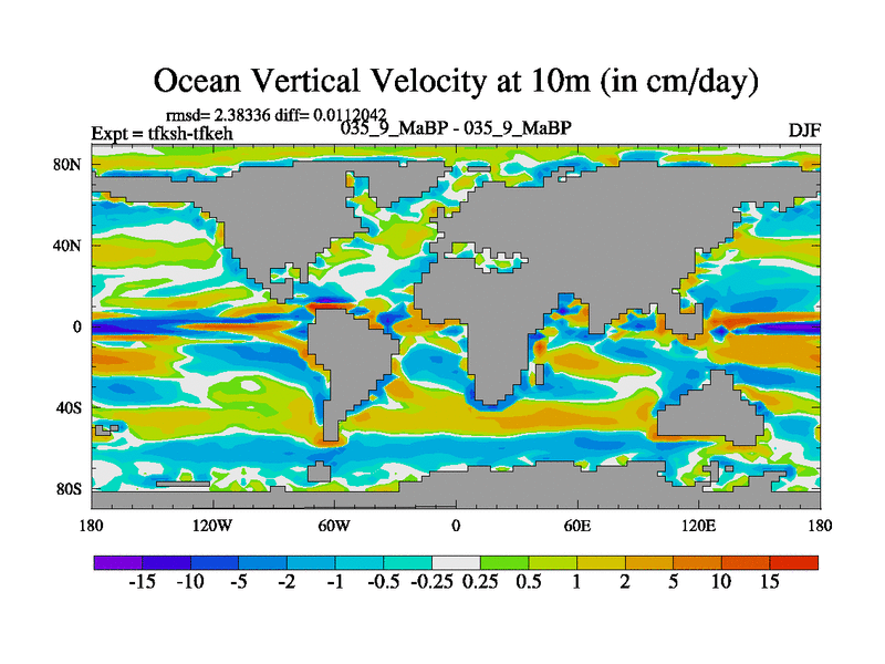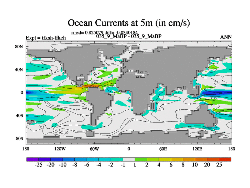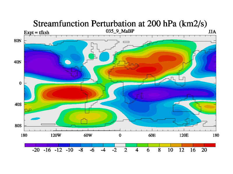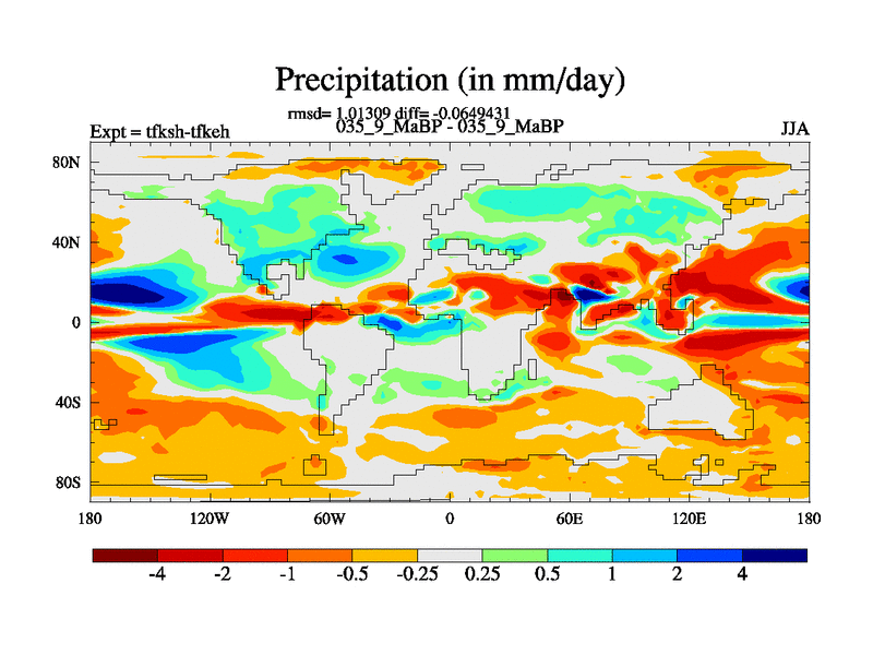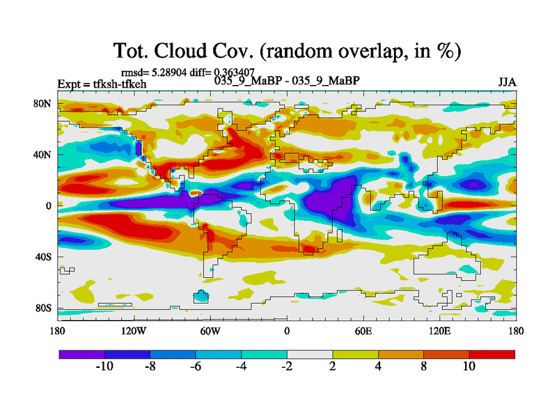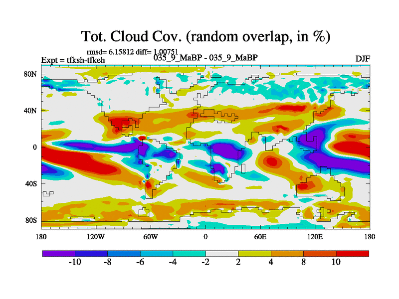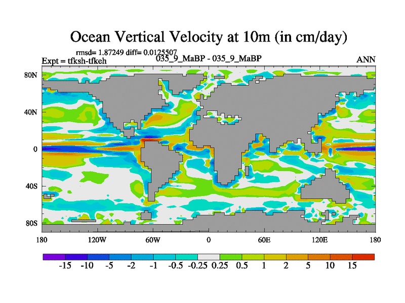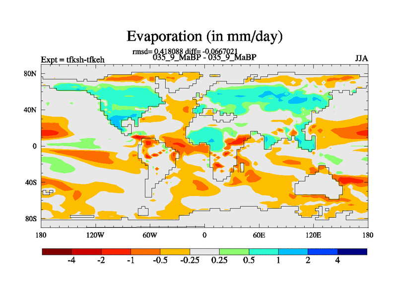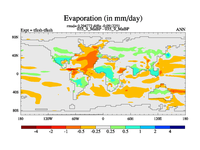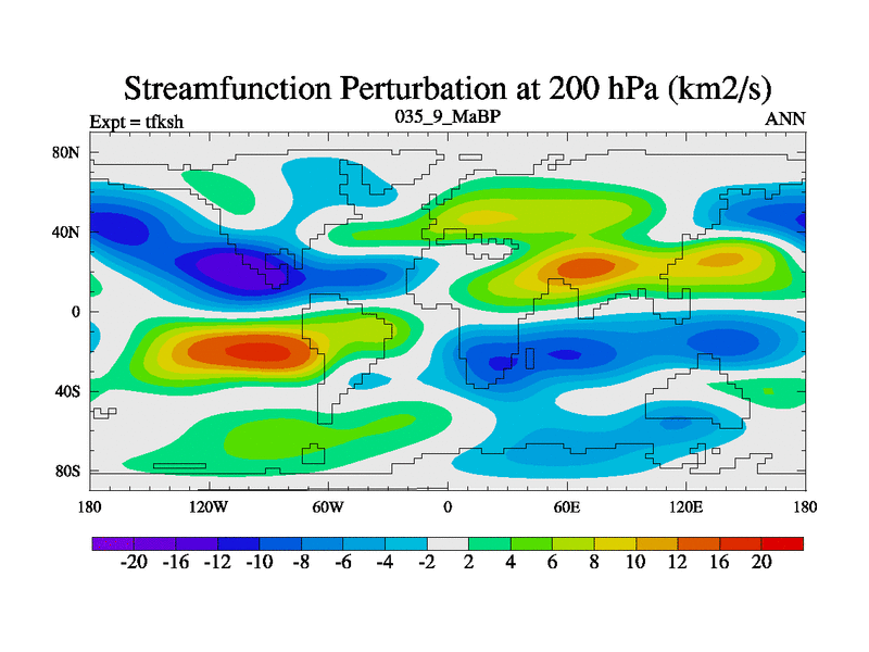 This is the 35.9 Ma simulation using the Scotese palaeogeographies and revised CCN etc. This version has islands and smoothing and desert albedo included. Tuned CO2 to give Scotese temperatures. Started from end of tfkeh.