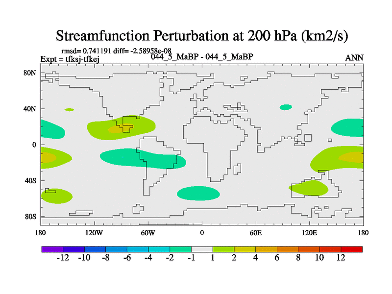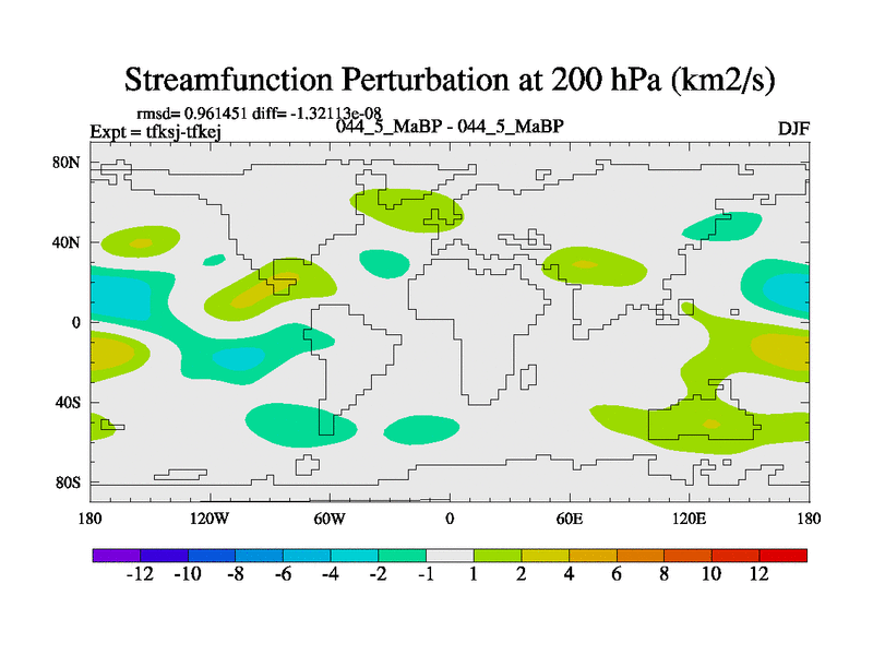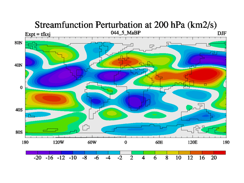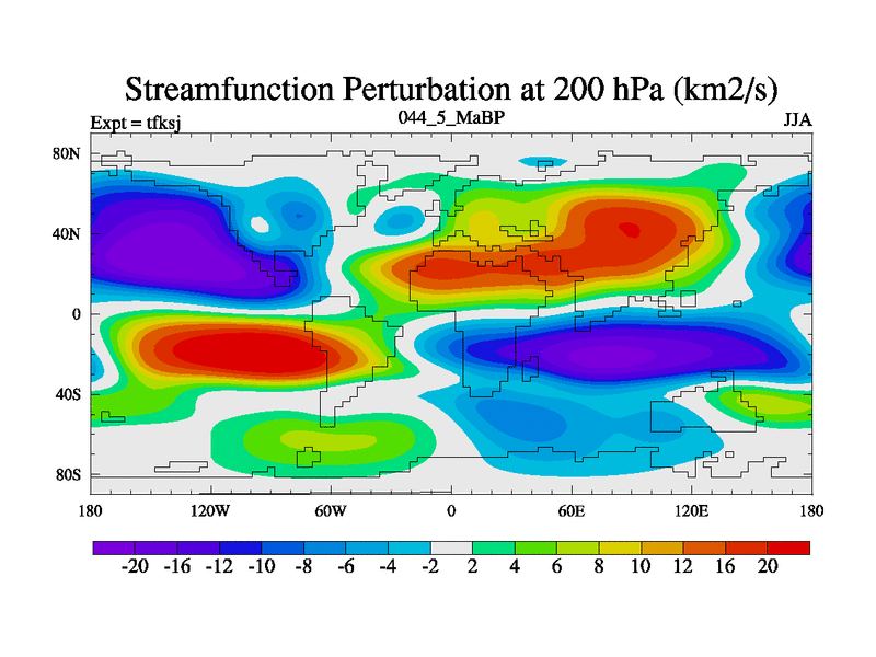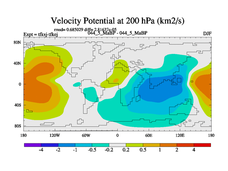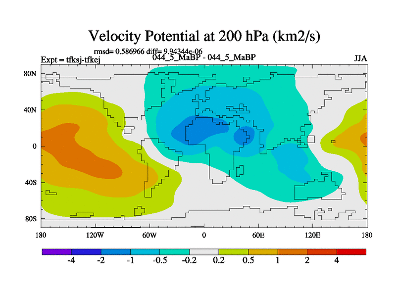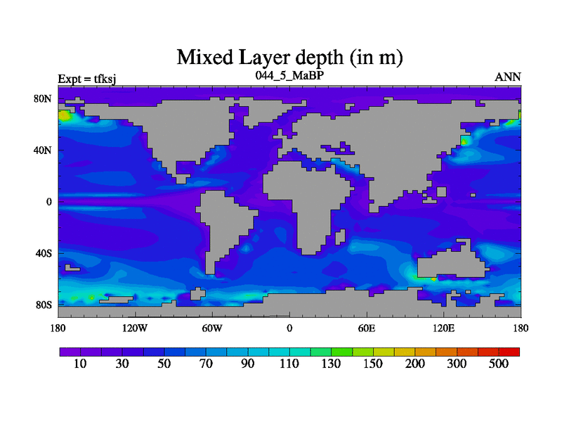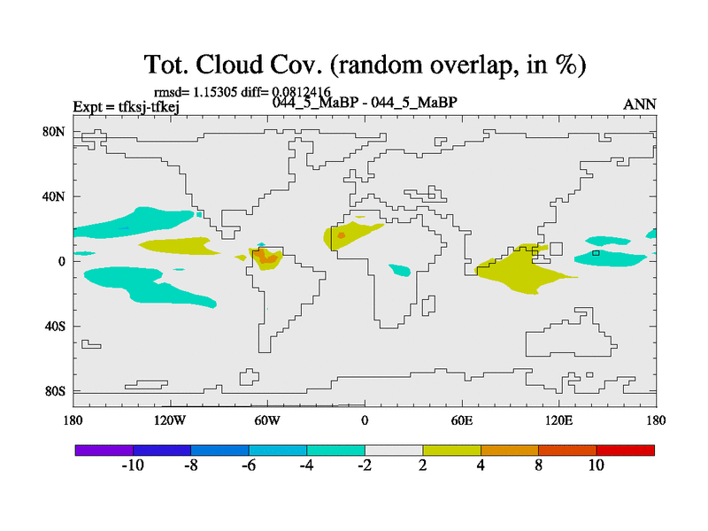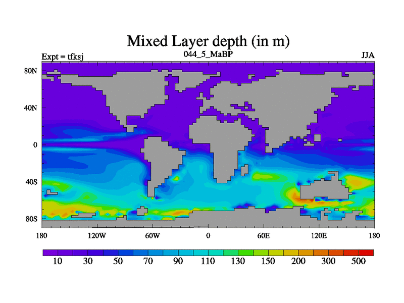 This is the 44.5 Ma simulation using the Scotese palaeogeographies and revised CCN etc. This version has islands and smoothing and desert albedo included. Tuned CO2 to give Scotese temperatures. Started from end of tfkej.