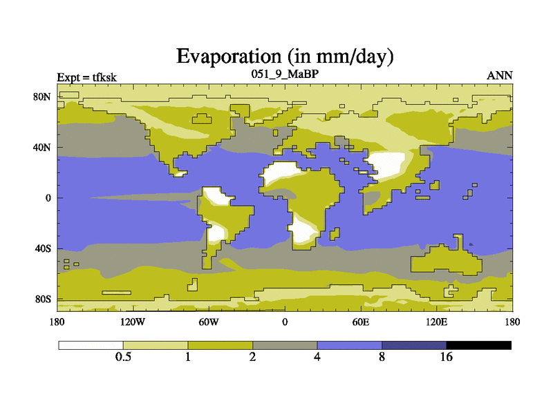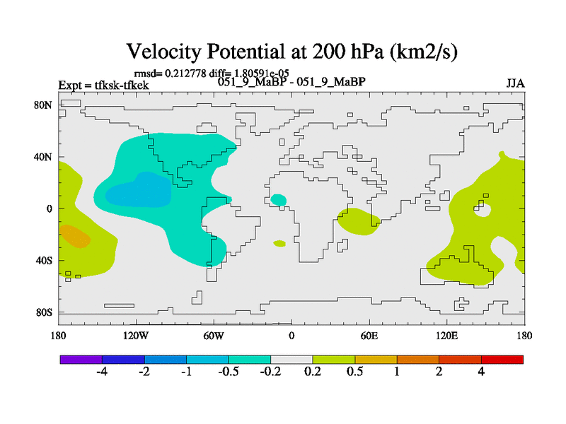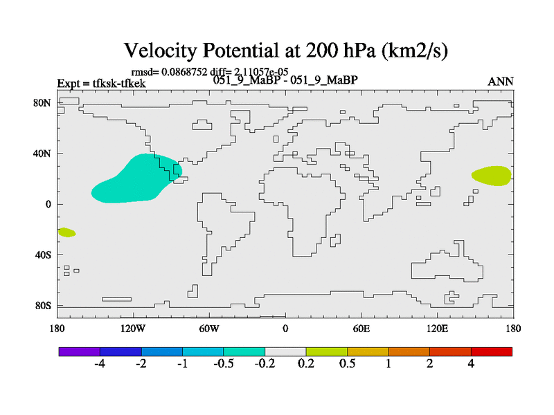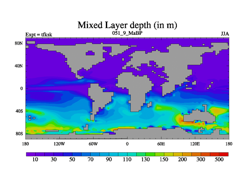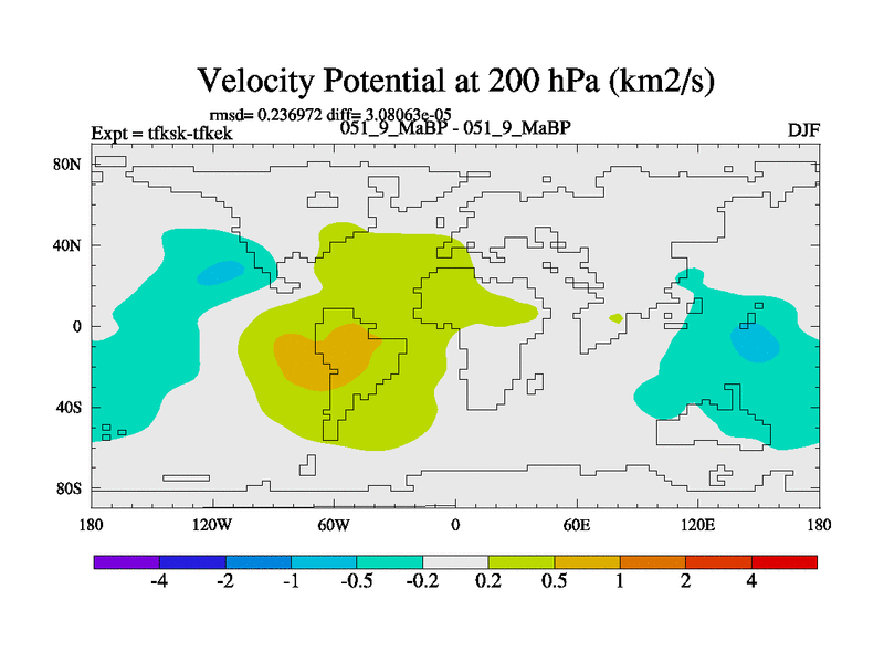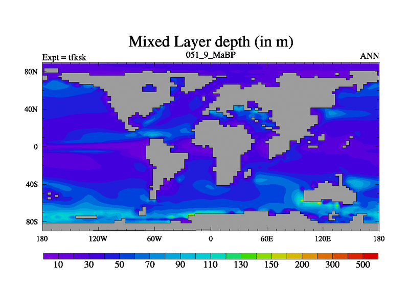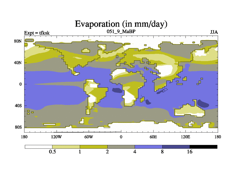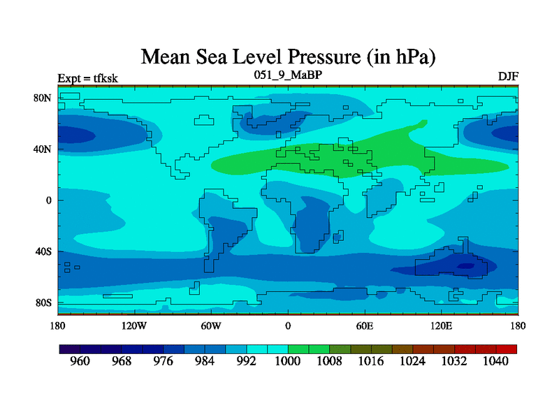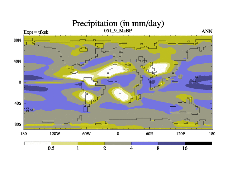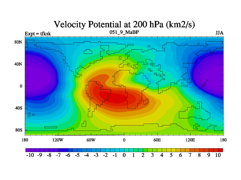 This is the 51.9 Ma simulation using the Scotese palaeogeographies and revised CCN etc. This version has islands and smoothing and desert albedo included. Tuned CO2 to give Scotese temperatures. Started from end of tfkek.