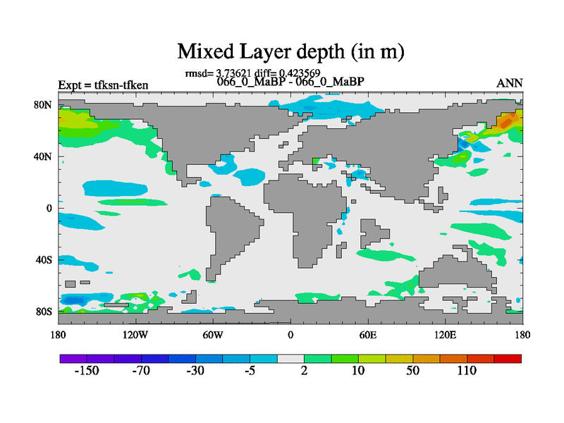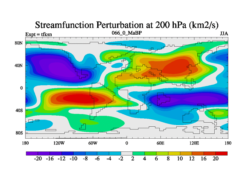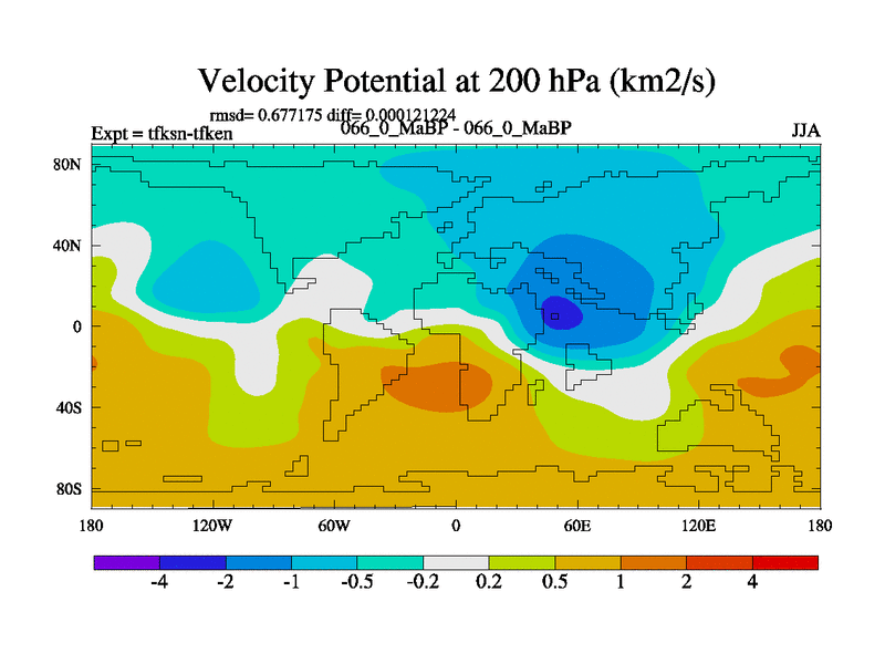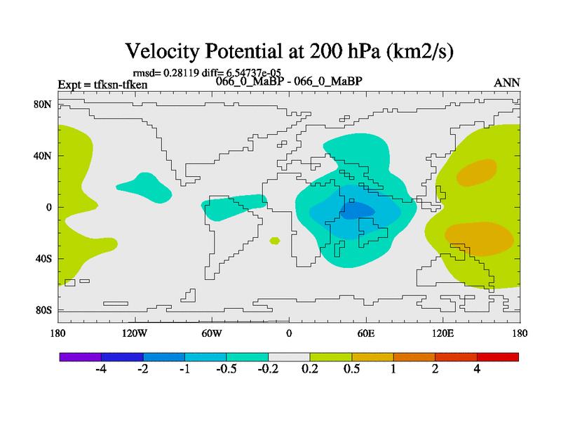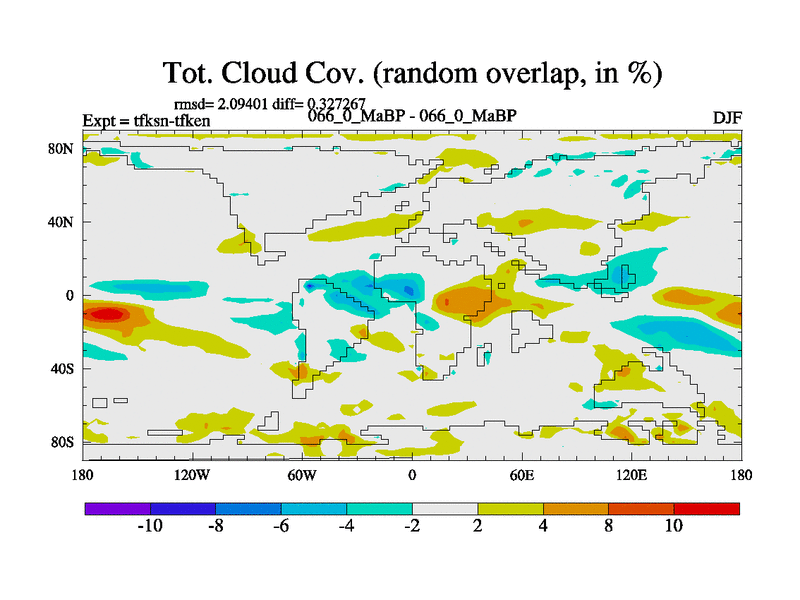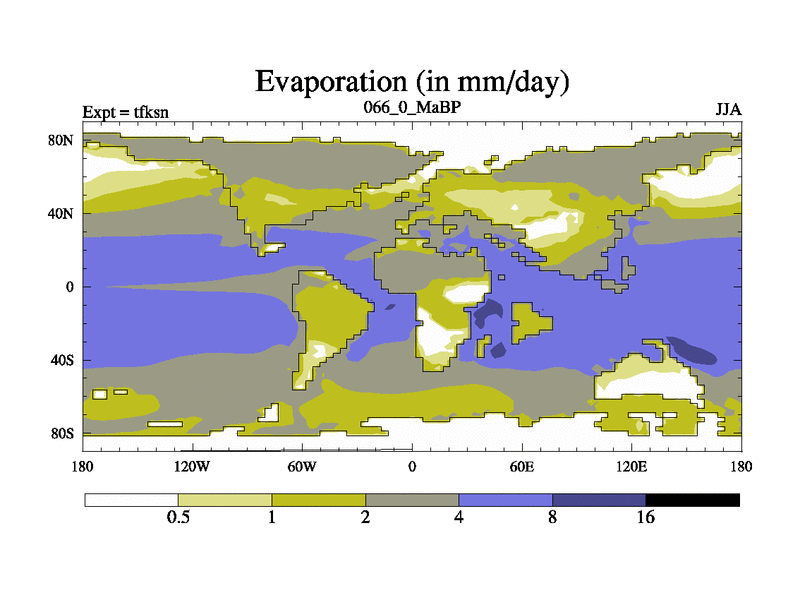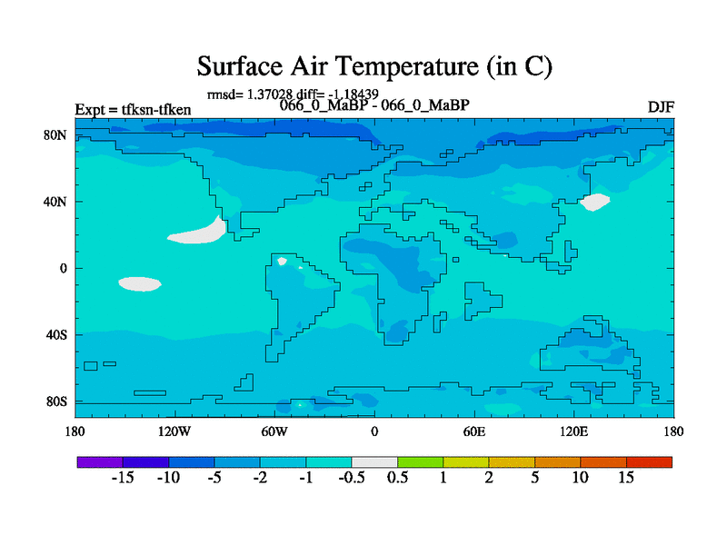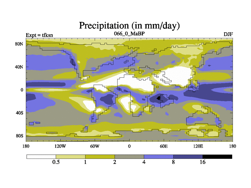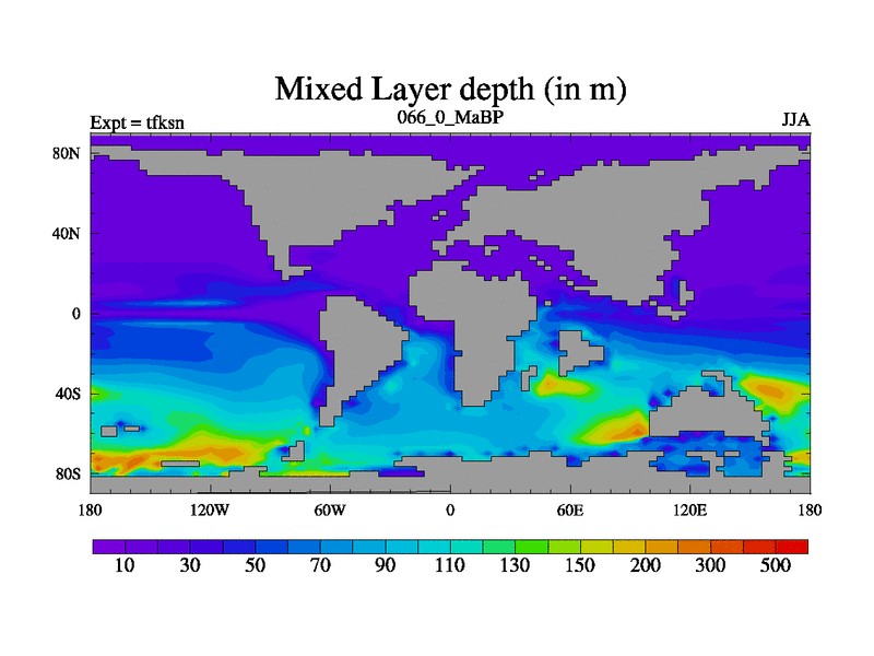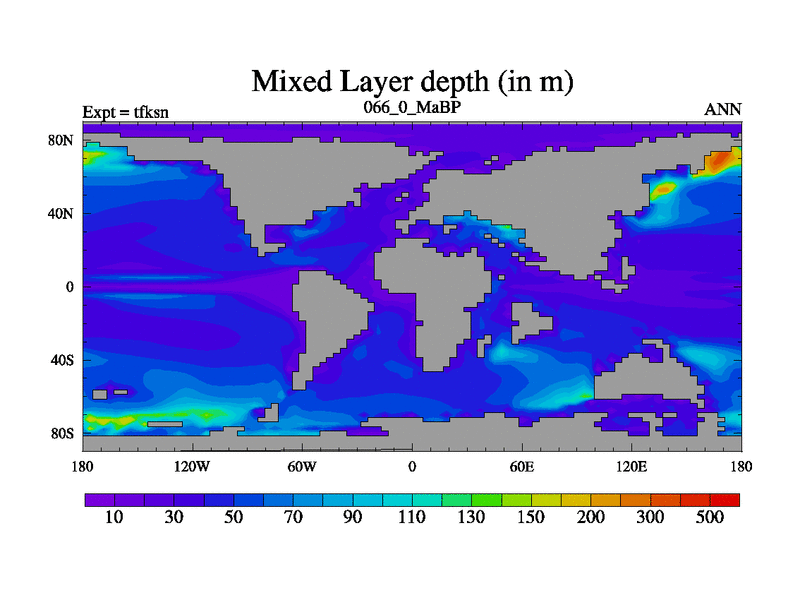 This is the 66.0 Ma simulation using the Scotese palaeogeographies and revised CCN etc. This version has islands and smoothing and desert albedo included. Tuned CO2 to give Scotese temperatures. Started from end of tfken.