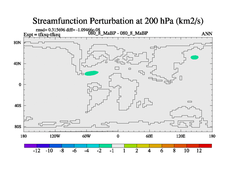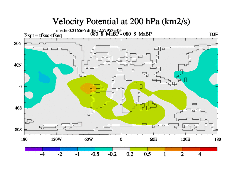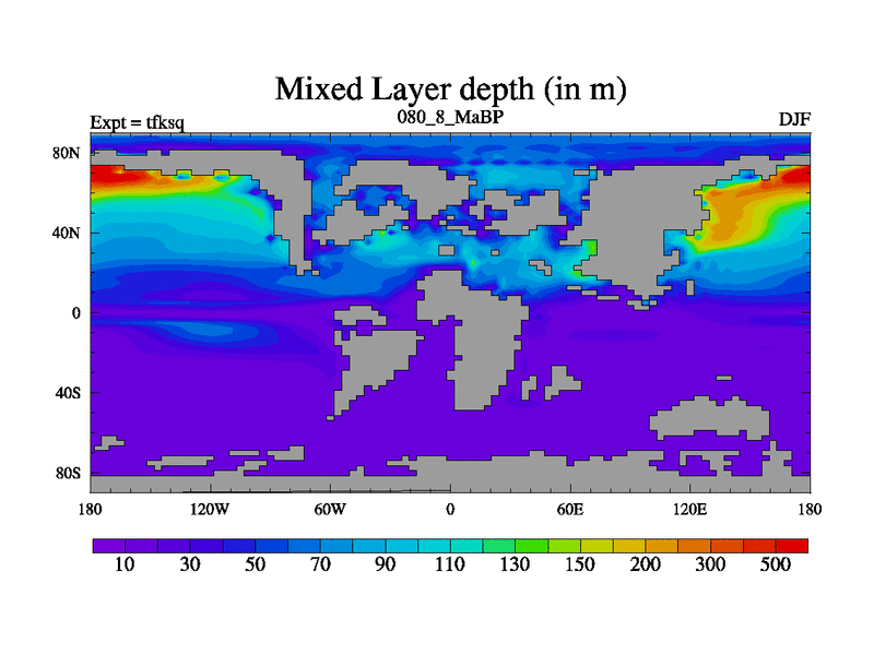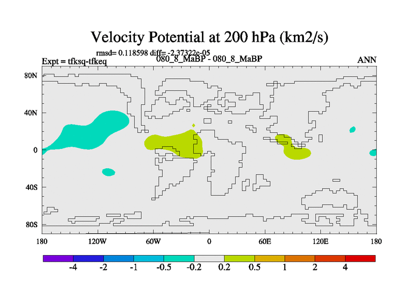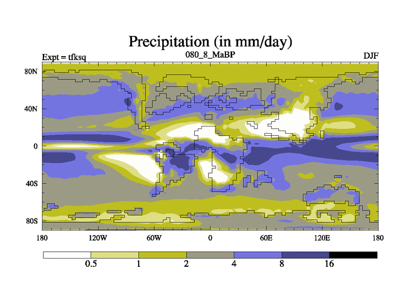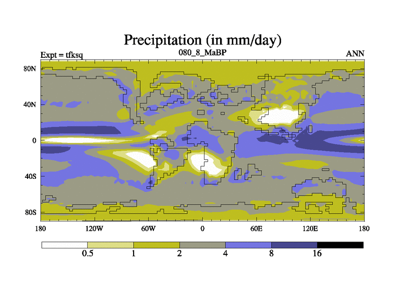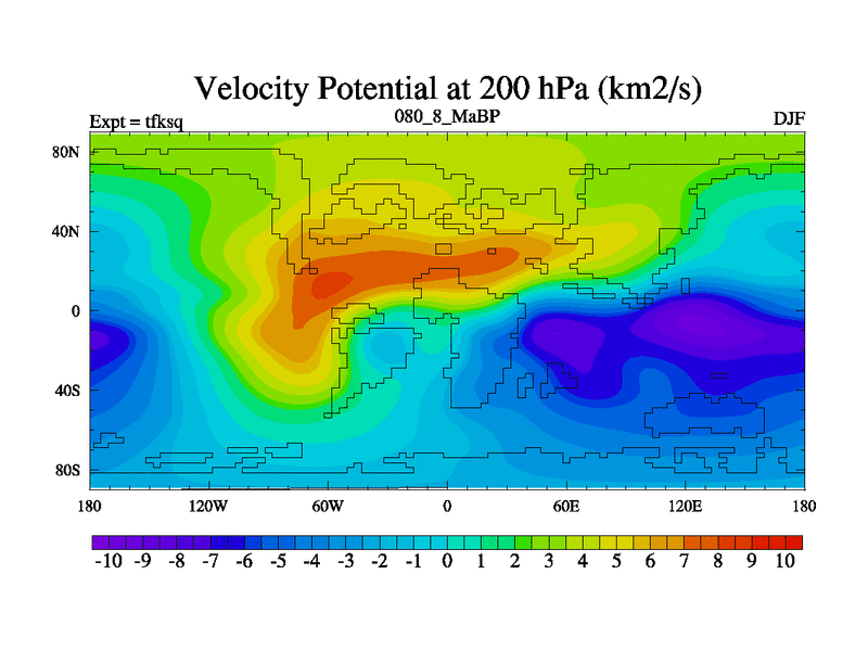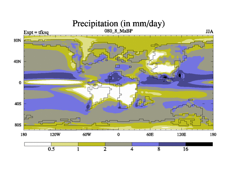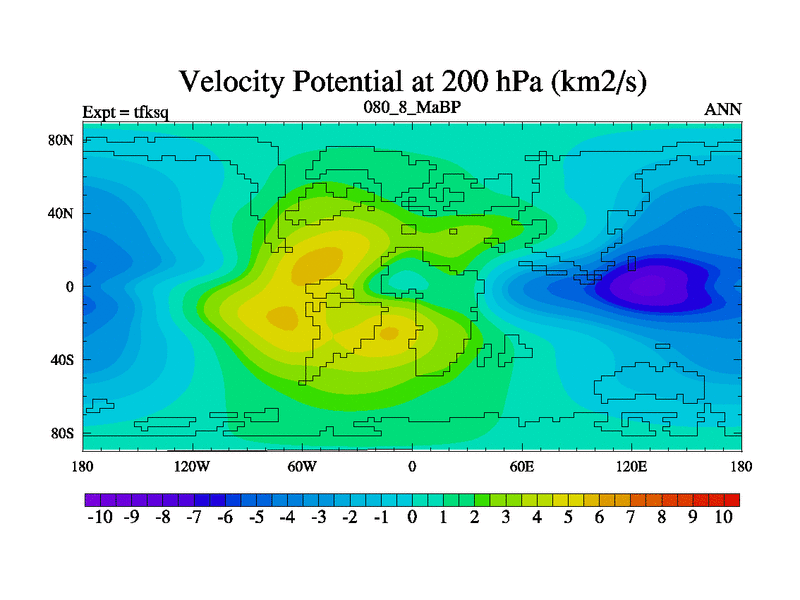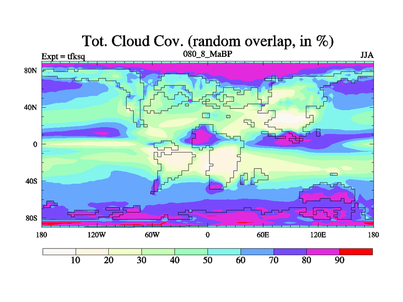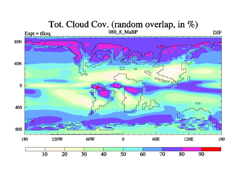 This is the 80.8 Ma simulation using the Scotese palaeogeographies and revised CCN etc. This version has islands and smoothing and desert albedo included. Tuned CO2 to give Scotese temperatures. Started from end of tfkeq.