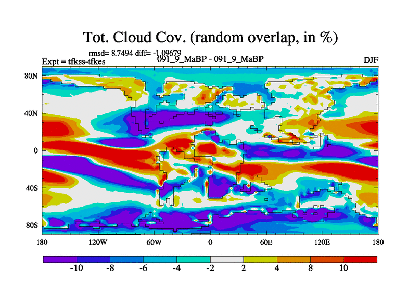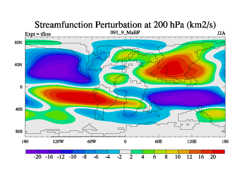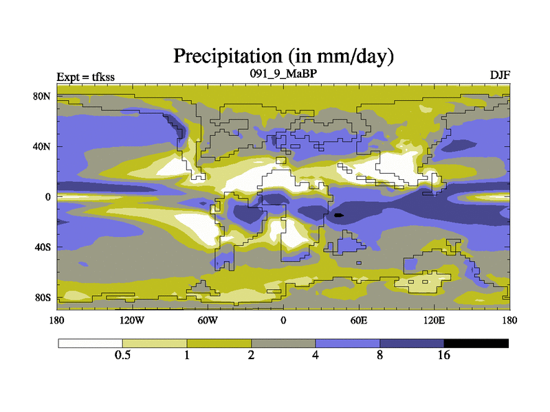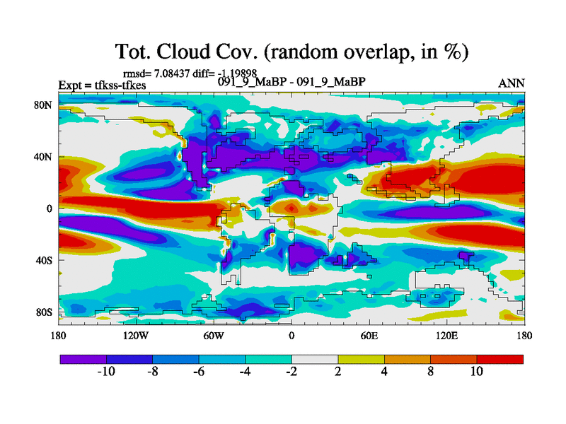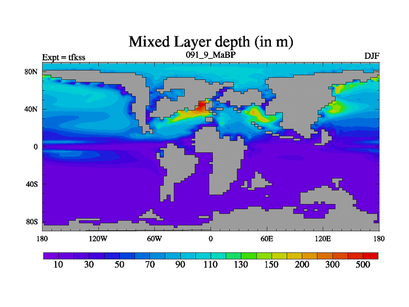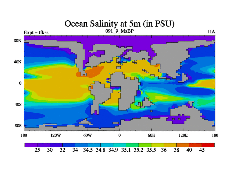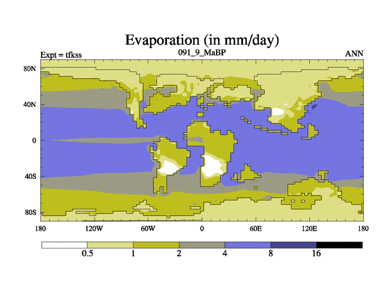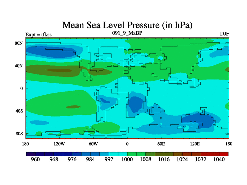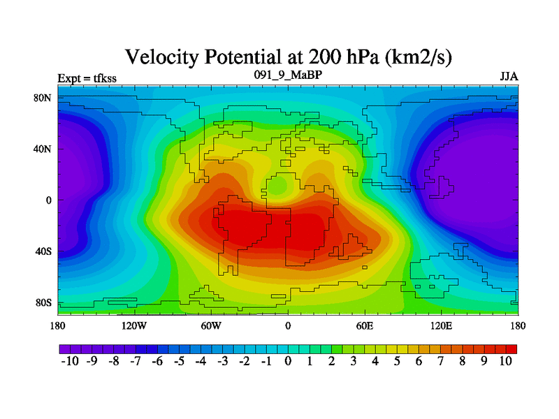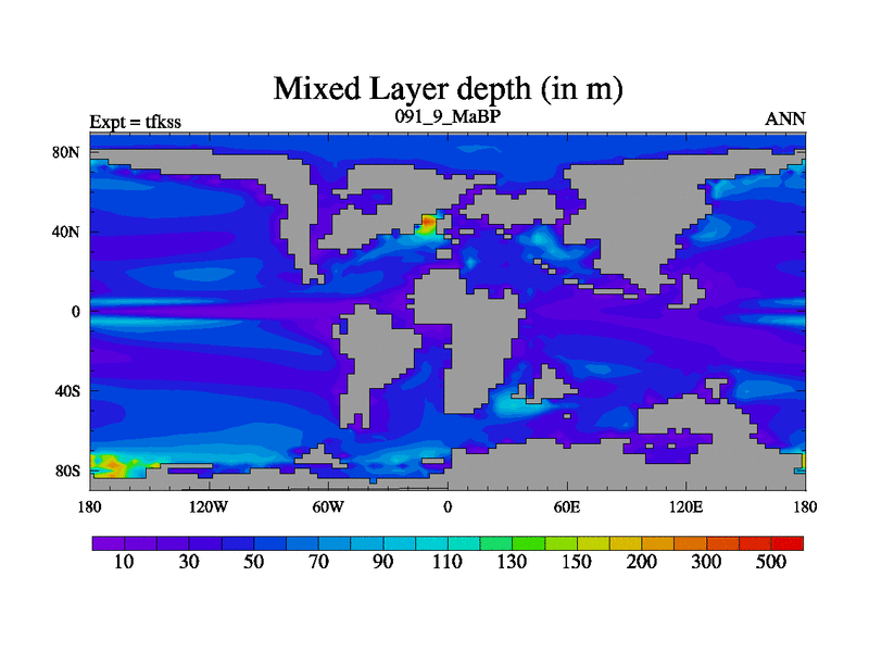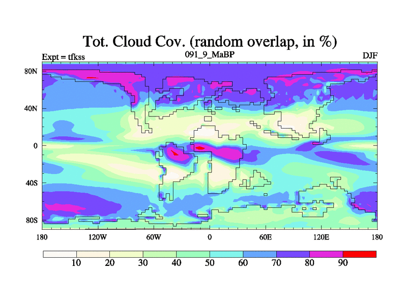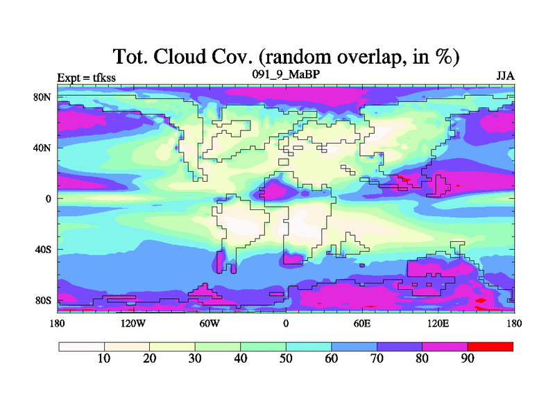 This is the 91.9 Ma simulation using the Scotese palaeogeographies and revised CCN etc. This version has islands and smoothing and desert albedo included. Tuned CO2 to give Scotese temperatures. Started from end of tfkes.