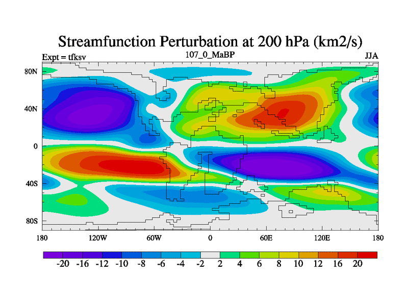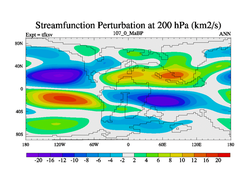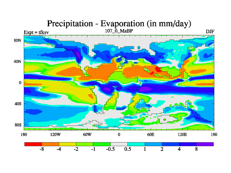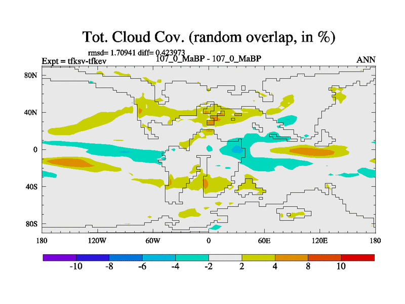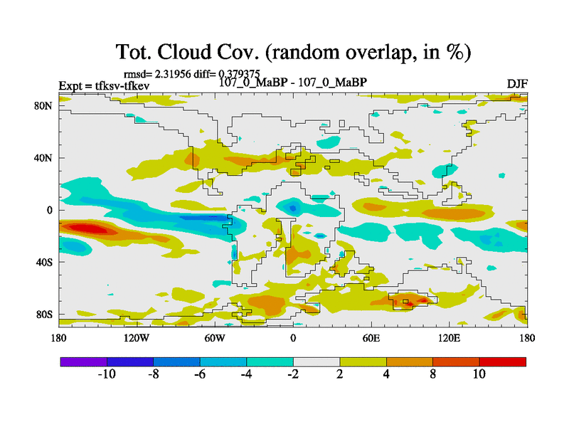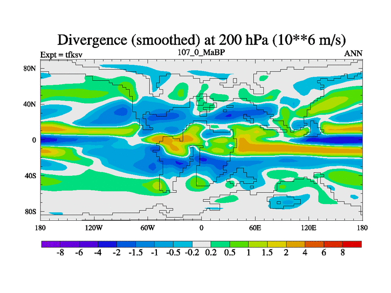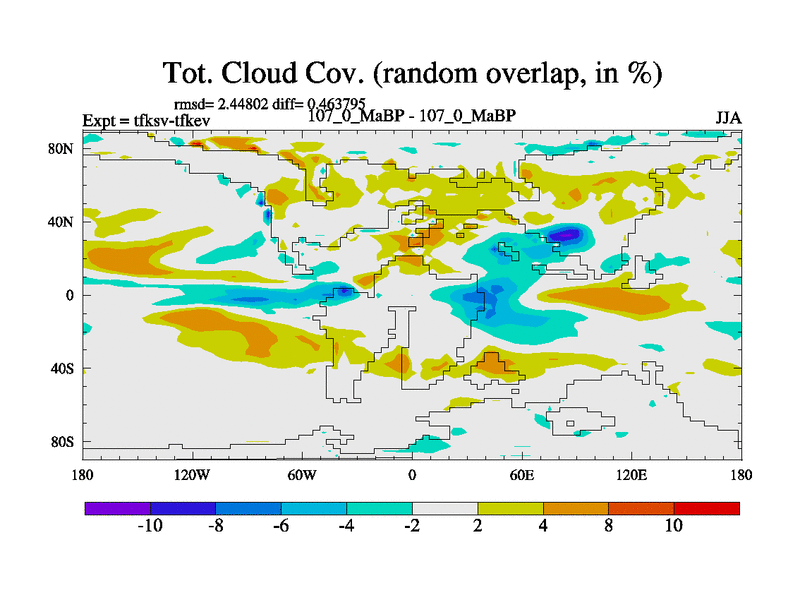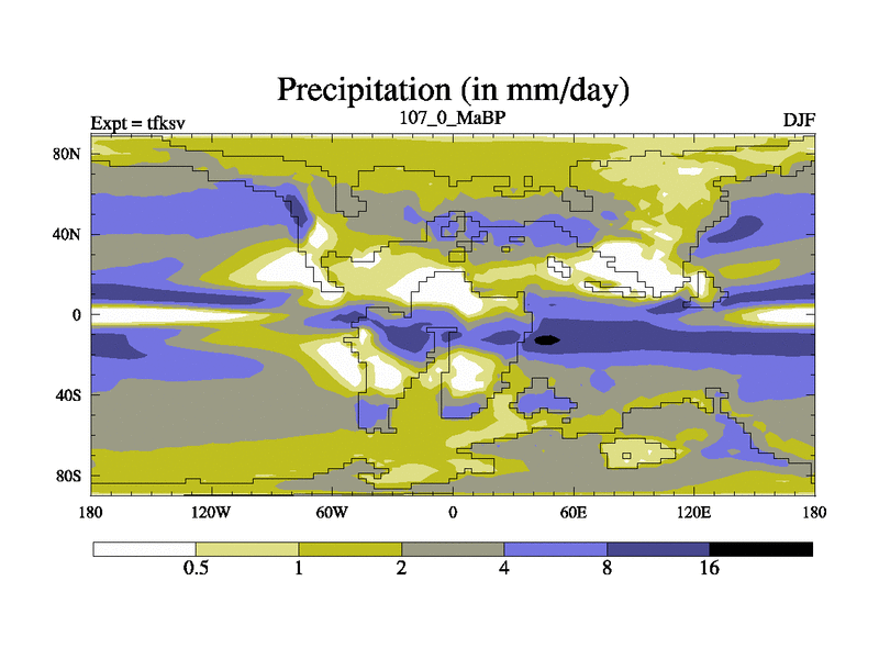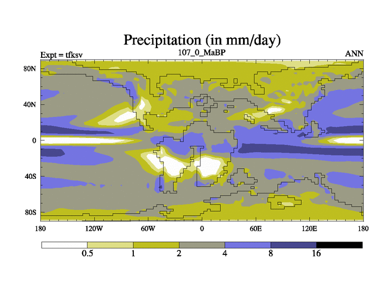 This is the 107.0 Ma simulation using the Scotese palaeogeographies and revised CCN etc. This version has islands and smoothing and desert albedo included. Tuned CO2 to give Scotese temperatures. Started from end of tfkev.