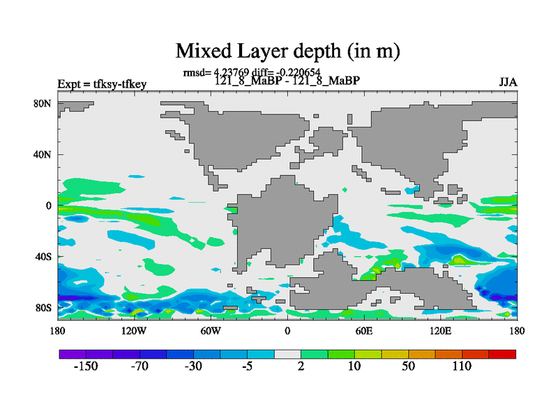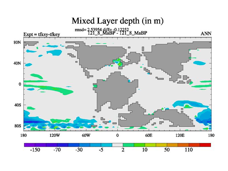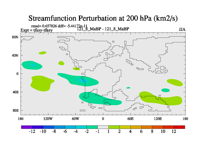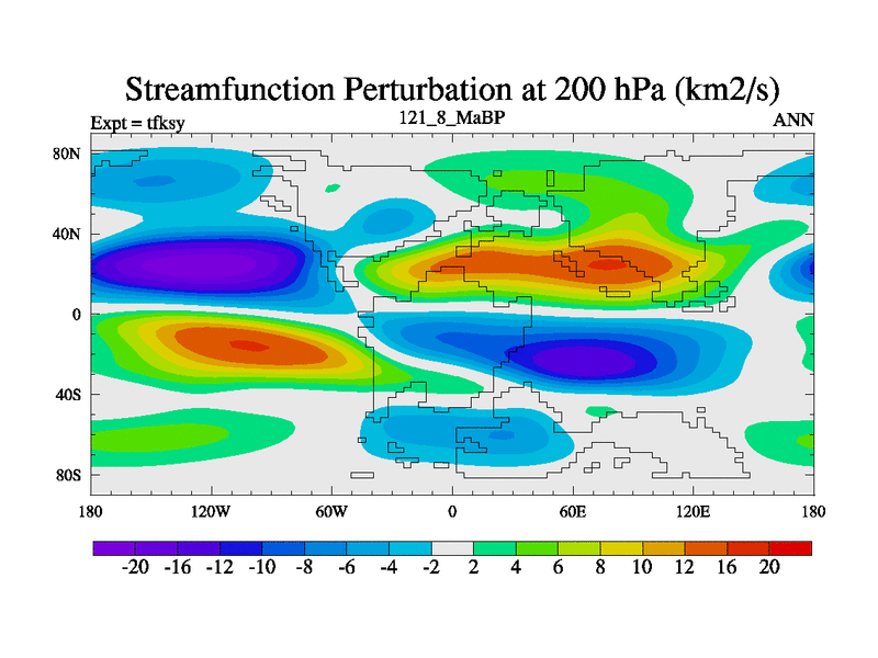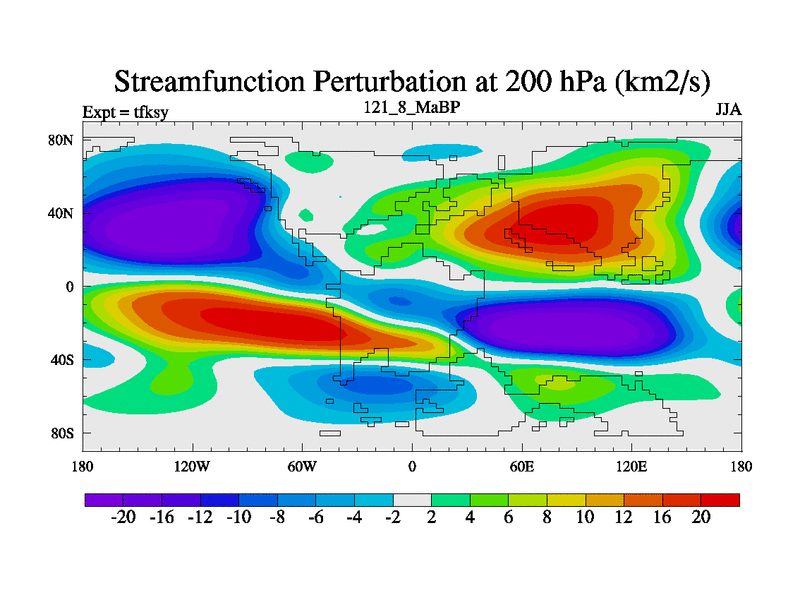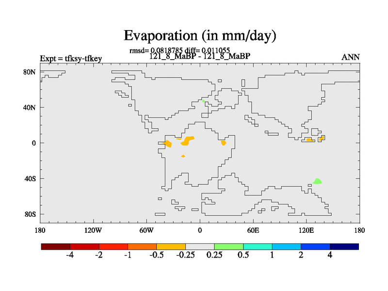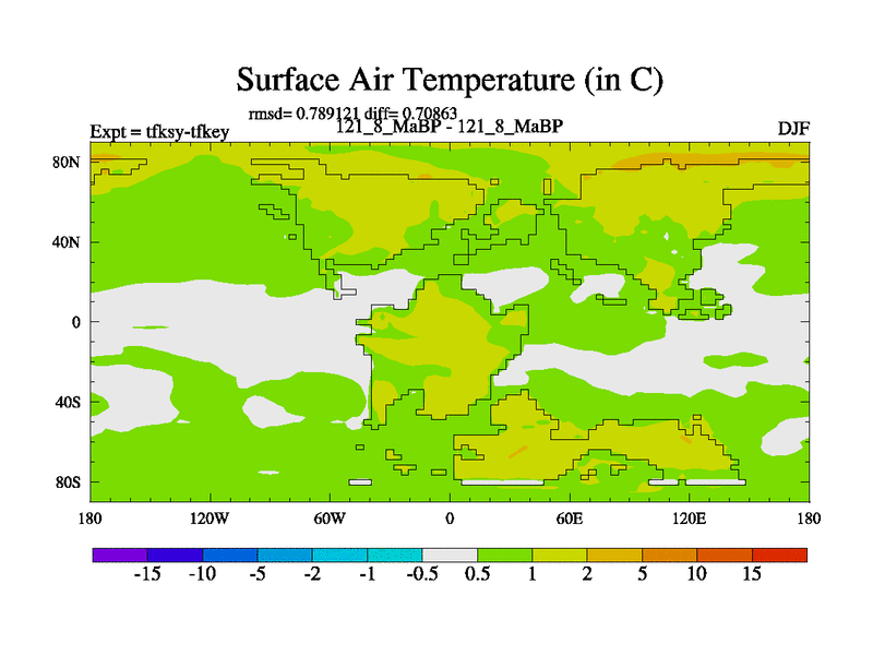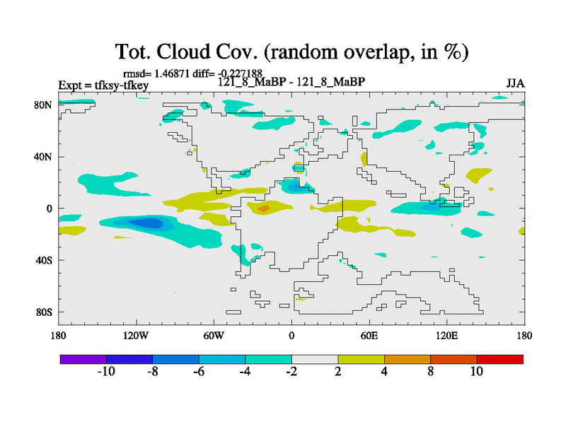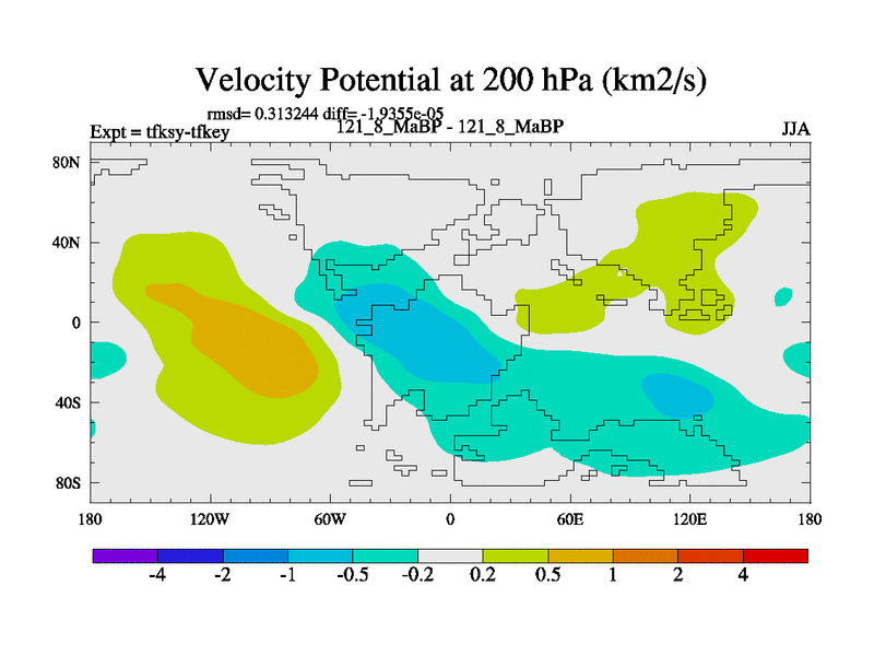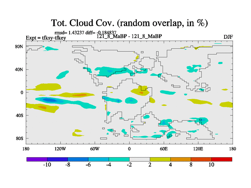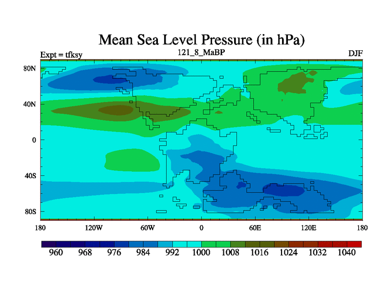 This is the 121.8 Ma simulation using the Scotese palaeogeographies and revised CCN etc. This version has islands and smoothing and desert albedo included. Tuned CO2 to give Scotese temperatures. Started from end of tfkey.