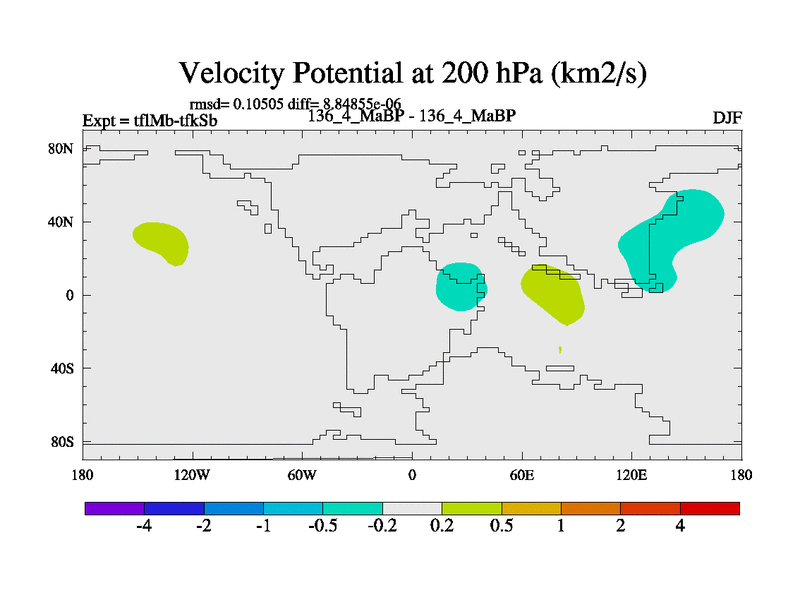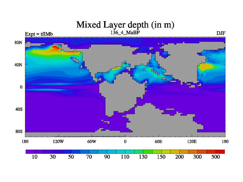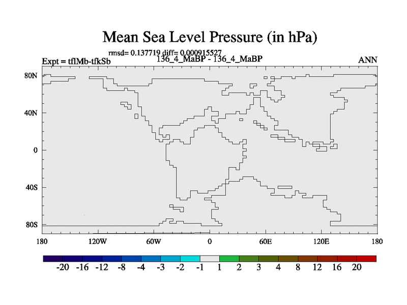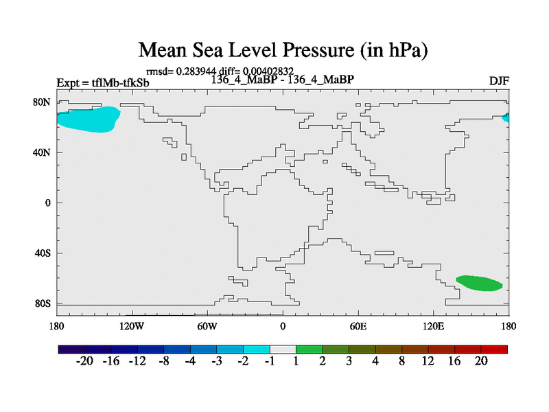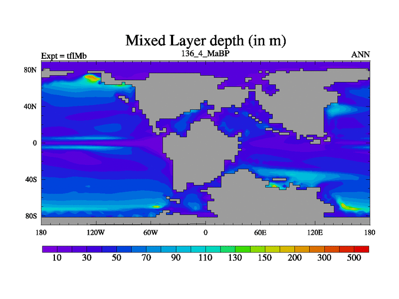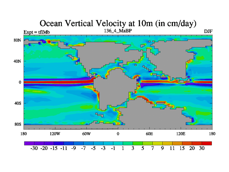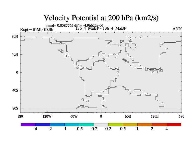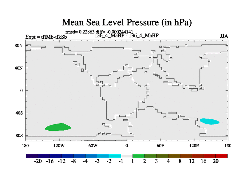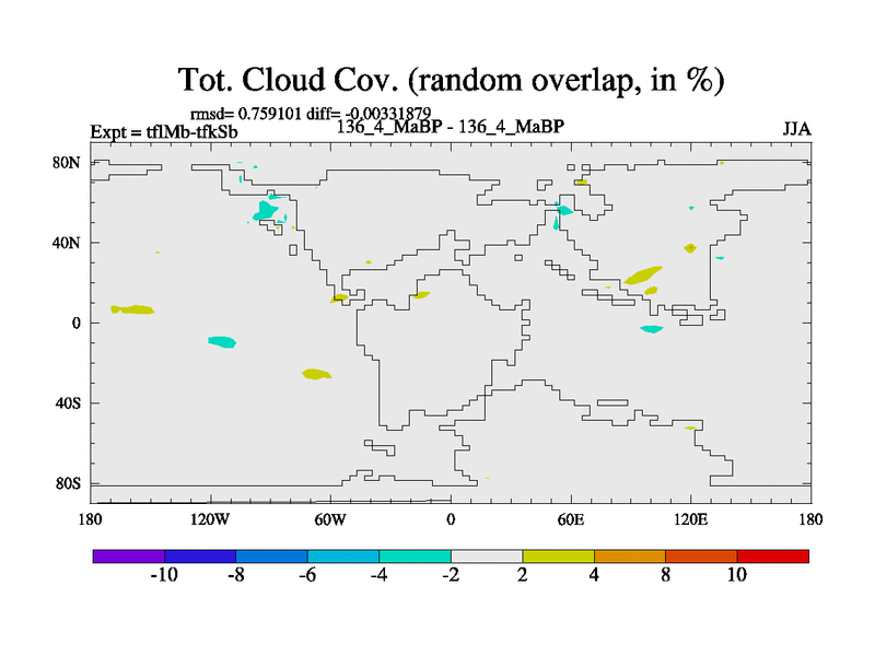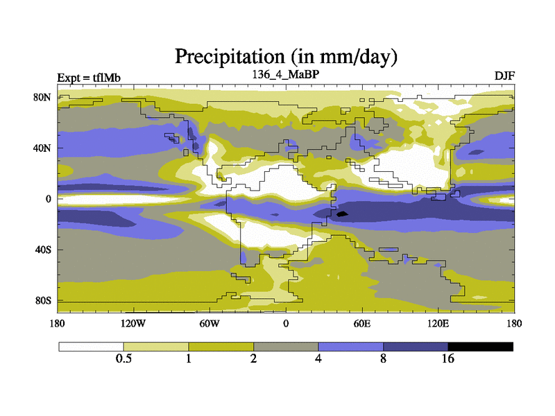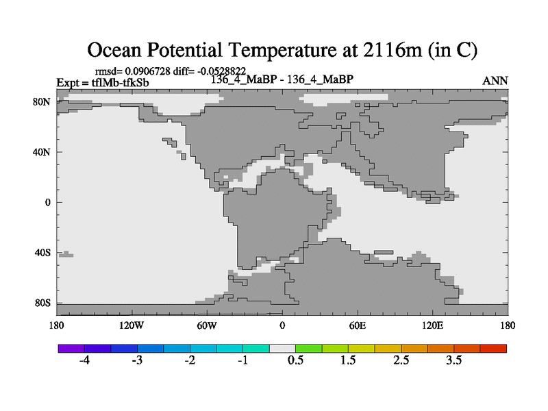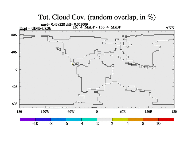 This is the 136.4 Ma simulation using the Scotese palaeogeographies and revised CCN etc. This version has islands and smoothing and desert albedo included. Tuned CO2 to give Scotese temperatures. Started from end of tfkSb. With JEDI output.