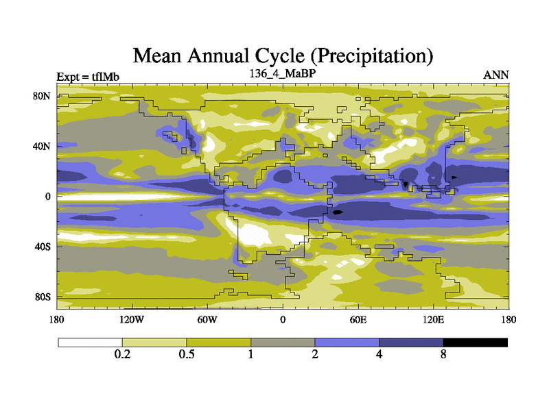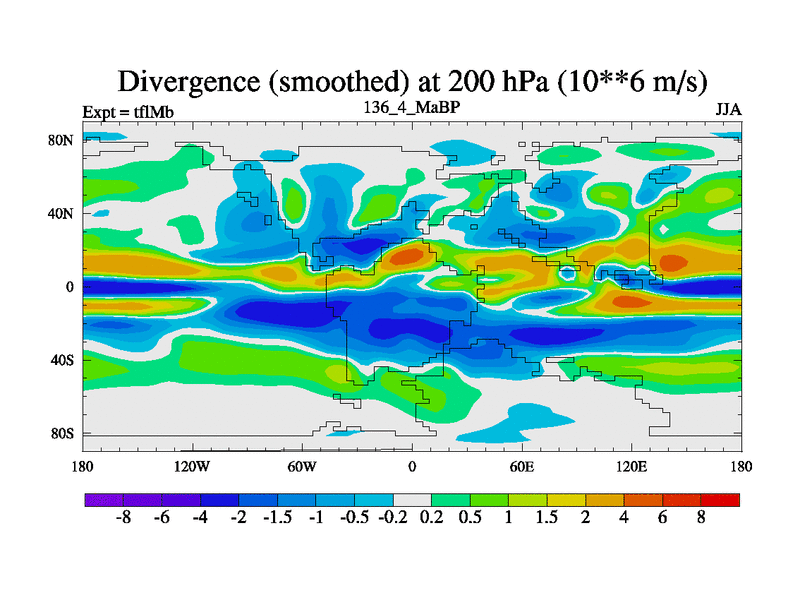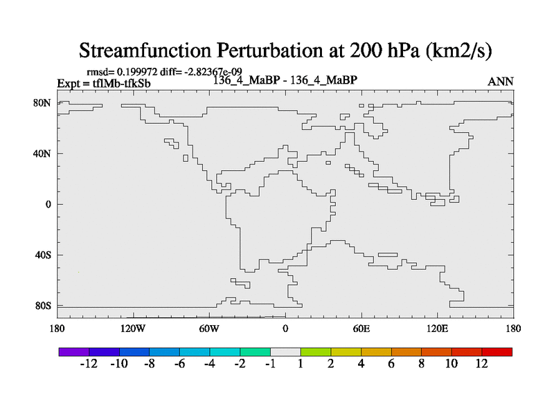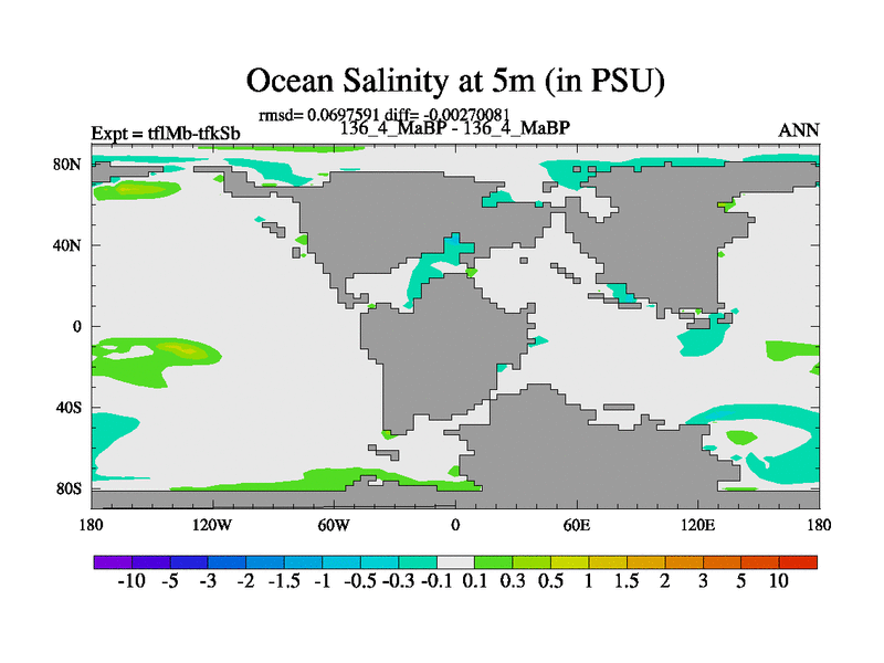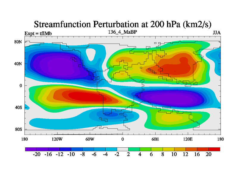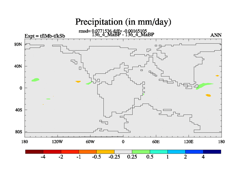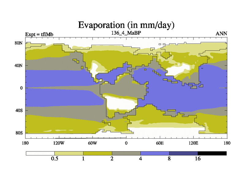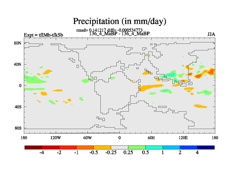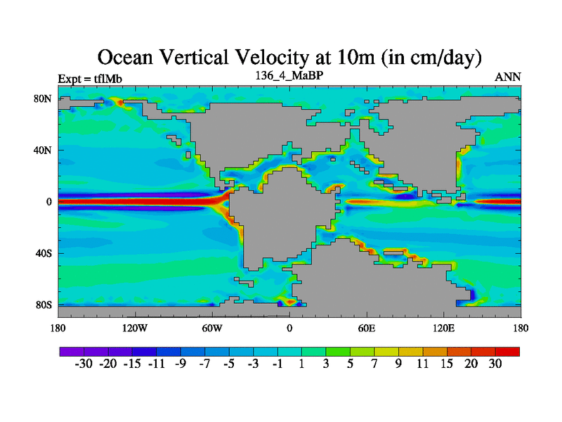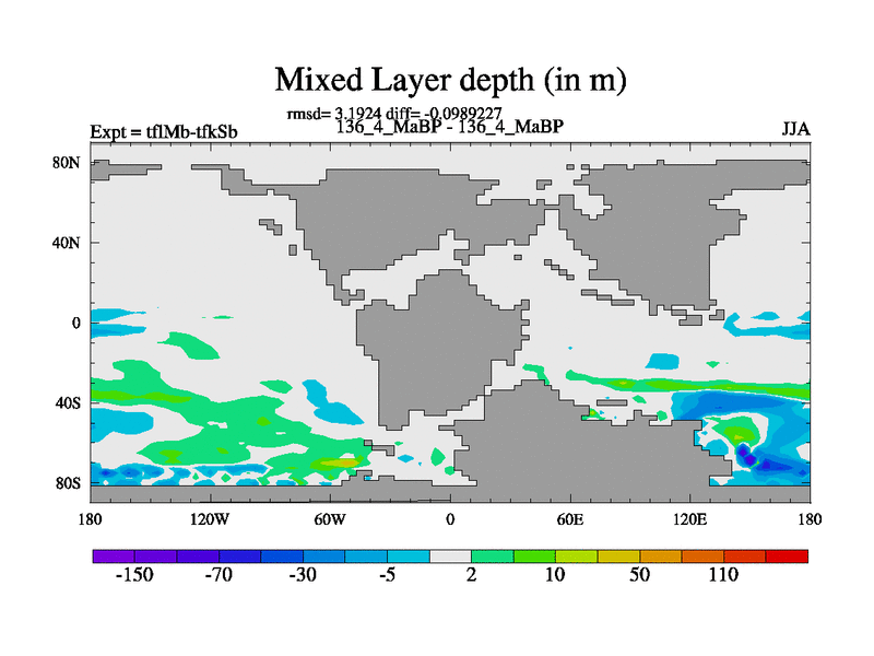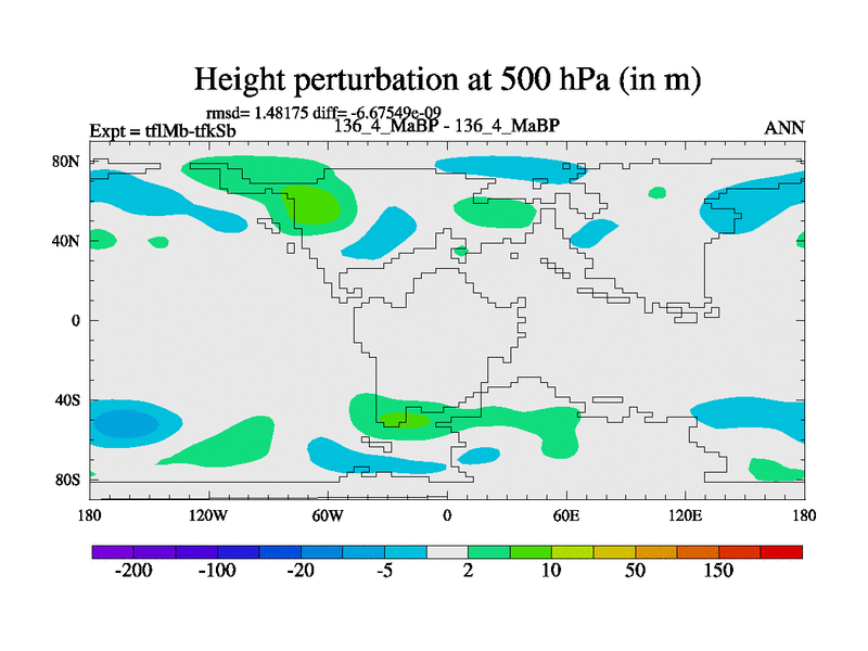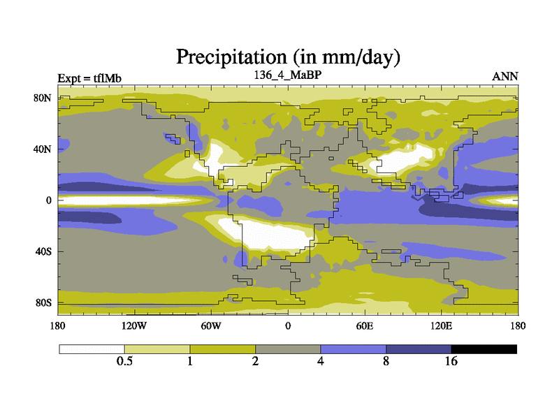 This is the 136.4 Ma simulation using the Scotese palaeogeographies and revised CCN etc. This version has islands and smoothing and desert albedo included. Tuned CO2 to give Scotese temperatures. Started from end of tfkSb. With JEDI output.