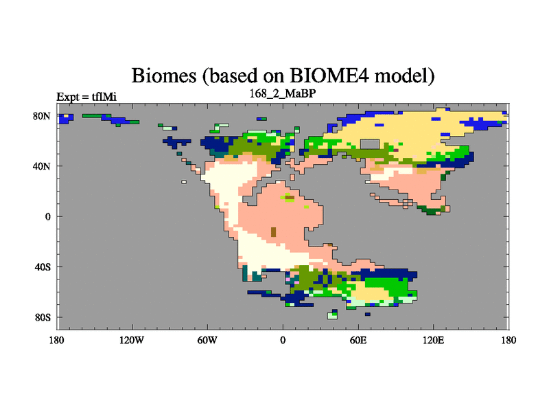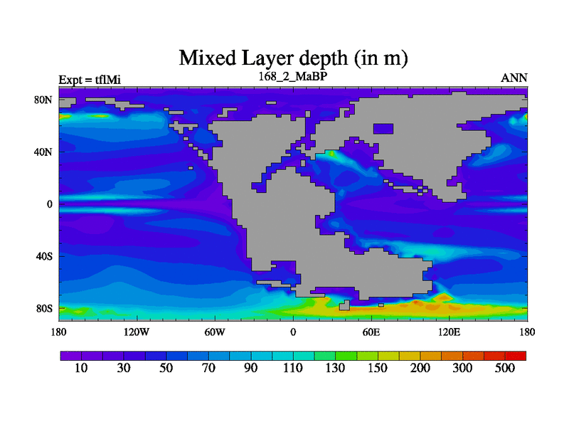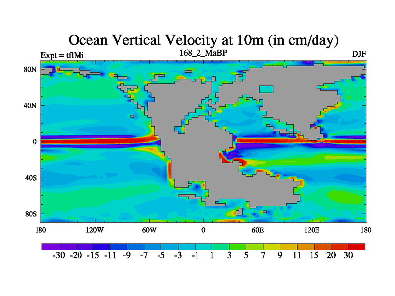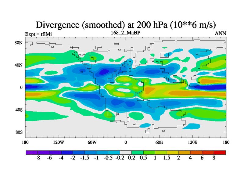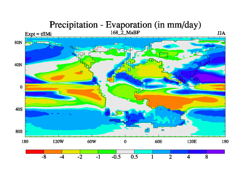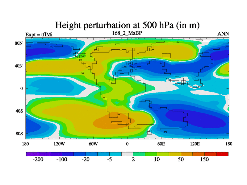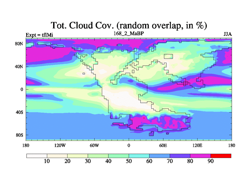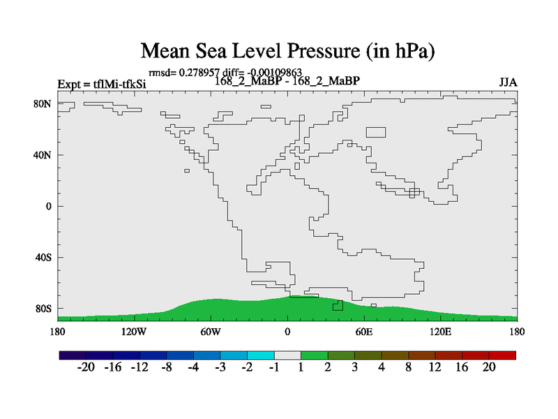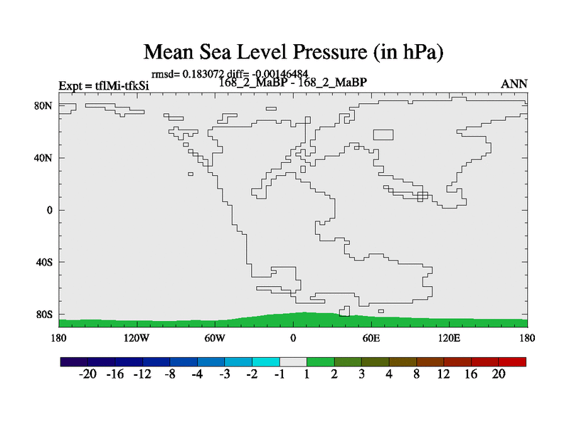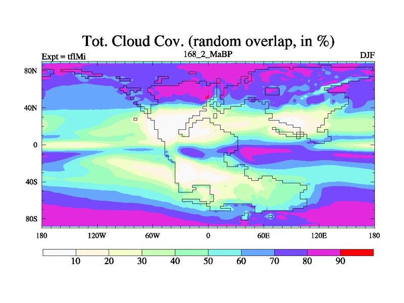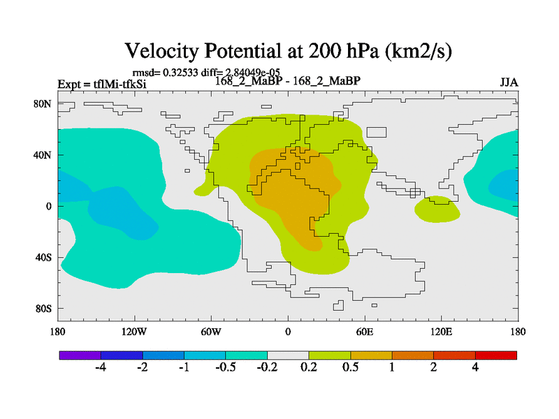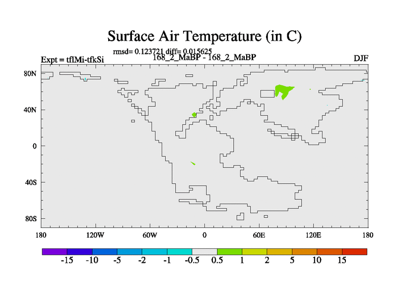 This is the 168.2 Ma simulation using the Scotese palaeogeographies and revised CCN etc. This version has islands and smoothing and desert albedo included. Tuned CO2 to give Scotese temperatures. Started from end of tfkSi. With JEDI output.