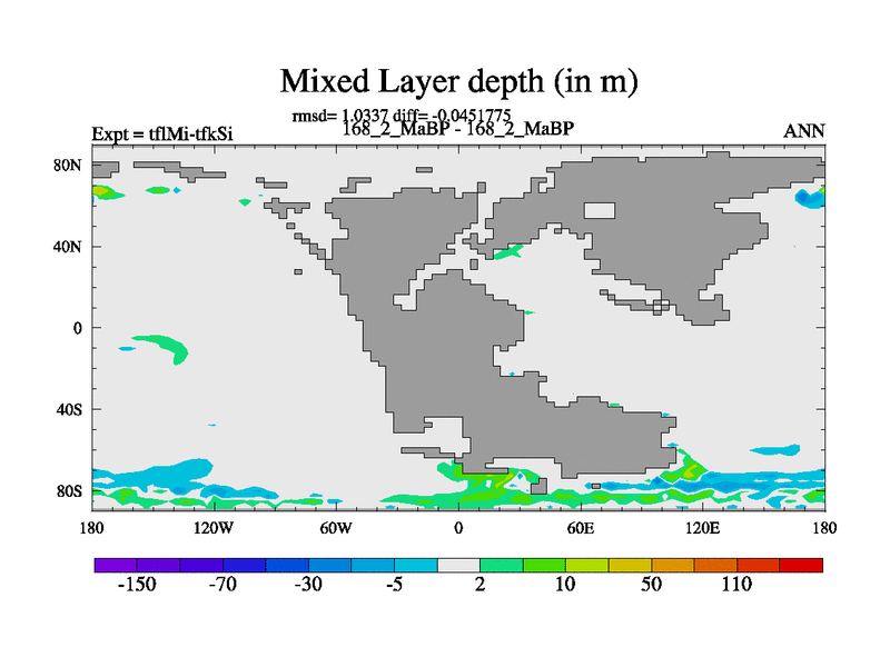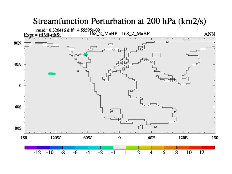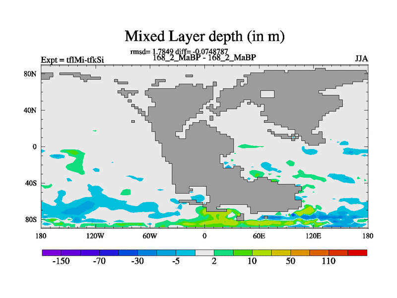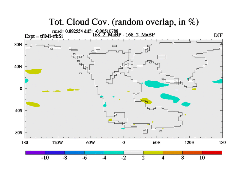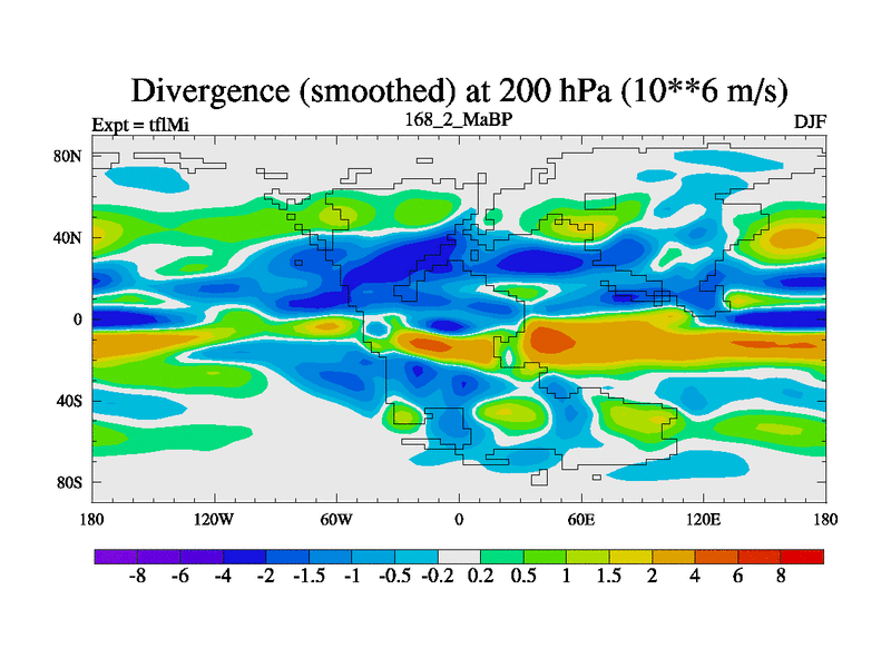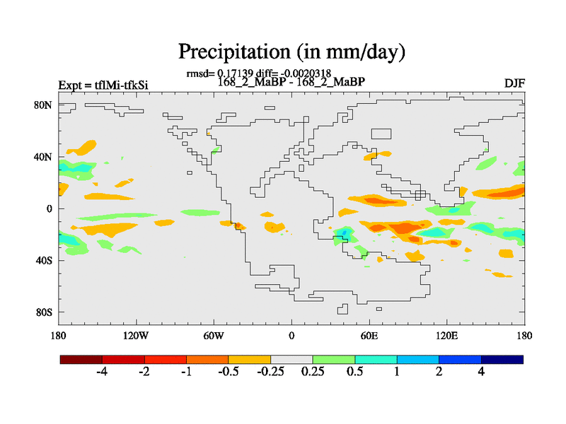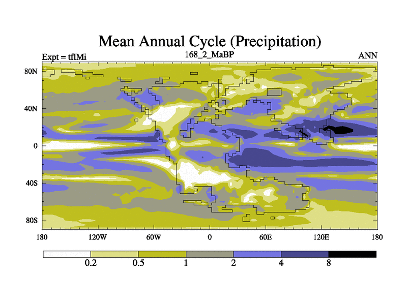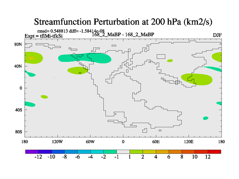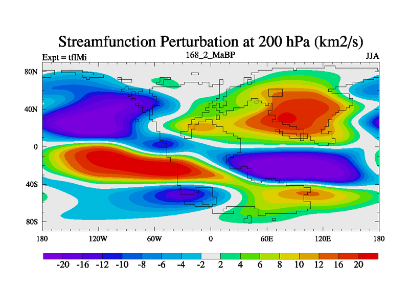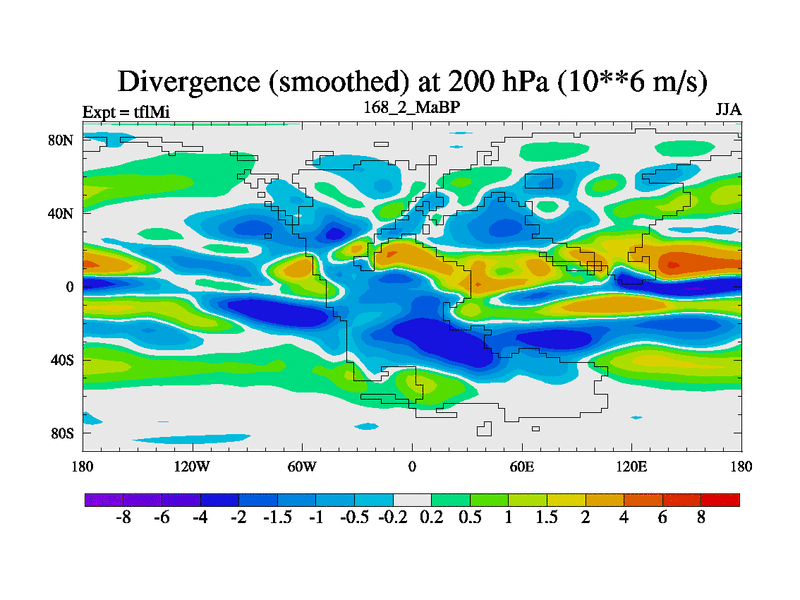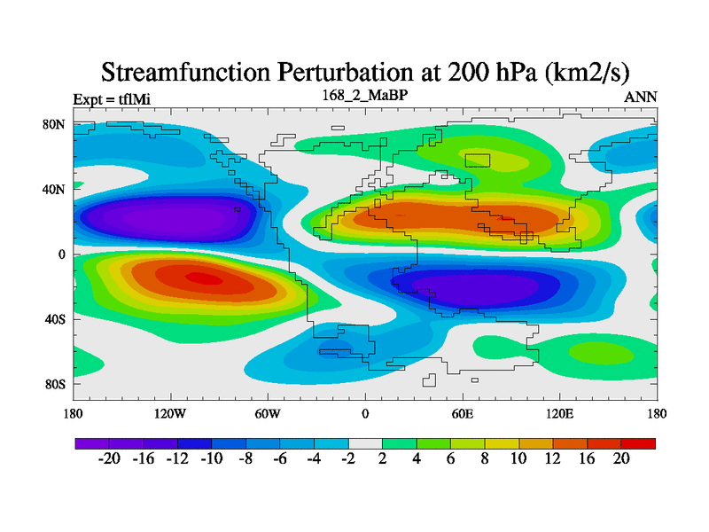This is the 168.2 Ma simulation using the Scotese palaeogeographies and revised CCN etc. This version has islands and smoothing and desert albedo included. Tuned CO2 to give Scotese temperatures. Started from end of tfkSi. With JEDI output.