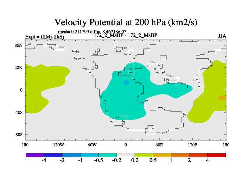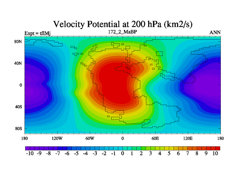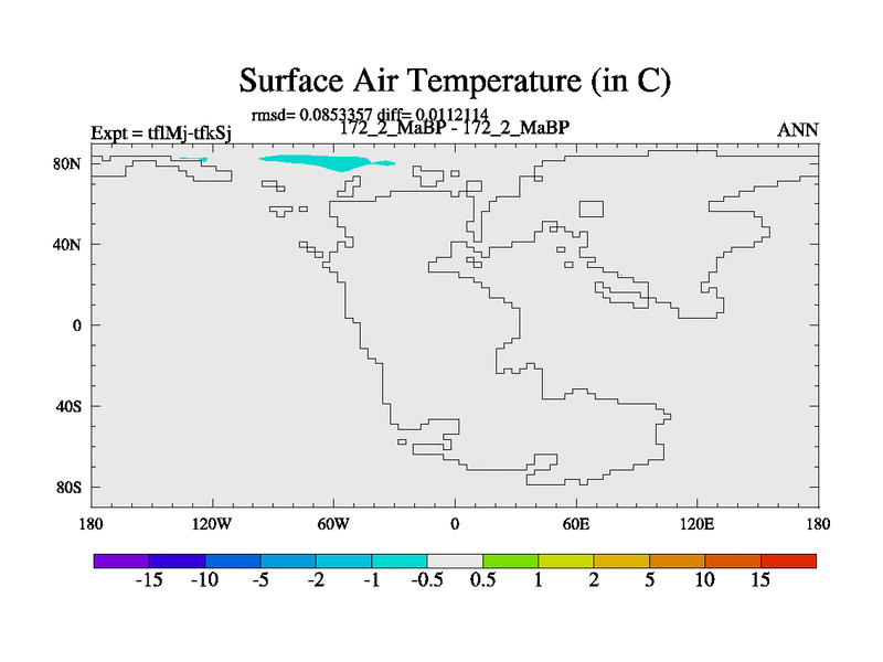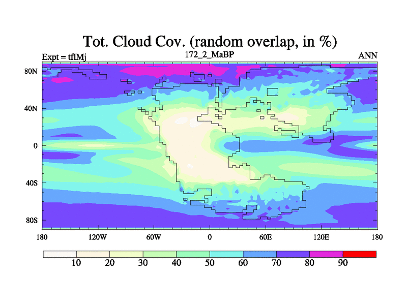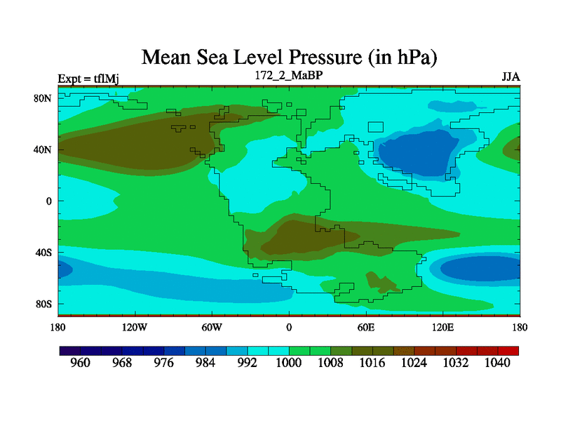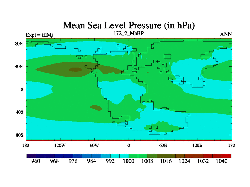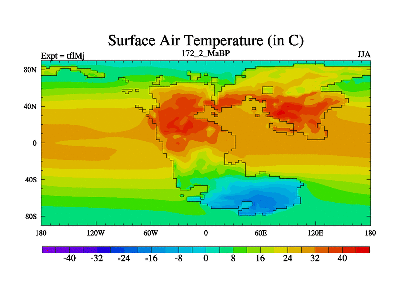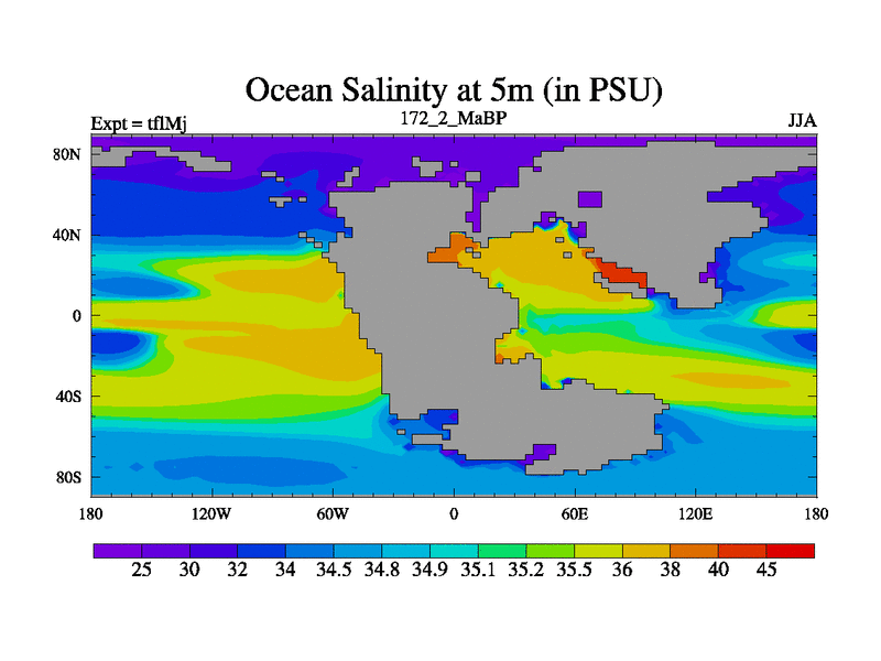 This is the 172.2 Ma simulation using the Scotese palaeogeographies and revised CCN etc. This version has islands and smoothing and desert albedo included. Tuned CO2 to give Scotese temperatures. Started from end of tfkSj. With JEDI output.
