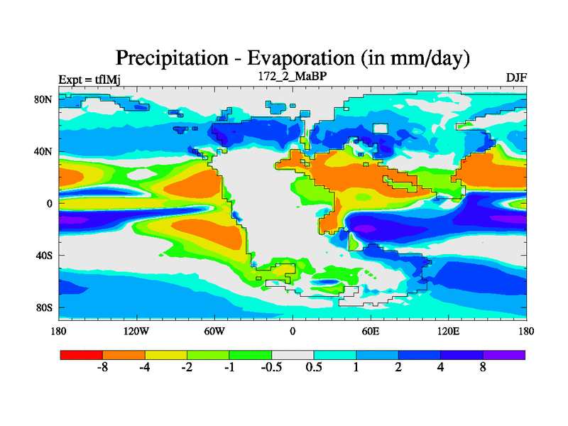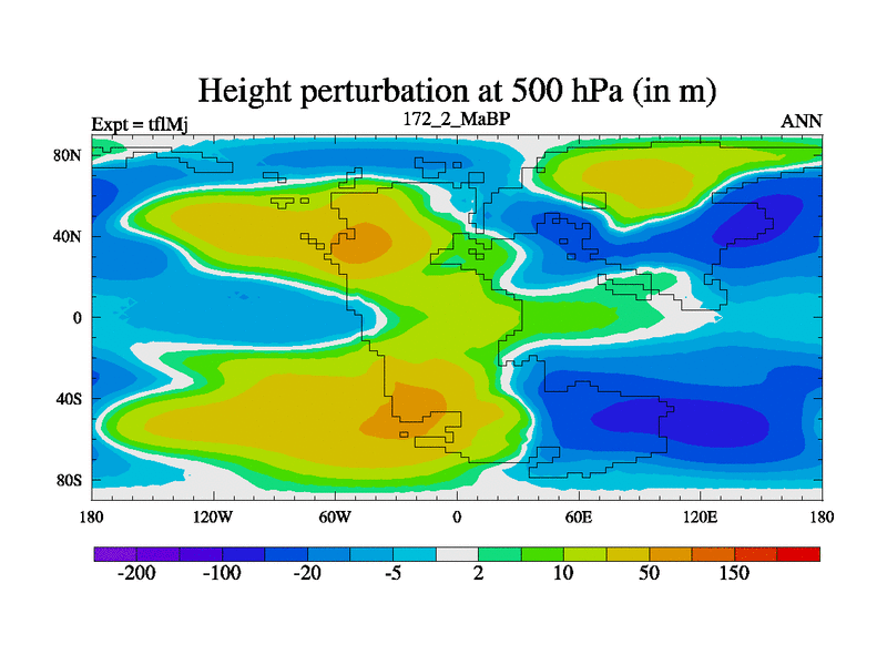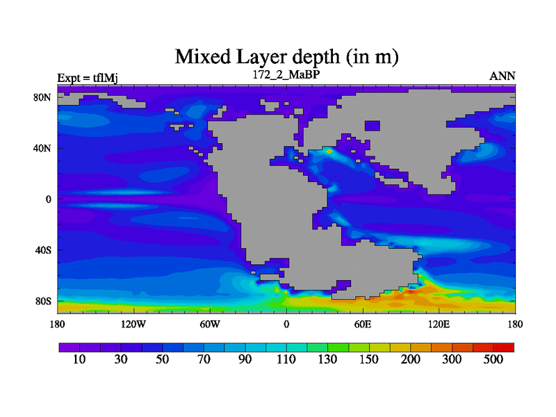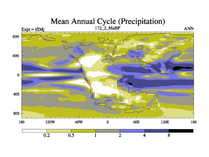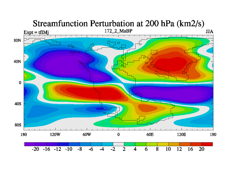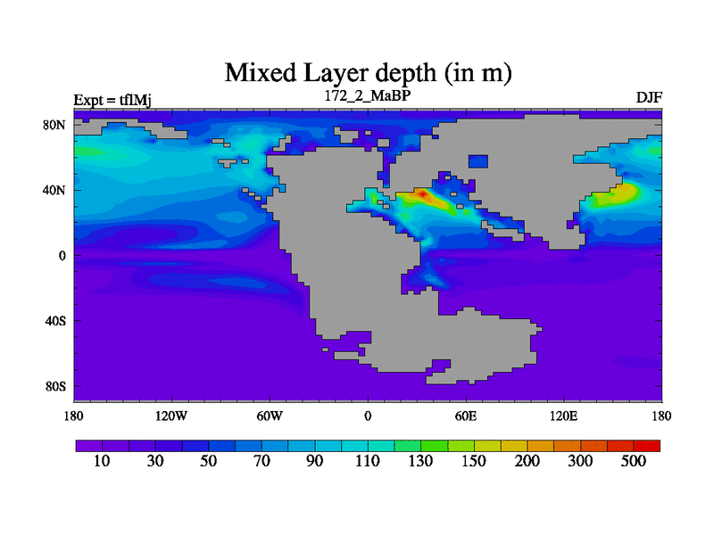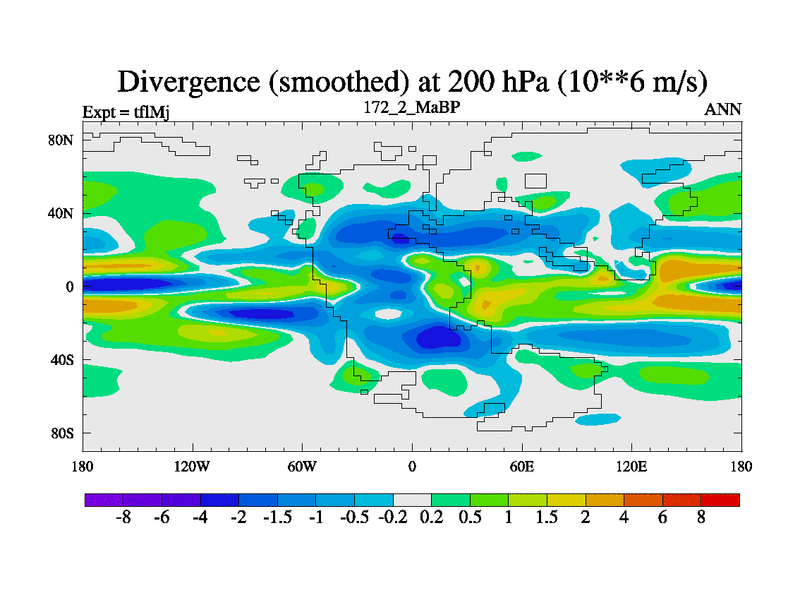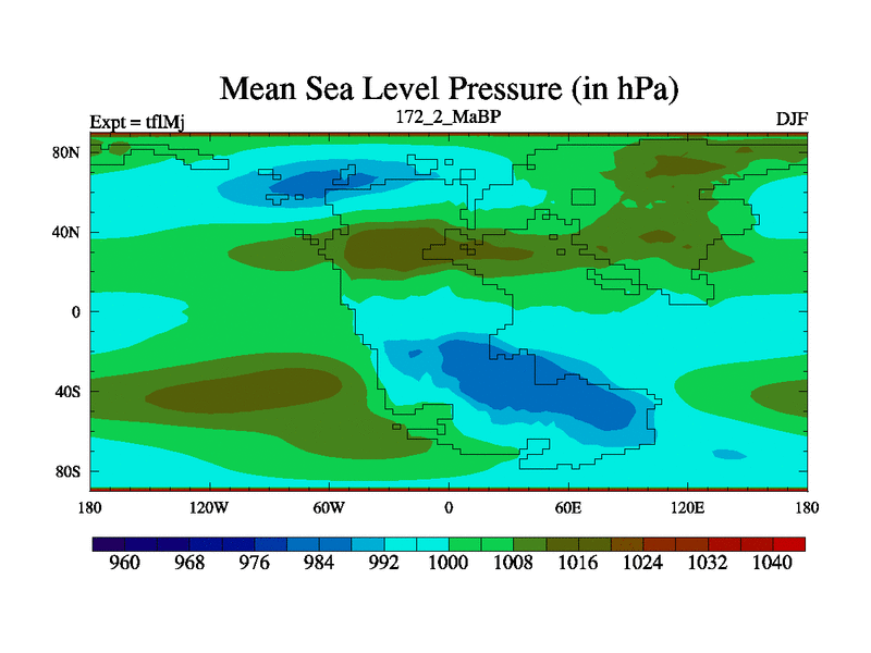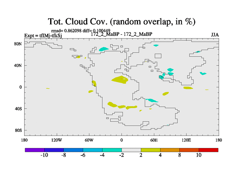 This is the 172.2 Ma simulation using the Scotese palaeogeographies and revised CCN etc. This version has islands and smoothing and desert albedo included. Tuned CO2 to give Scotese temperatures. Started from end of tfkSj. With JEDI output.