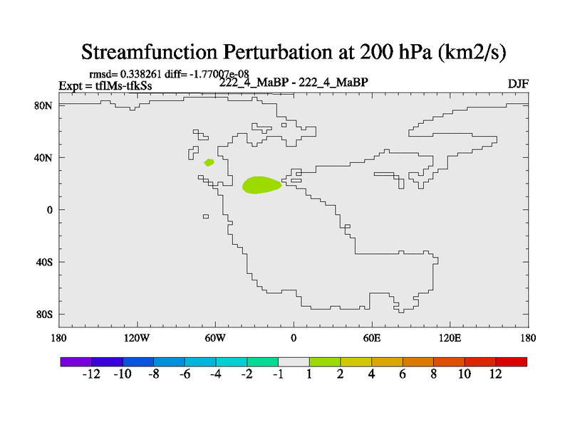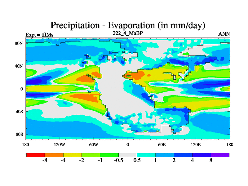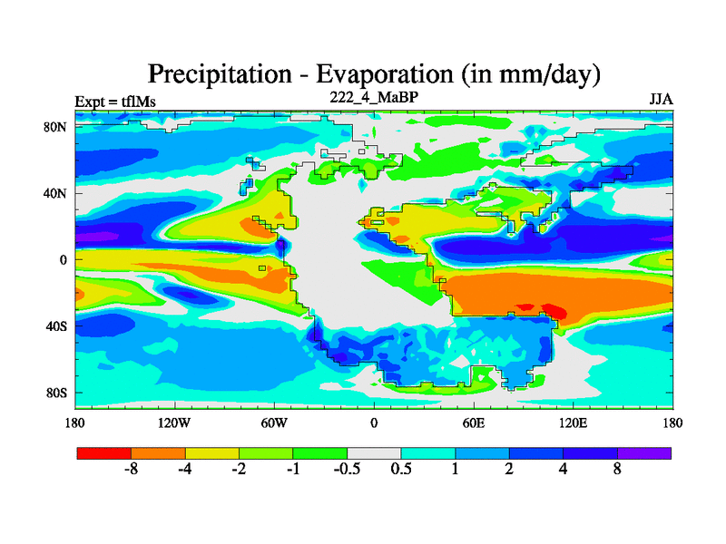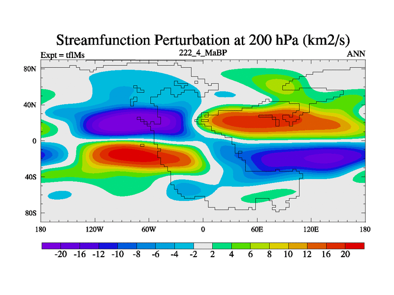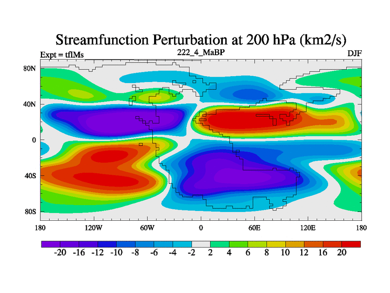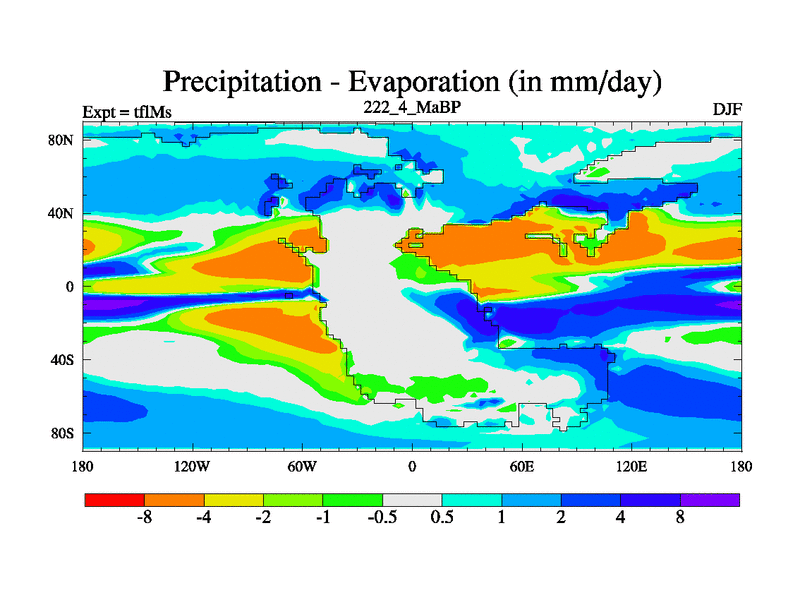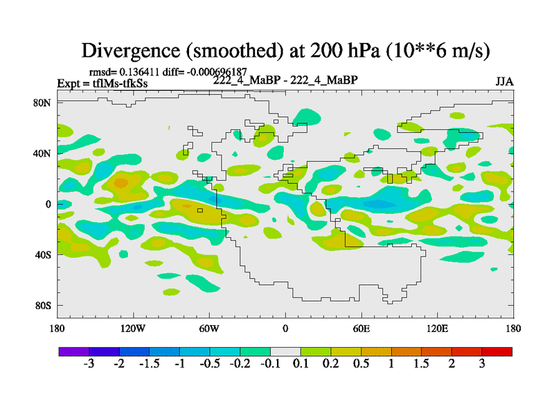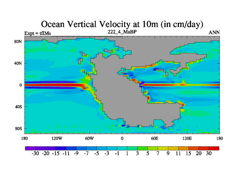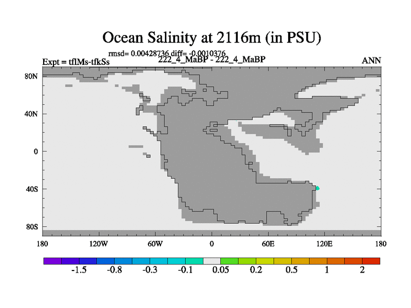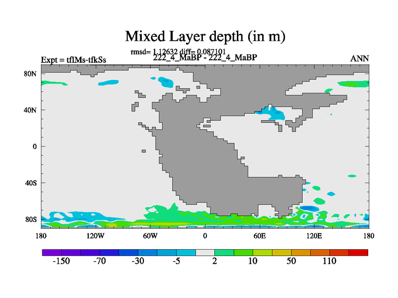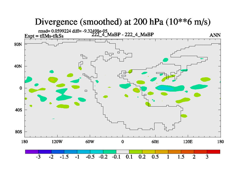This is the 222.4 Ma simulation using the Scotese palaeogeographies and revised CCN etc. This version has islands and smoothing and desert albedo included. Tuned CO2 to give Scotese temperatures. Started from end of tfkSs. With JEDI output.
