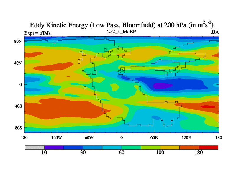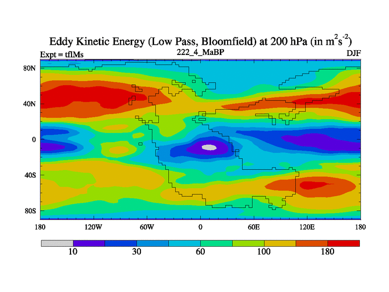 Low Pass Eddy Kinetic Energy at 200 hPa