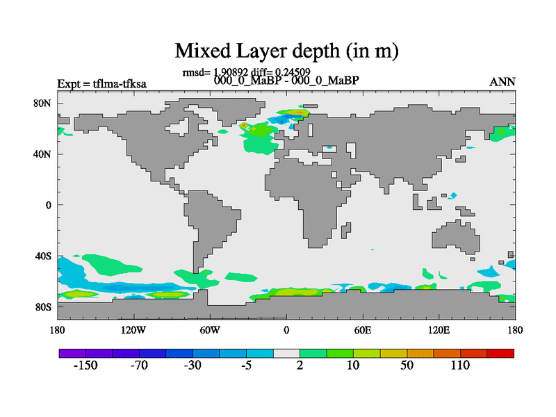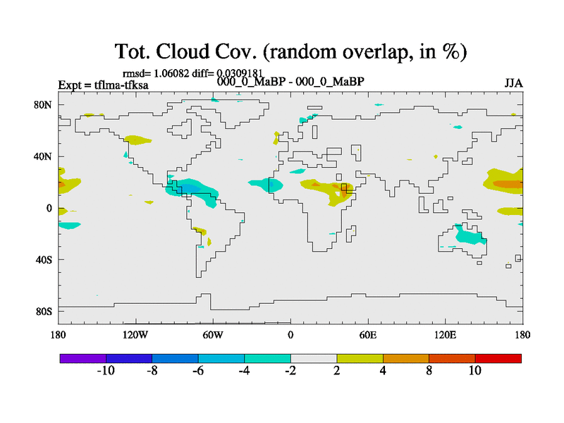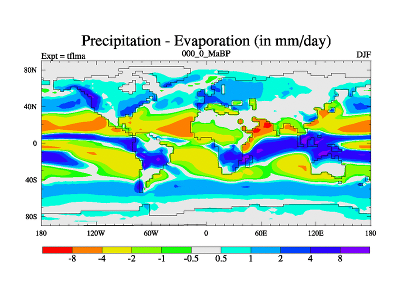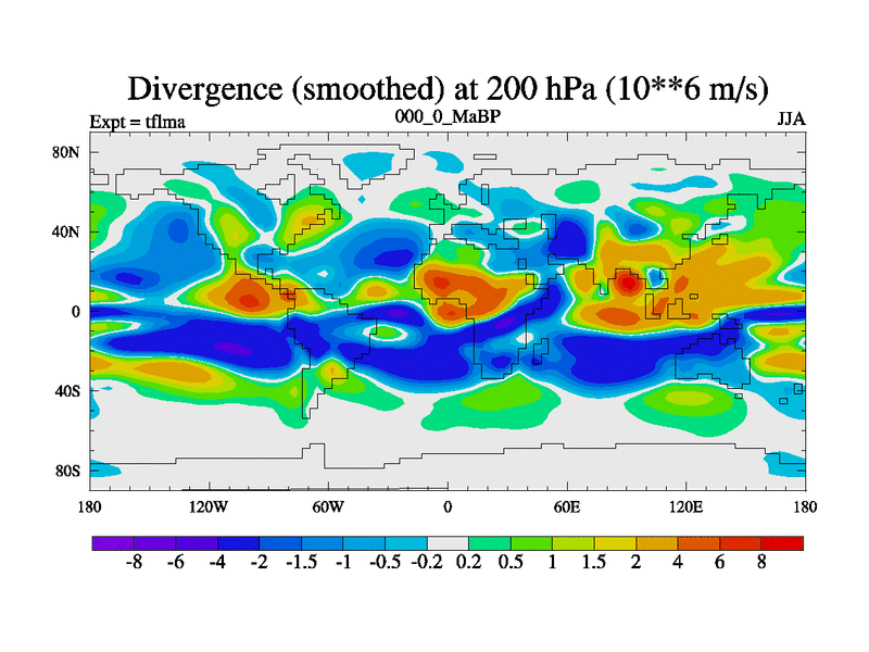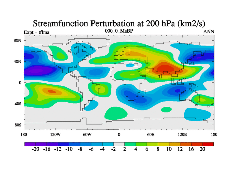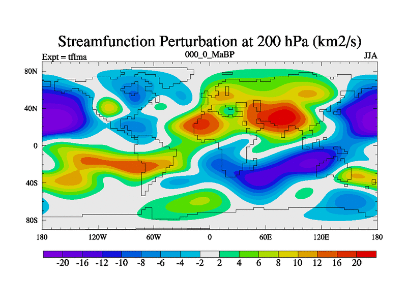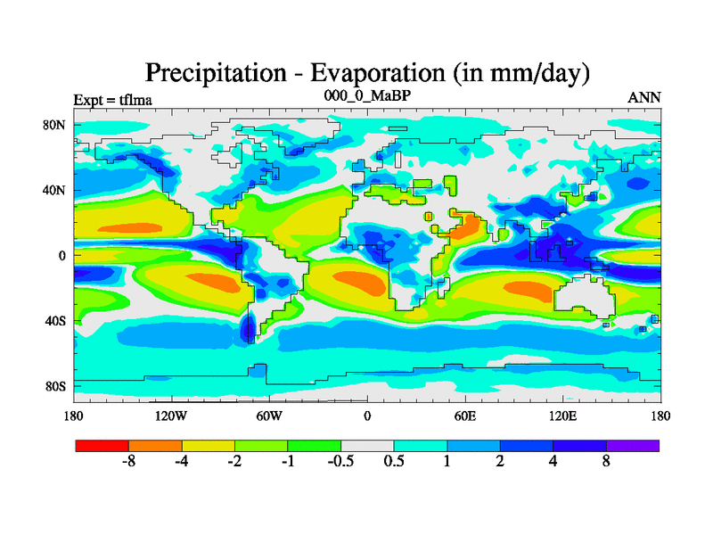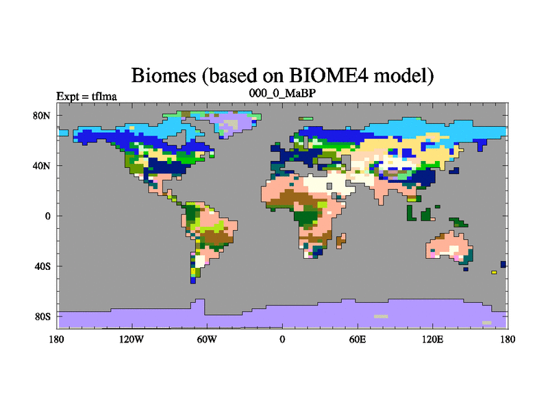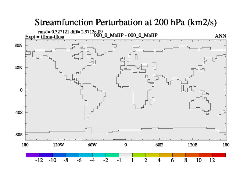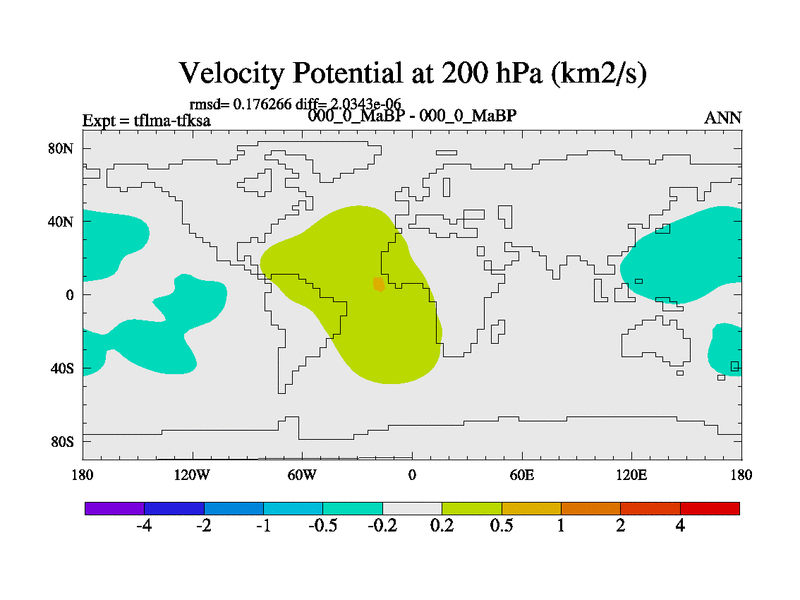 This is the 0.0 Ma simulation using the Scotese palaeogeographies and revised CCN etc. This version has islands and smoothing and desert albedo included. Tuned CO2 to give Scotese temperatures. Started from end of tfksa. With JEDI output.