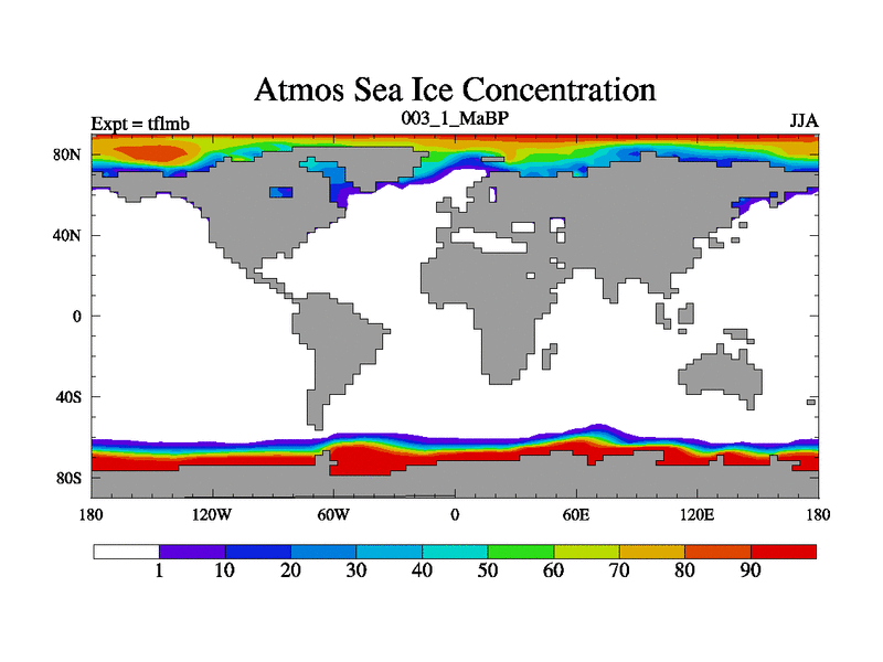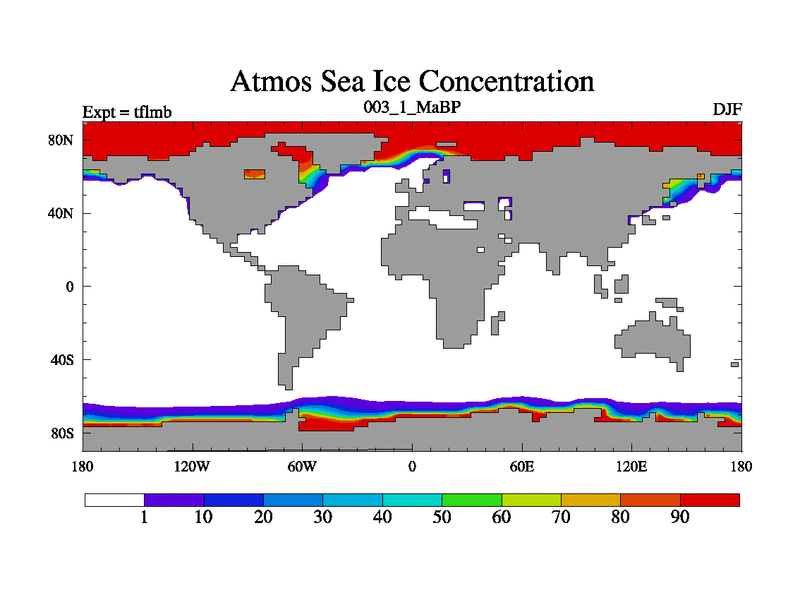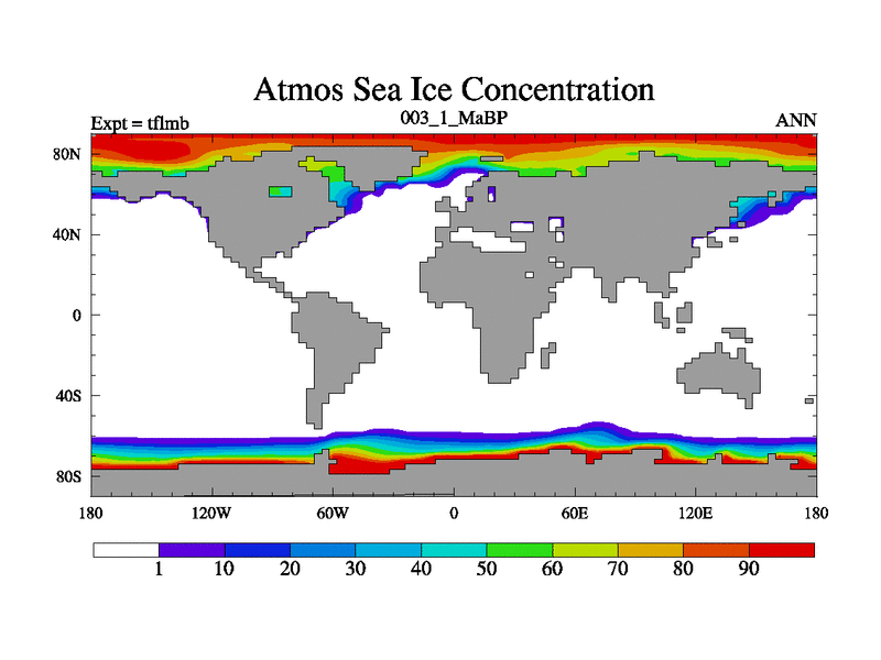This is the 3.1 Ma simulation using the Scotese palaeogeographies and revised CCN etc. This version has islands and smoothing and desert albedo included. Tuned CO2 to give Scotese temperatures. Started from end of tfksb. With JEDI output.