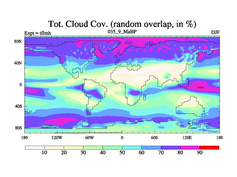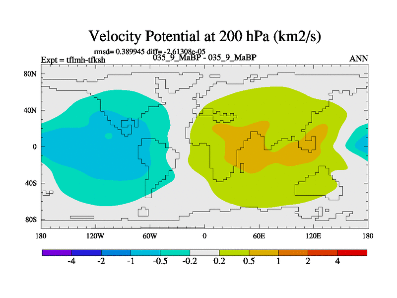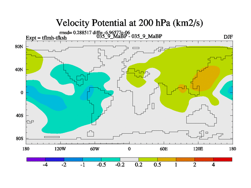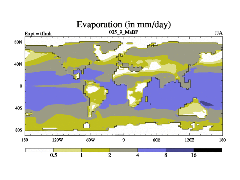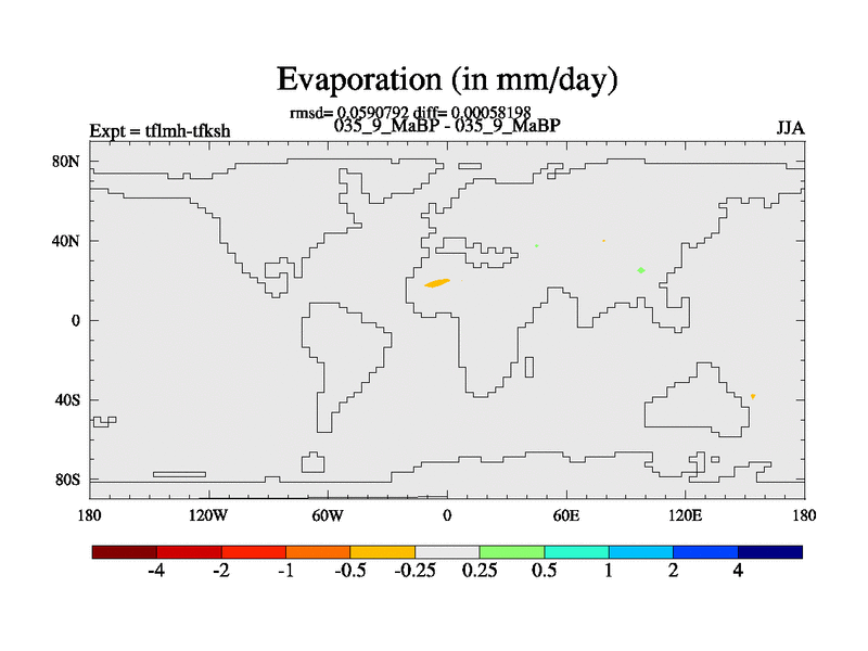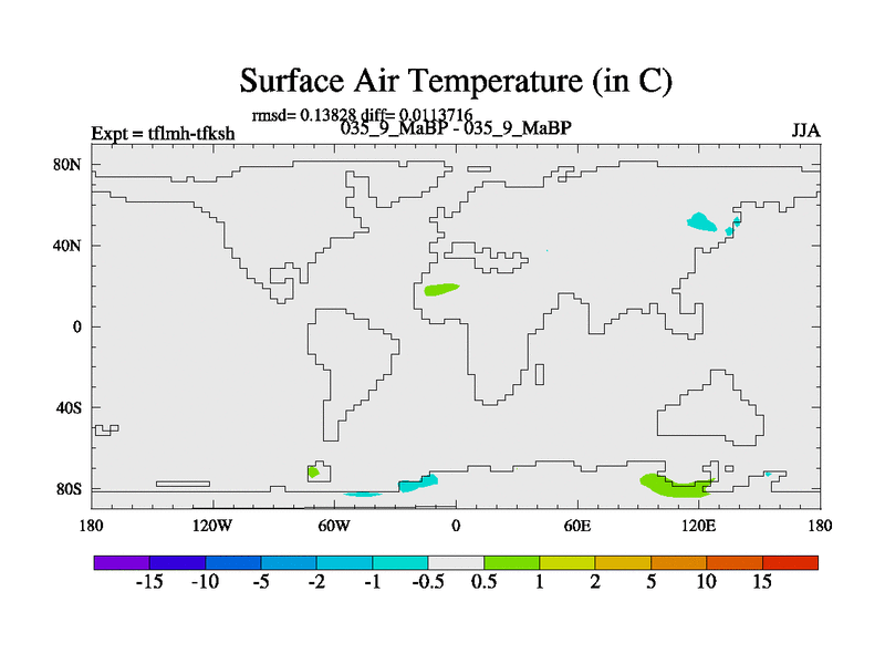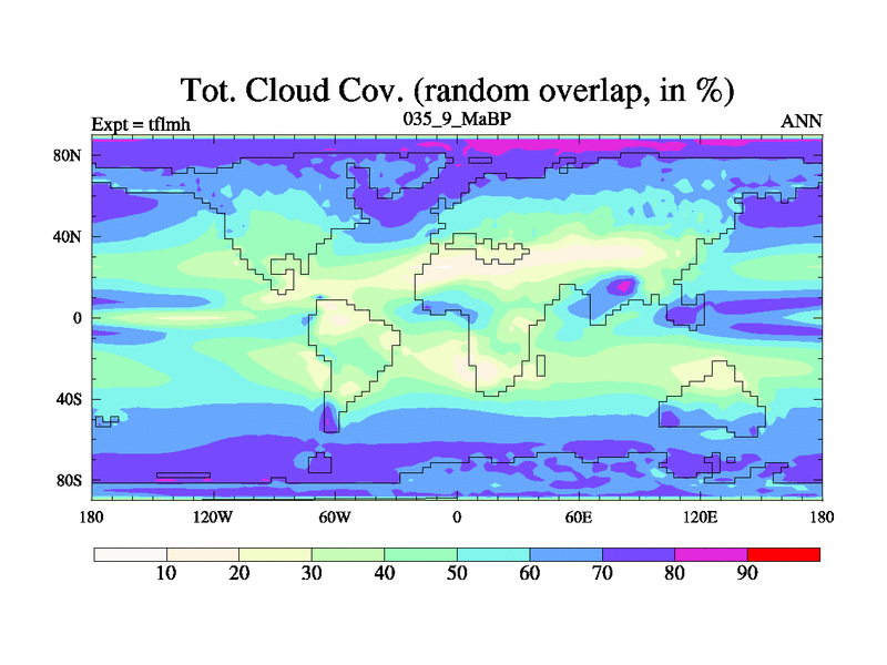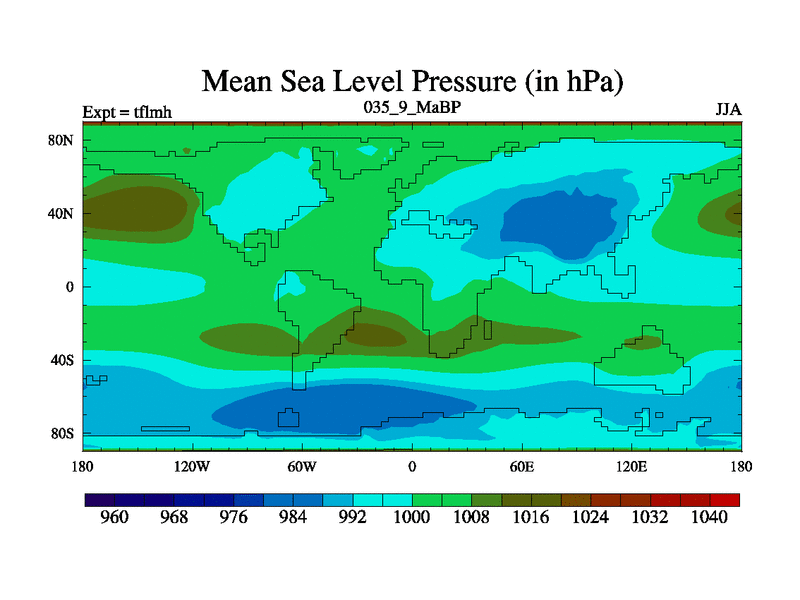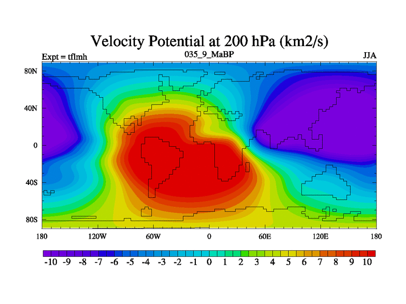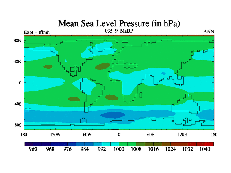 This is the 35.9 Ma simulation using the Scotese palaeogeographies and revised CCN etc. This version has islands and smoothing and desert albedo included. Tuned CO2 to give Scotese temperatures. Started from end of tfksh. With JEDI output.