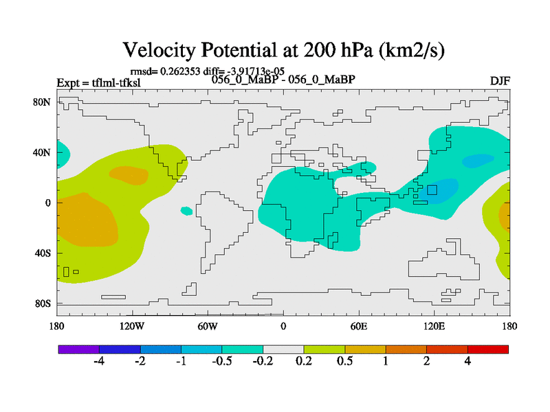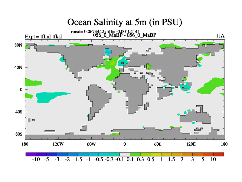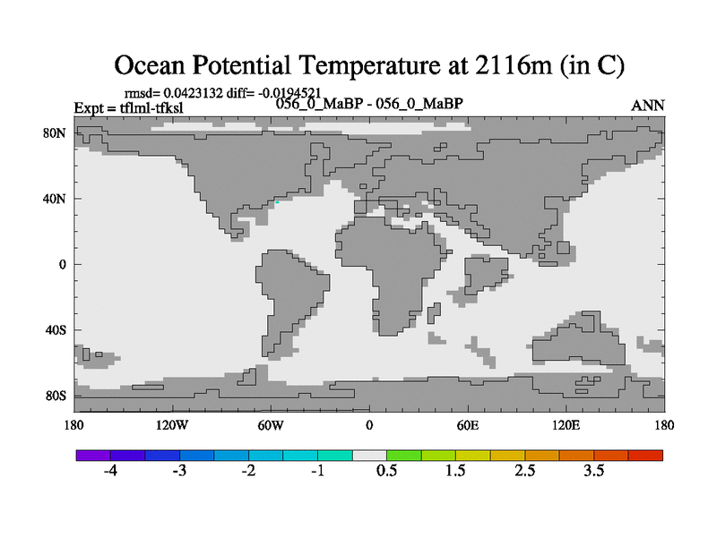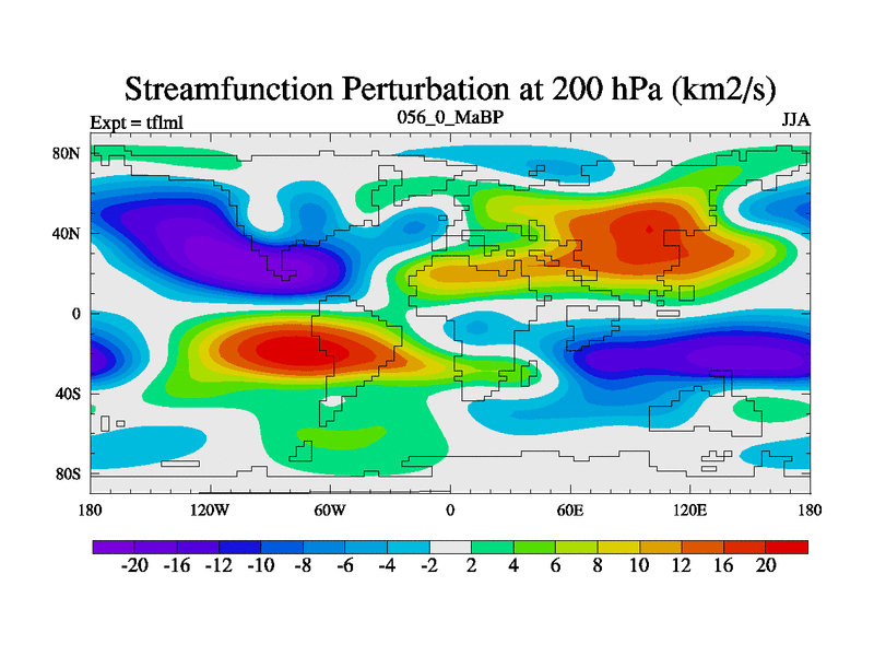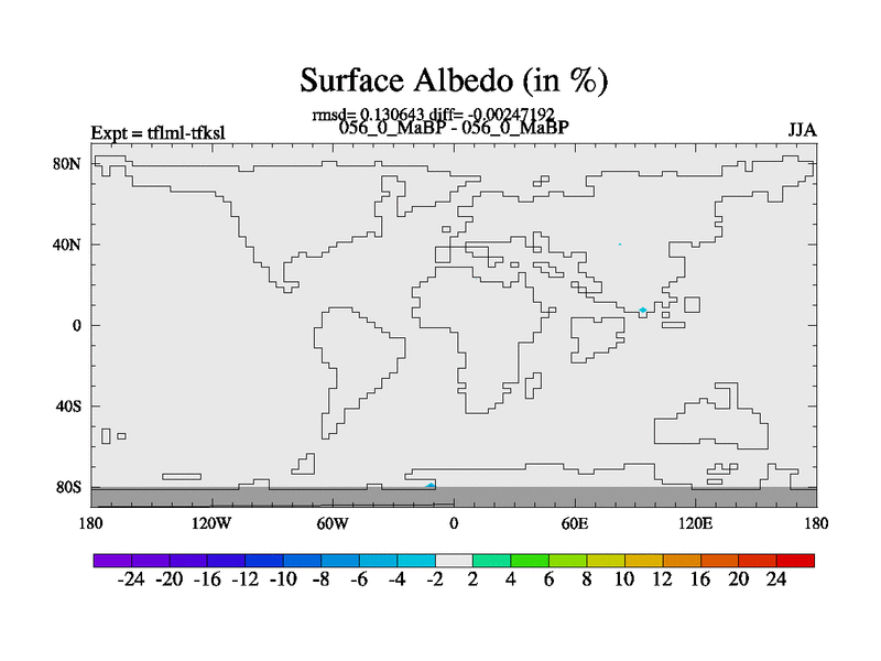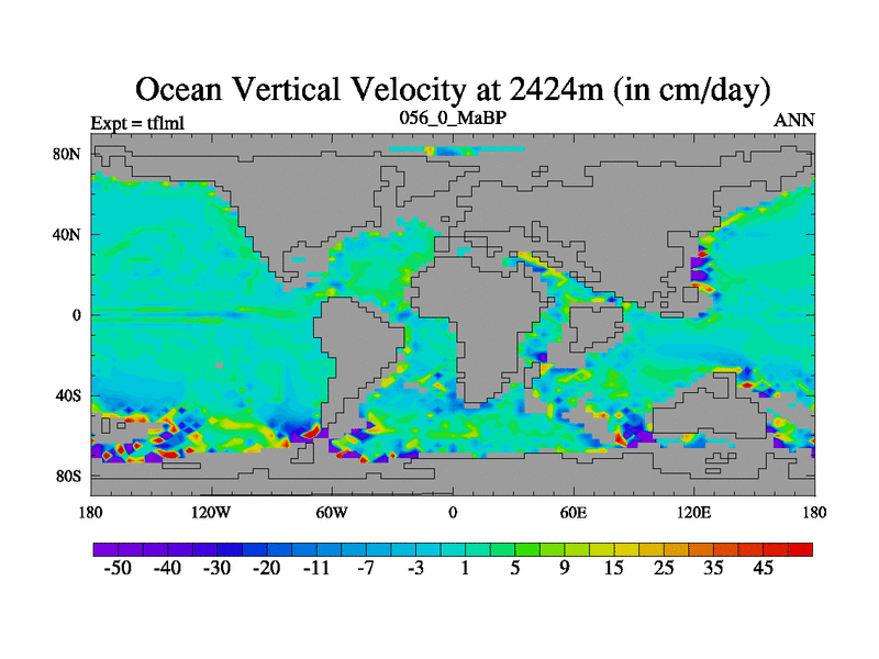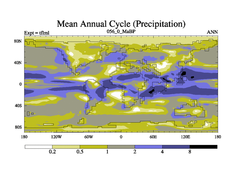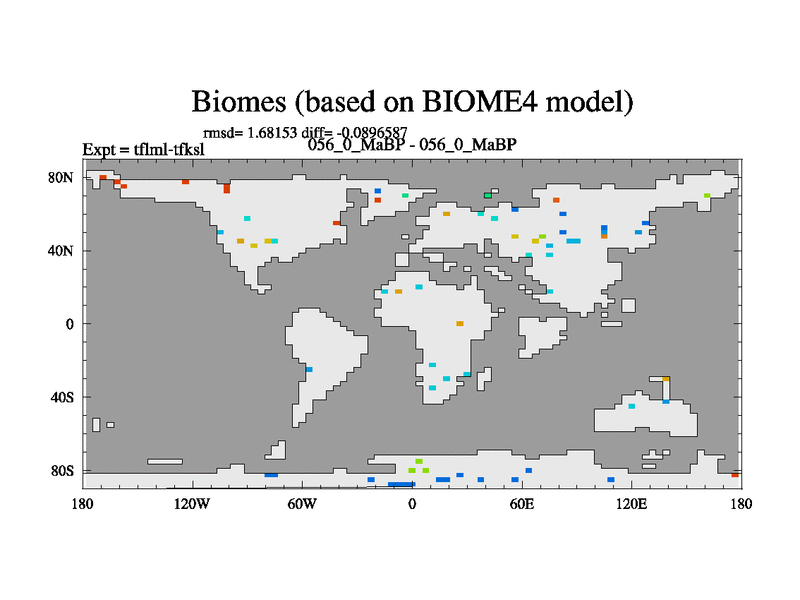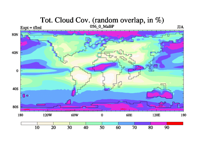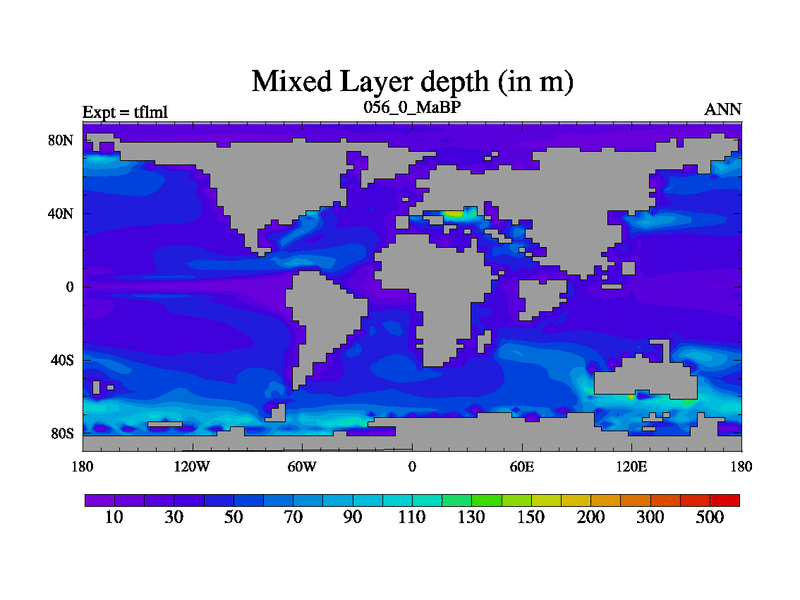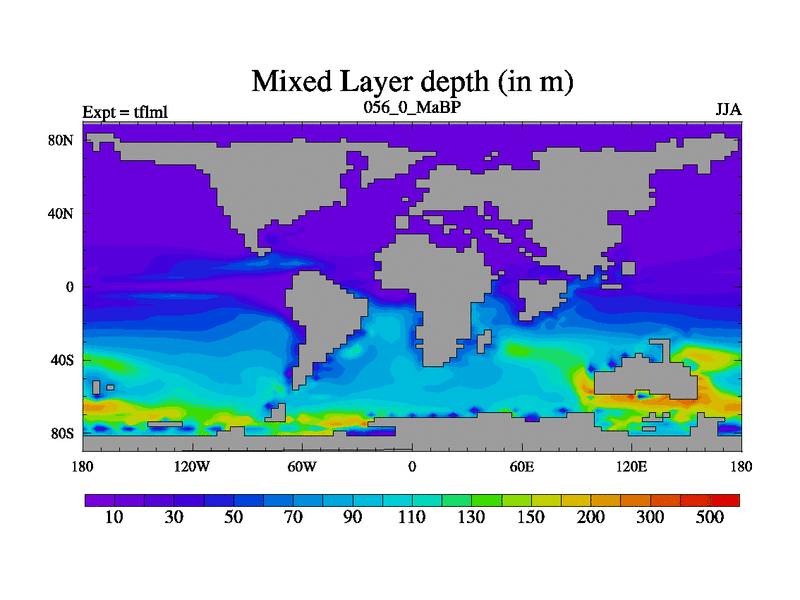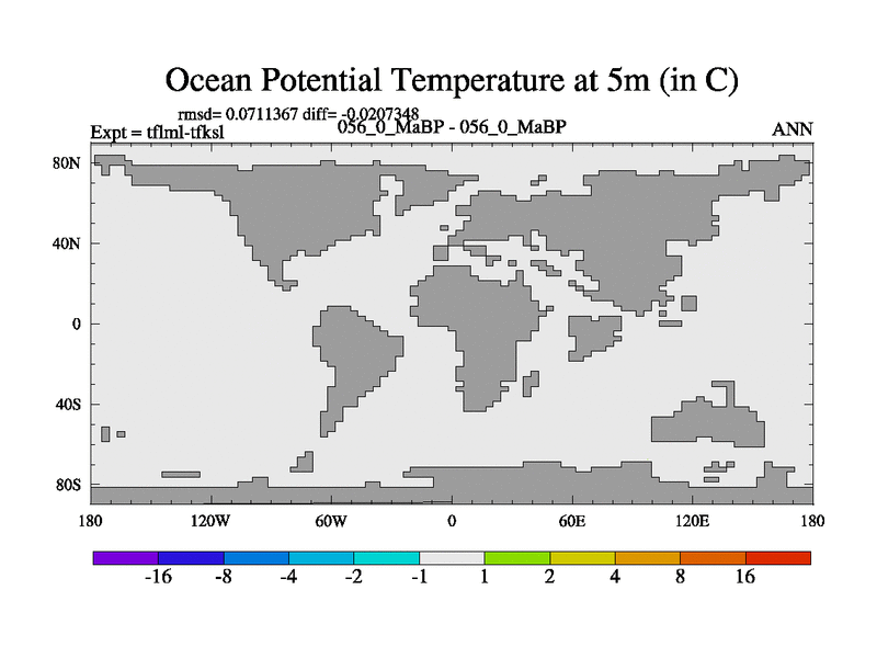 This is the 56.0 Ma simulation using the Scotese palaeogeographies and revised CCN etc. This version has islands and smoothing and desert albedo included. Tuned CO2 to give Scotese temperatures. Started from end of tfksl. With JEDI output.