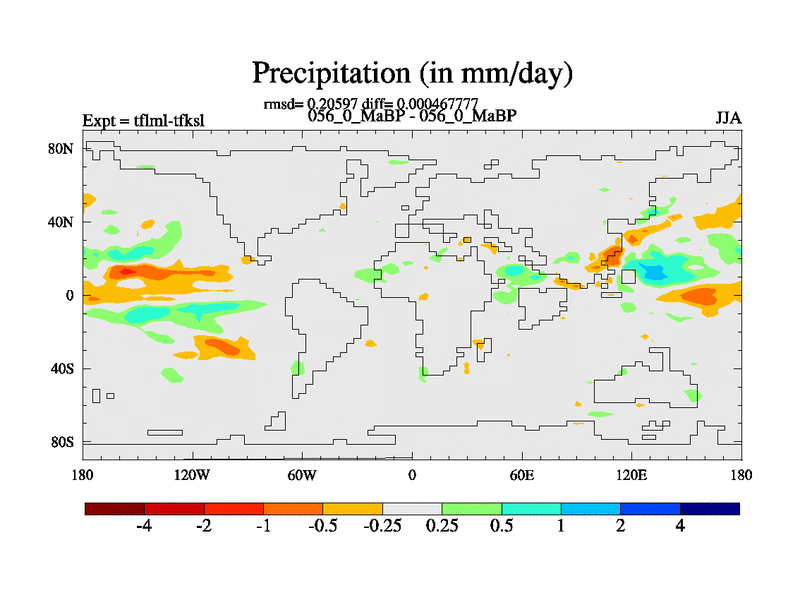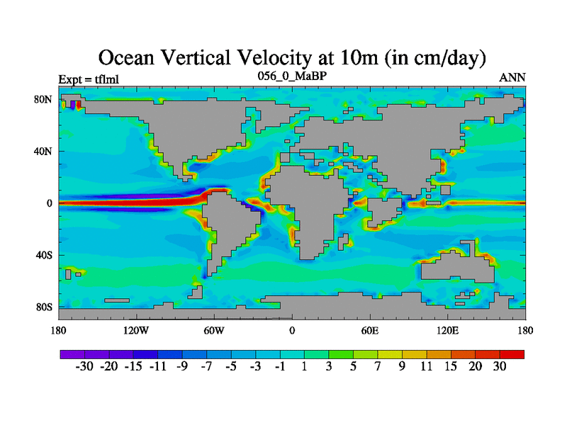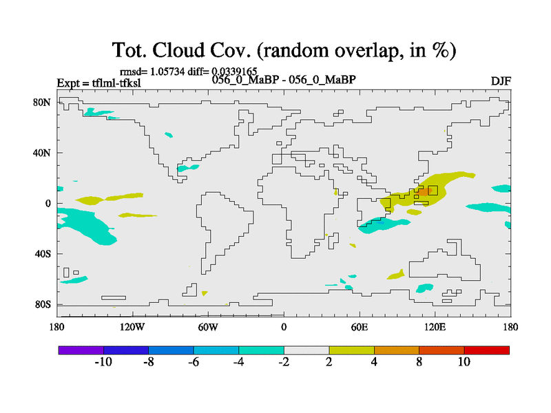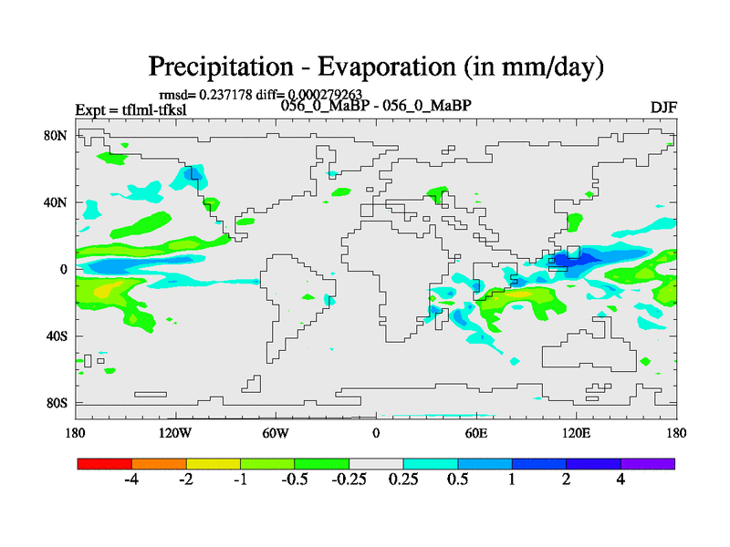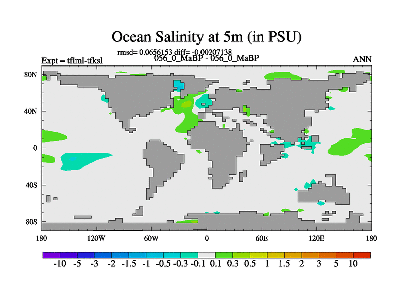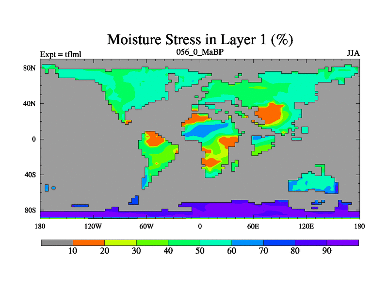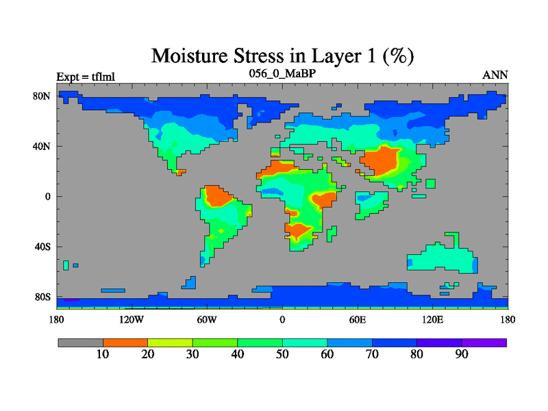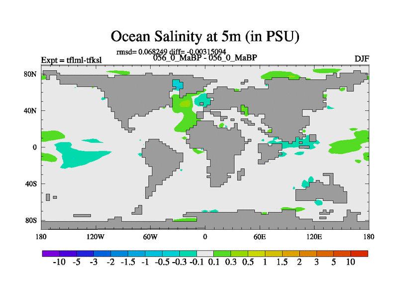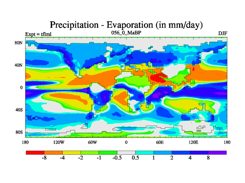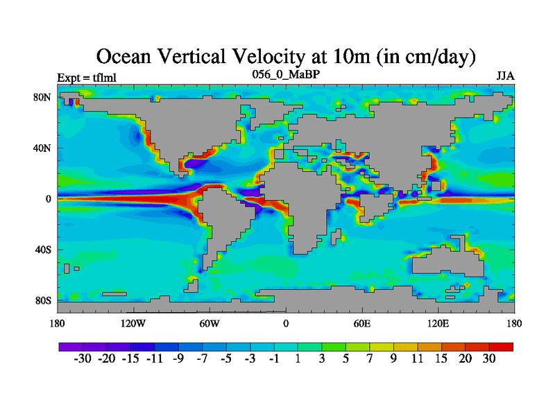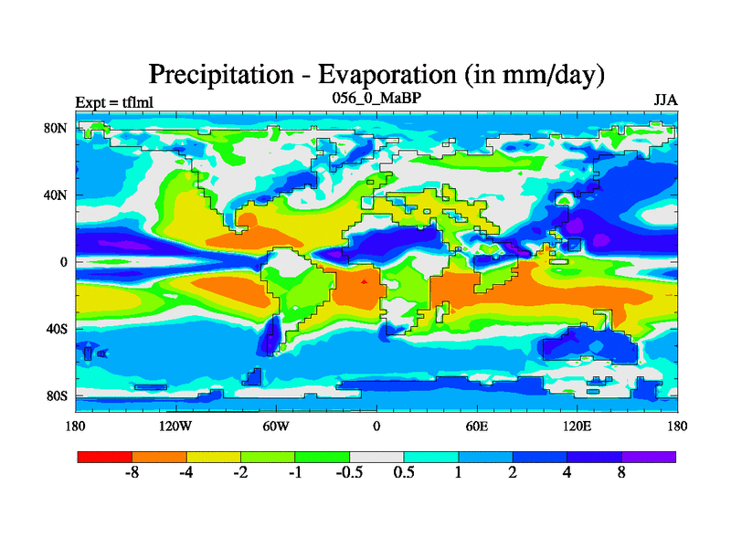 This is the 56.0 Ma simulation using the Scotese palaeogeographies and revised CCN etc. This version has islands and smoothing and desert albedo included. Tuned CO2 to give Scotese temperatures. Started from end of tfksl. With JEDI output.