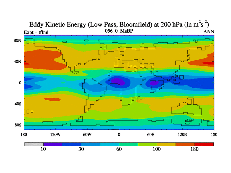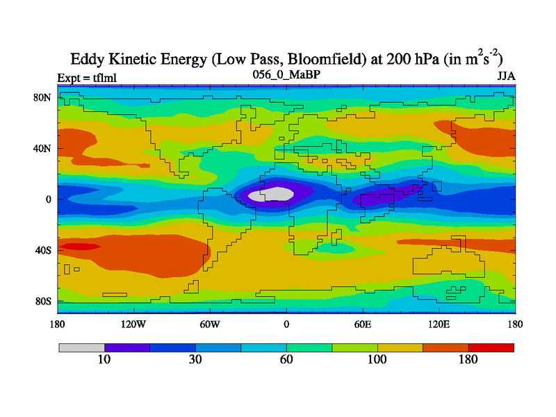 Low Pass Eddy Kinetic Energy at 200 hPa