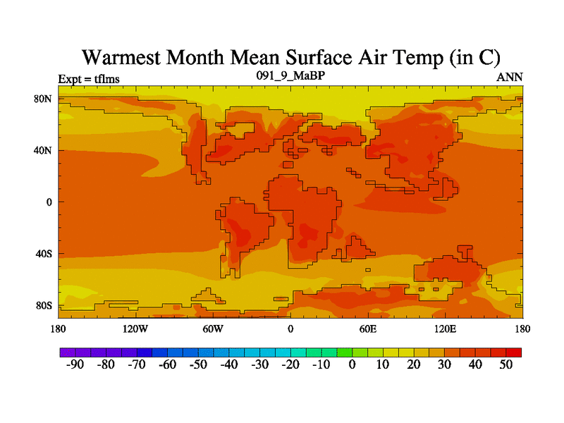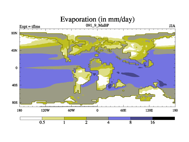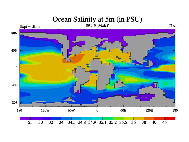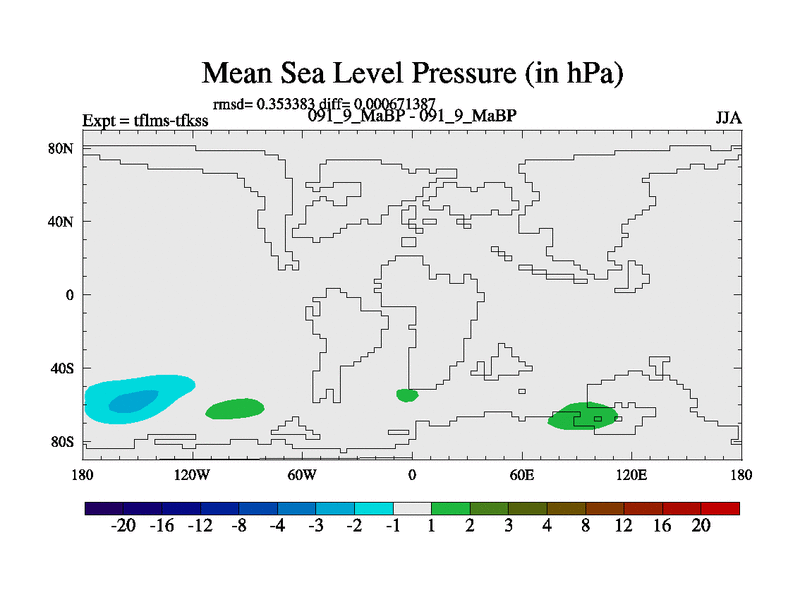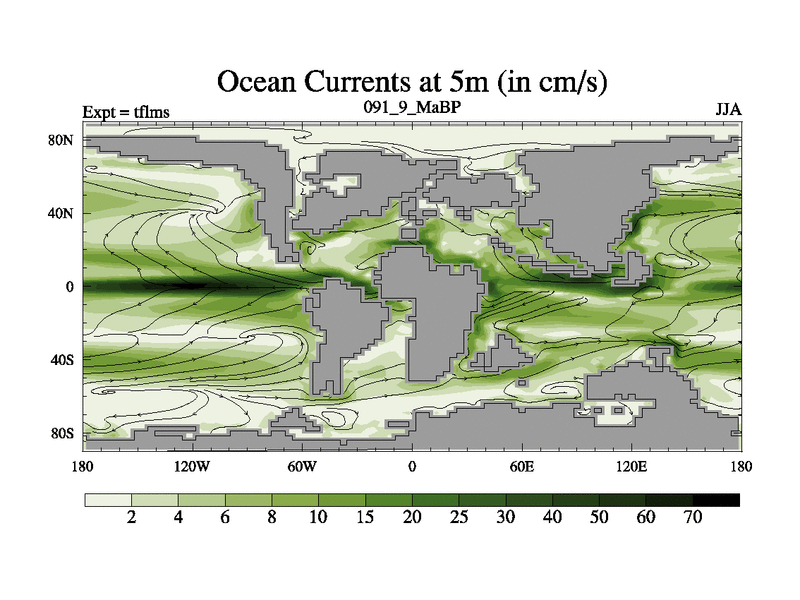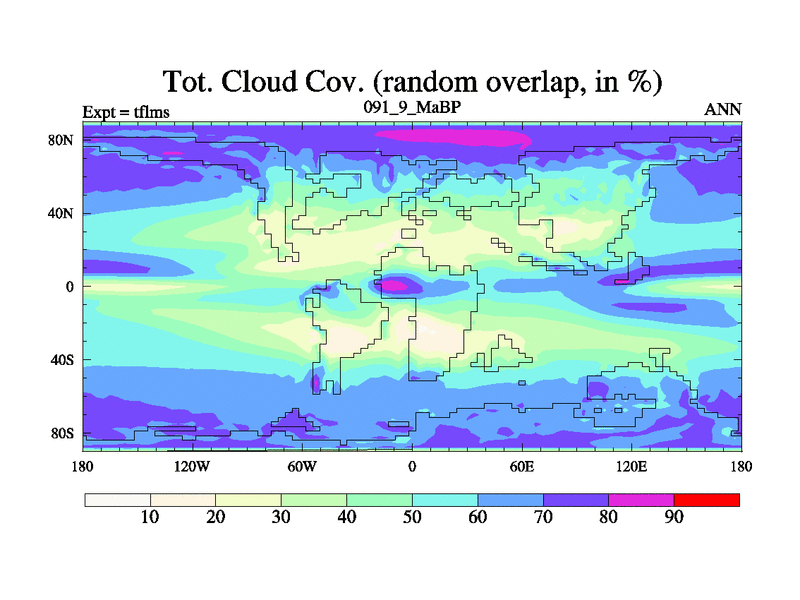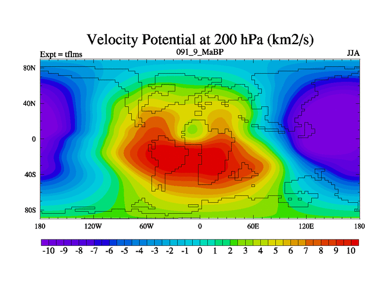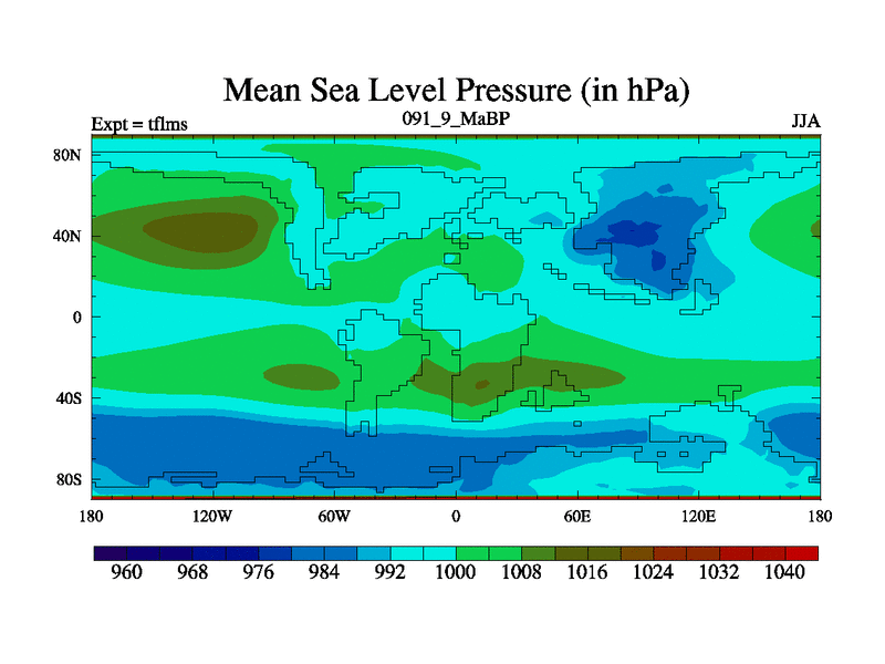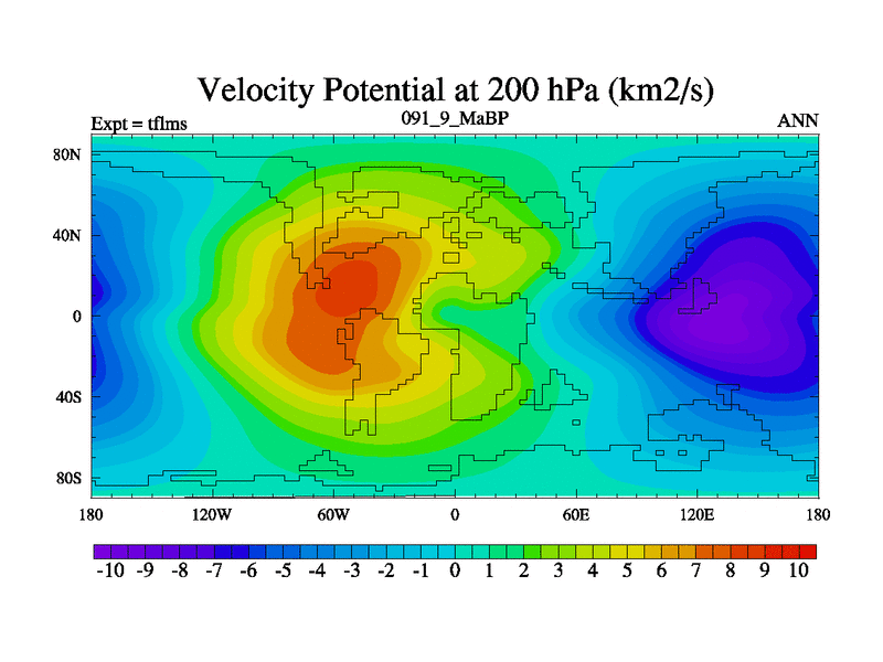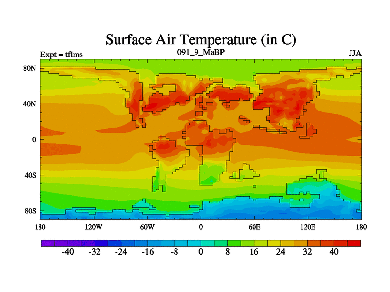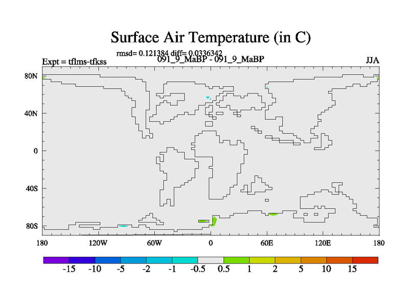 This is the 91.9 Ma simulation using the Scotese palaeogeographies and revised CCN etc. This version has islands and smoothing and desert albedo included. Tuned CO2 to give Scotese temperatures. Started from end of tfkss. With JEDI output.