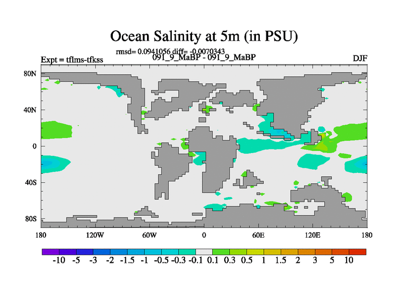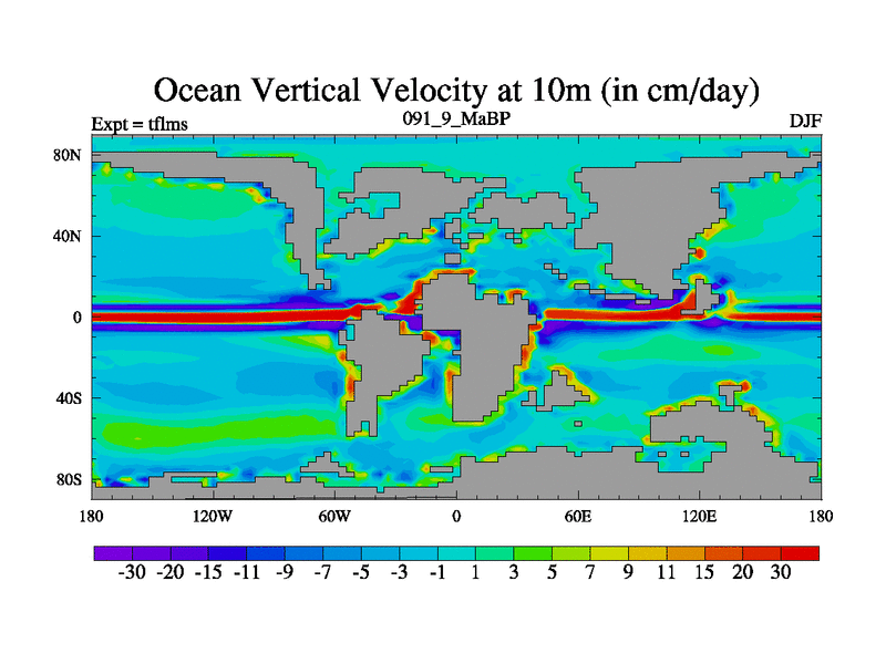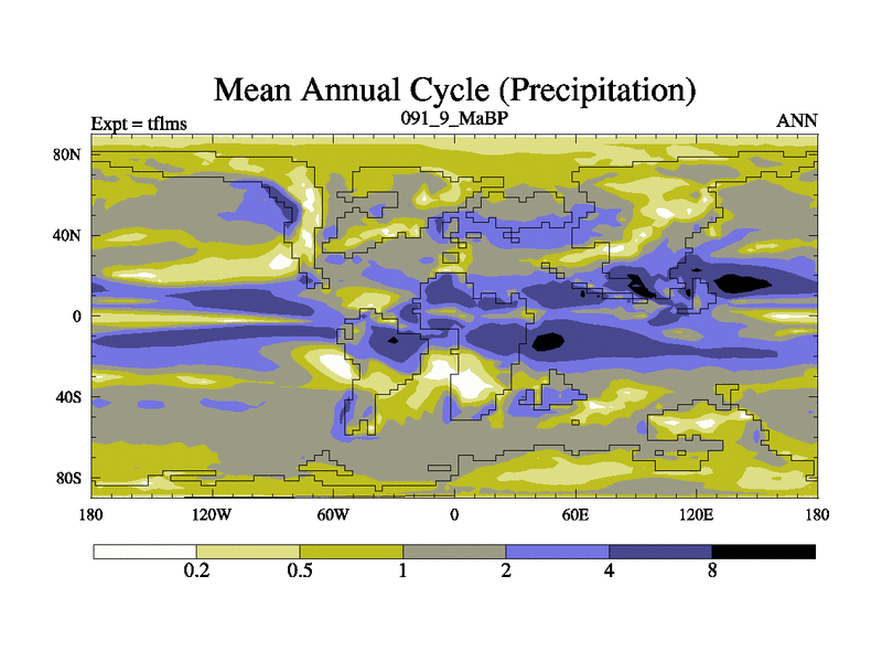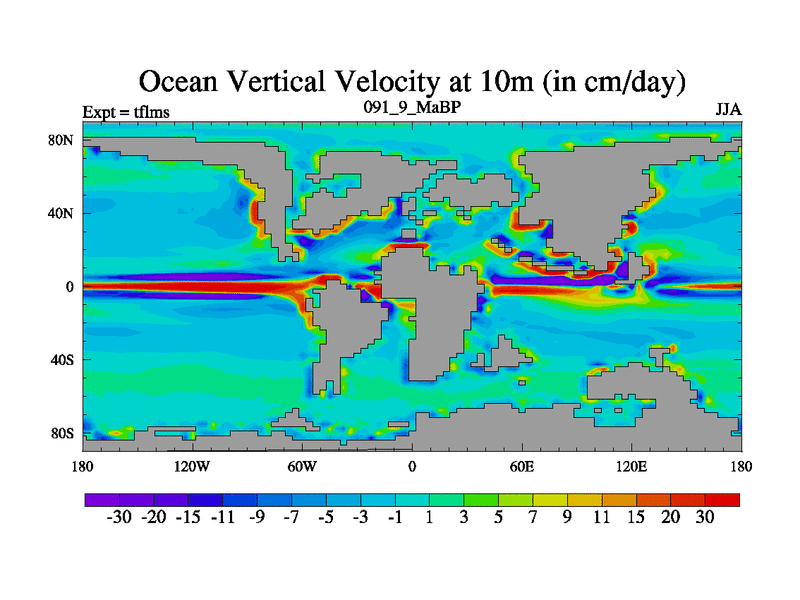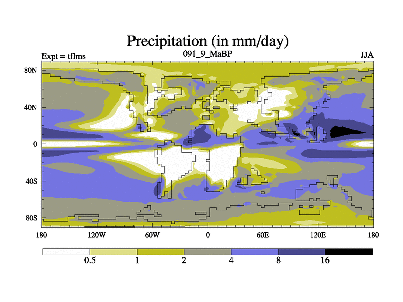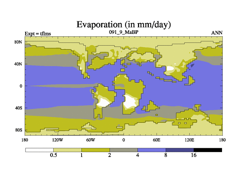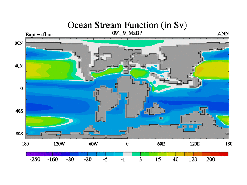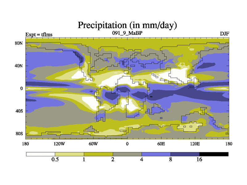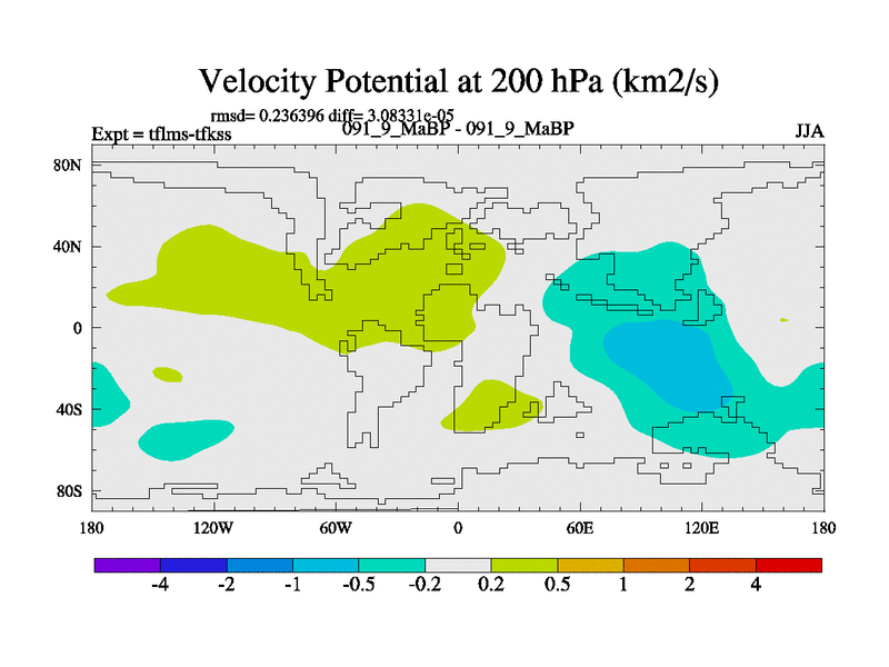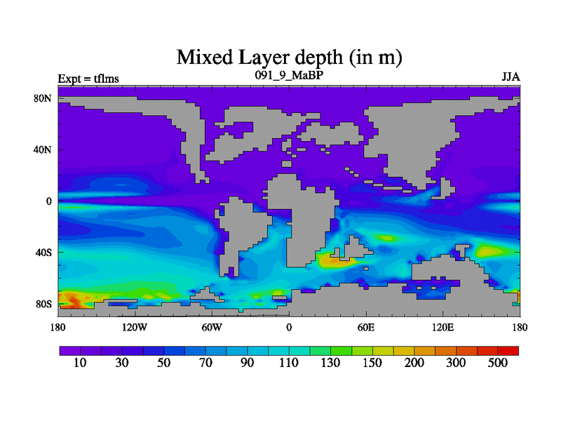 This is the 91.9 Ma simulation using the Scotese palaeogeographies and revised CCN etc. This version has islands and smoothing and desert albedo included. Tuned CO2 to give Scotese temperatures. Started from end of tfkss. With JEDI output.