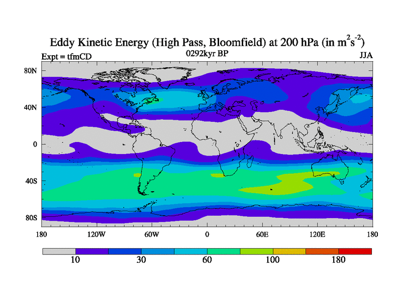Low Pass Eddy Kinetic Energy at 200 hPa