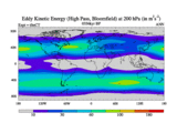 Low Pass Eddy Kinetic Energy at 200 hPa