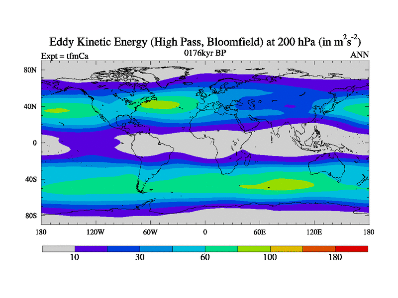 High Pass Eddy Kinetic Energy at 200 hPa