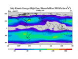 Low Pass Eddy Kinetic Energy at 200 hPa