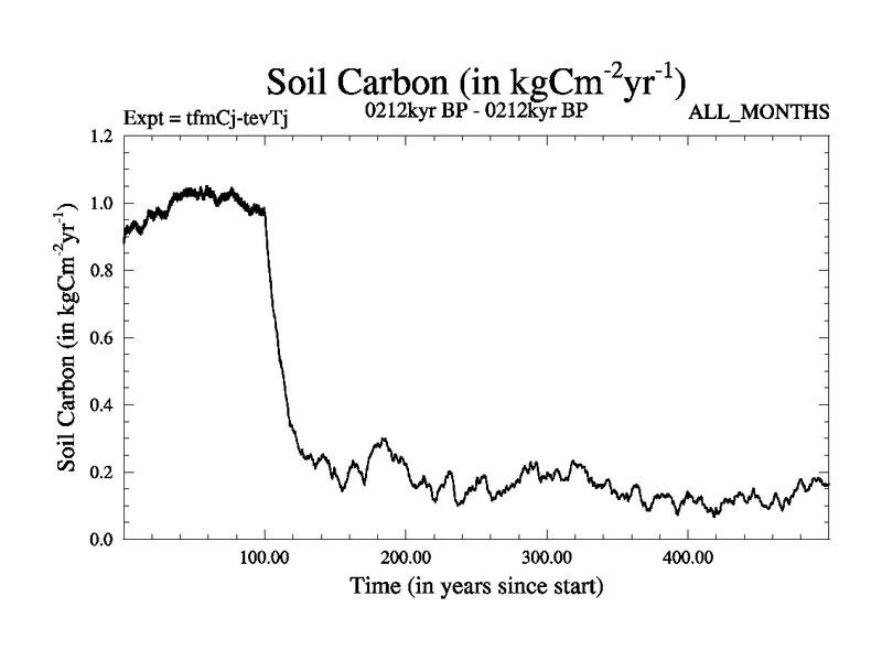 Using TRIFFID: dynamic mode, started from teix set of simulations (previous bbc_long runs). This version includes the dark_respiration update.
