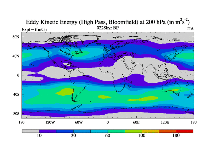 High Pass Eddy Kinetic Energy at 200 hPa